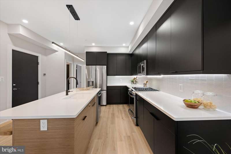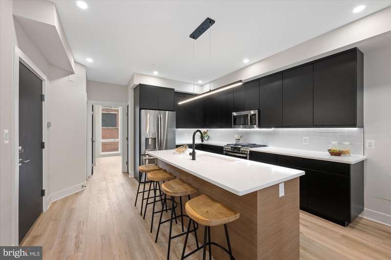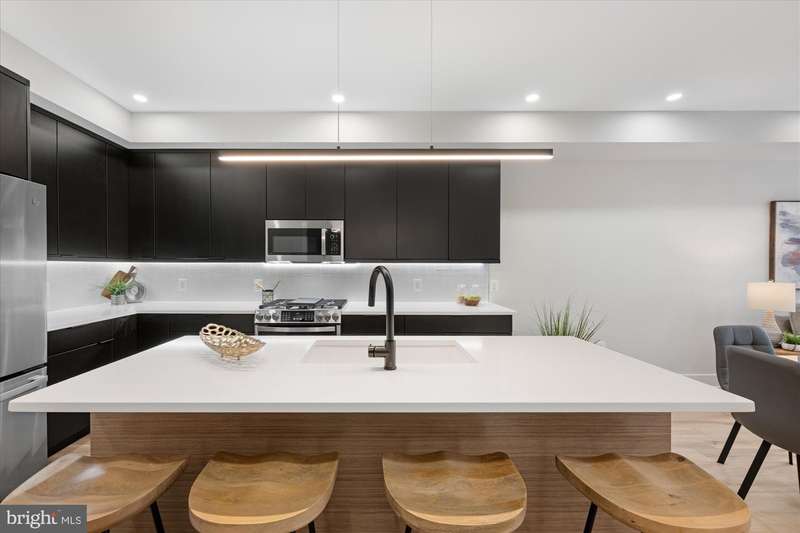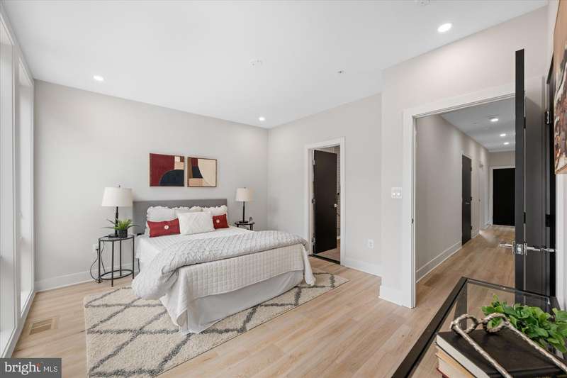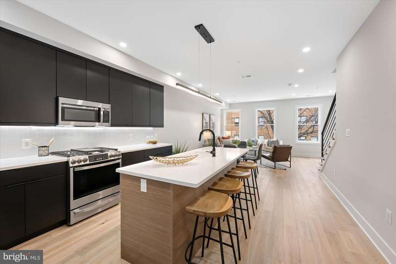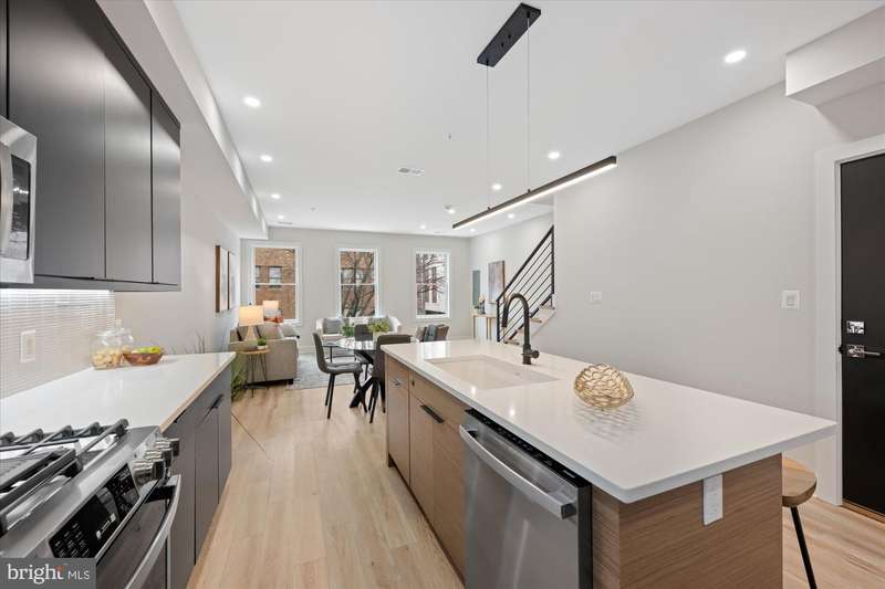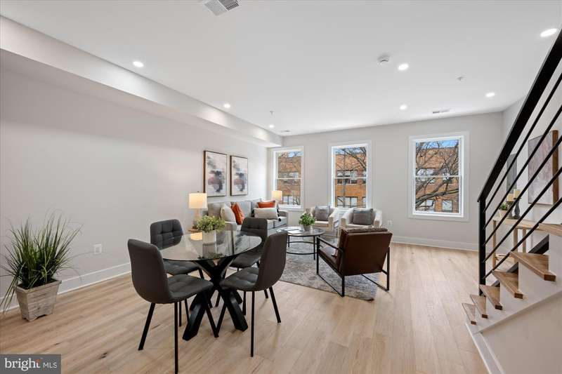 Welcome to this exquisitely designed 3-bedroom, 3-bathroom condominium, ideally situated in the vibrant NoMa neighborhood. This thoughtfully crafted residence features a modern, open floor plan, where the living room flows effortlessly into the dining area, culminating in a chef-inspired kitchen. The kitchen is a true highlight, complete with premium stainless steel appliances, custom hardwood cabinetry, sleek quartz countertops, and under-cabinet lighting, creating a perfect balance of style and functionality. On the main level, the first bedroom is adorned with expansive floor-to-ceiling windows, inviting an abundance of natural light and offering direct access to the private, fully fenced rear yard. Ascend to the bedroom level, where two generously proportioned bedrooms await. The front suite is complemented by a private balcony and large sliding glass doors, filling the space with light and fresh air. The owners suite, located at the rear of the home, features dual closets, and the en-suite bath is a true retreat. With a spacious double vanity, an impressive walk-in shower with twin shower heads and wands, it offers a luxurious escape. Step outside to the rooftop deck, where panoramic views of the iconic DC skyline provide the perfect setting for entertaining or unwinding on a cool evening. This remarkable residence is just a short stroll from an array of exceptional restaurants, Union Market, grocery stores, and Union Station, offering an unparalleled blend of convenience and sophisticated urban living.Secured Parking Available for Purchase