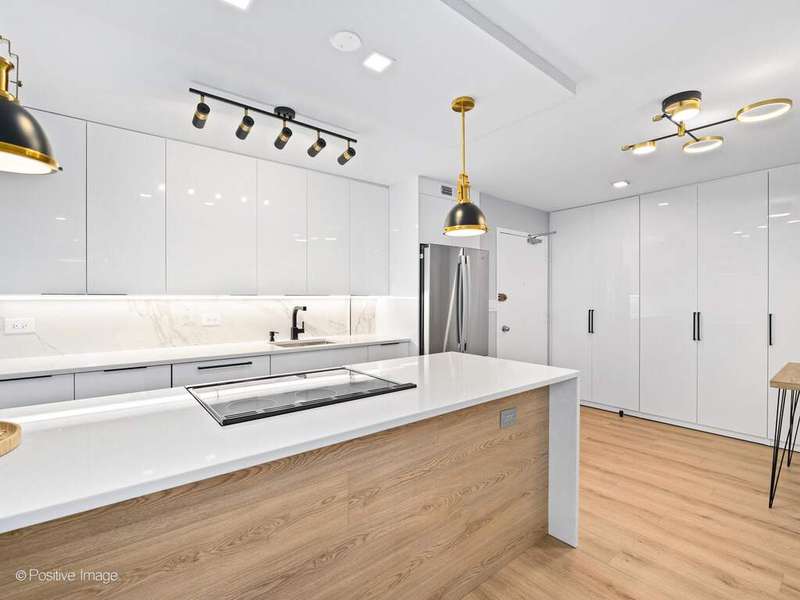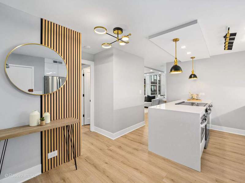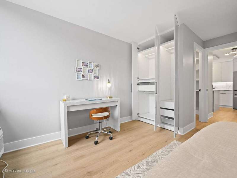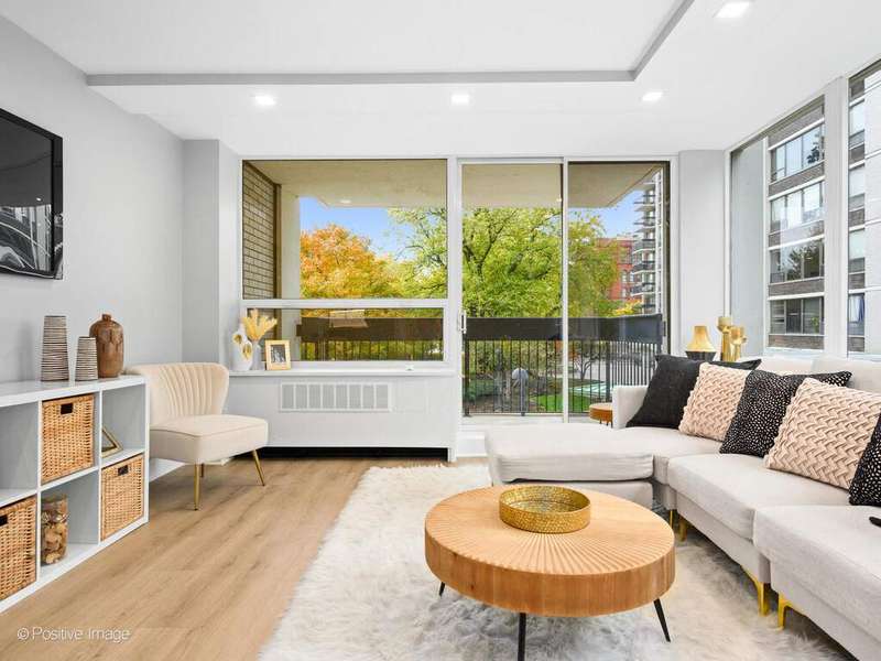Presenting this stunning new two bedroom corner unit with balcony in Bryant House - Be the first to live in this gut renovated two bed one bath unit, ideally located between Old Town & Gold Coast. This corner unit has wrap around windows with north and west exposures that provide abundant natural light and open views of the serene landscaped courtyards, tucked away from the street. Enjoy the urban oasis relaxing on your large private balcony in a fresh lake breeze. The unit has been meticulously gut rehabbed and is very well appointed with top quality and tasteful finishes- The open kitchen has European custom white gloss flat panel cabinets with black accent hardware, full marble backsplash, under cabinet LED lighting, quartz counters & peninsula with breakfast bar and waterfall edge. Top of the line appliances including Bosch built-in dishwasher & french-door refrigerator, slide in range and a Sharp microwave drawer, finished with black/gold lighting. The bathroom is fully renovated with a walk-in shower w/ sliding glass door, black/gold fixtures, contemporary tiles. There is a large primary bedroom with a walk-in closet, office desk area, new recessed lighting and additional built-in shelving. The second bedroom is bright and fits a queen bed, has a built-in closet, it offers many options as a guest bedroom or a home office. Wide plank natural wood color floors throughout. There are abundant closets, all are professionally organized. All new electrical, plumbing and A/Cs, new recessed LED lighting in each room. Monthly assessment includes heat, Direct TV (200+ channels) and internet service (1GB!), everything except electricity. Bryant House is a well run building with good reserves, many recent major updates completed including new elevators and renovated hallways. Great amenities- Sandburg Village has 2 Olympic size outdoor heated swimming pools, tennis courts some fees apply), landscaped courtyards, security.. The building has doorman, rooftop deck, additional storage (provided with unit), bike room, parking garage (rental). Convenient for transportation - 1 block to train/subway, buses, Lake Shore Dr, bike path. Located close to Old Town, downtown, Lincoln Park. Enjoy all attractions of the neighborhood - restaurants, nightlife, shopping, grocery stores, gyms, Lakefront trail, beaches, parks. Garage parking only $170 p/m. Pets allowed.