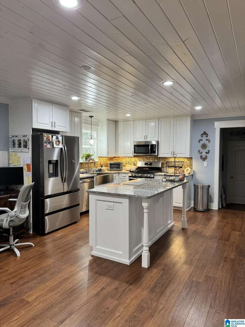 Seize the opportunity to make this your New Home! Sellers have done an excellent job in completely renovating this charming home. Boasting over 2,000 sq ft. this 3 bedroom, 2 bath home offers 9 ft. ceilings, crown molding, a large laundry room, and spacious bedrooms with walk-in closets that provide plenty of storage. Luxury vinyl flooring flows throughout the home, adding a touch elegance and durability. The kitchen is equipped with stainless steel appliances, a large island, stunning stone countertops, custom cabinetry and a gas stove-top/oven. Step outside to an extended screened-in deck with a fenced backyard. This property is also offering a nice 20x30 workshop with poured concrete flooring. This home includes natural gas, doubled paned windows and double insulation in attic for lower utility costs. Fiber internet is available.