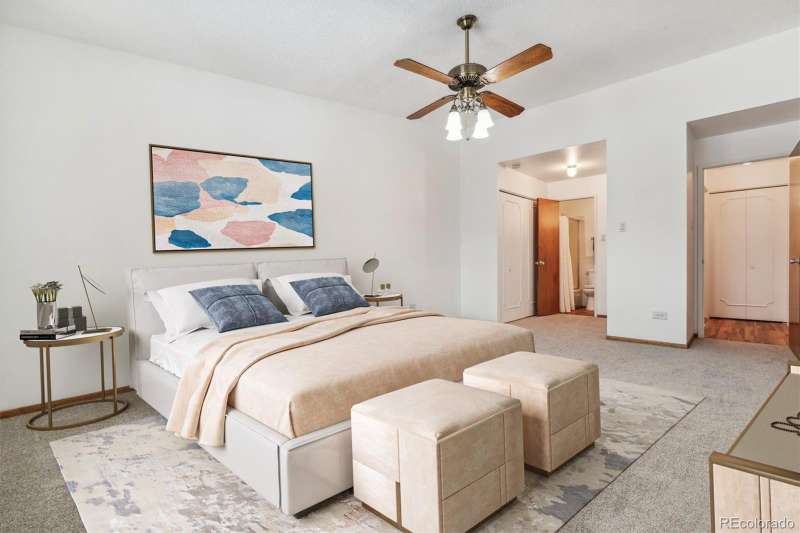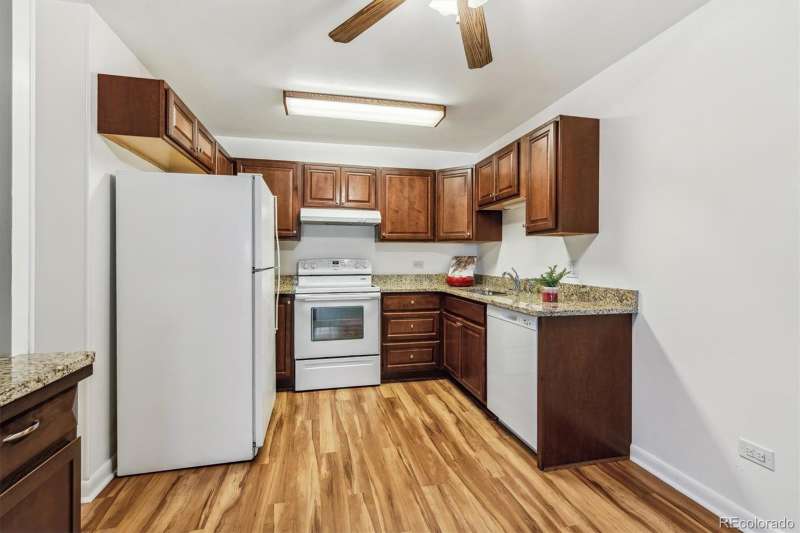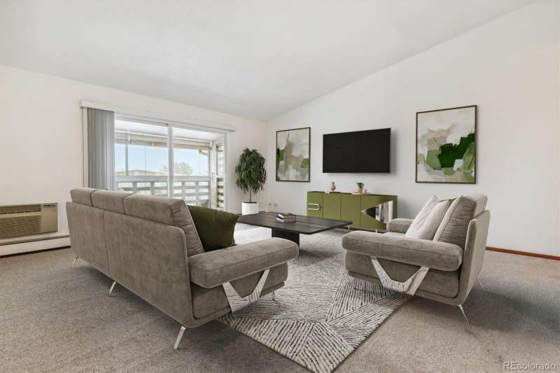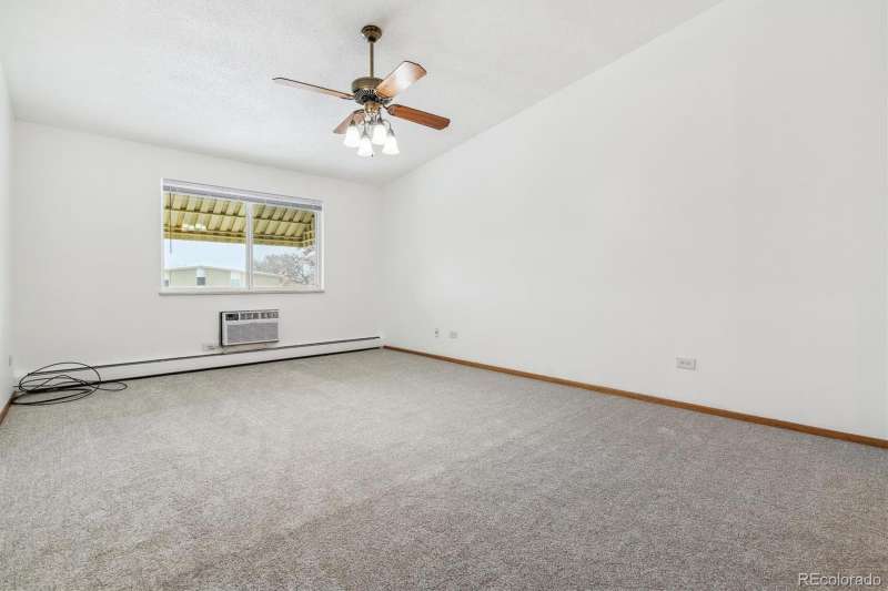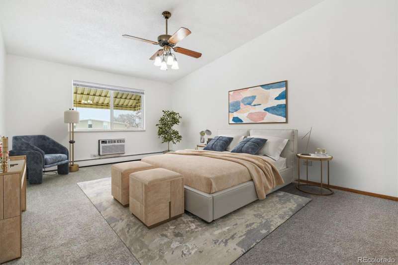 Rare Penthouse- Move right in! Updated and ready to go! Great location for this Updated Penthouse 1 bedroom/1 bathroom condo in Windsor Gardens. East facing location overlooking large courtyard and golf course view in distance. Spacious top floor w/vaulted ceilings. New neutral paint and carpet thru-out! Move right in- updates included Remodeled kitchen- w/cherry stained cabinets, granite slab counters, updated fixtures/lighting, vinyl flooring, and all appliances are included! Bathroom spacious and dual access from main living area and bedroom. Oversized bedroom w/2 closets and newer digital wall ac unit. Living room spacious features digital wall ac, and open to kitchen, and access to large balcony w/updated vinyl slider door, and screen enclosed lanai. Bonus room in on same floor as condo for extra storage. 1 detached garage w/opener and bonus cowboy storage. Great opportunity to settle in before the holidays! **Windsor Gardens is Colorado's Largest Age 55+ Active Adult Living Condo Community. Did you know? Monthly HOA Dues include annual property taxes! And heat, water, sewer, trash, round-the-clock patrolling community responders, full time onsite association management, grounds/building maintenance, and activities department. Enjoy clubhouse amenities such as fitness center, indoor/outdoor pools, hot tub, sauna, billiards, library, craft rooms for ceramics, sewing, woodworking, and 9 hole par 3 golf course and onsite restaurant both open to the public. Stay engaged with a wide array of activities, clubs, and events scheduled every month. Additional features include garden plot program, private walking trail and nature preserve, and RV/Boat storage. The Highline Canal runs full length along south side of the complex. RTD Bus Stops located thru-out the community. FHA/VA approved. Close to restaurants, stores, shopping…Minutes to Lowry, Hwy 225, Cherry Creek…Easy access to DIA and downtown. Come see for yourself what Windsor Gardens has to offer. 2021**