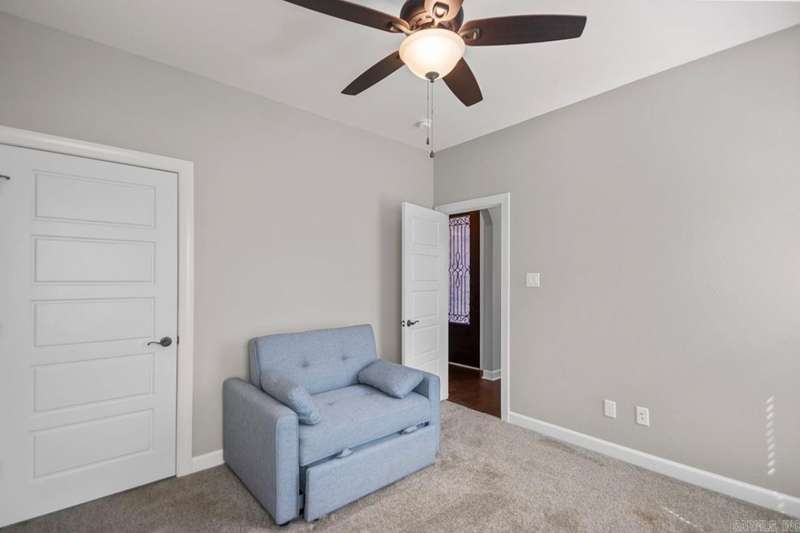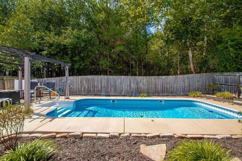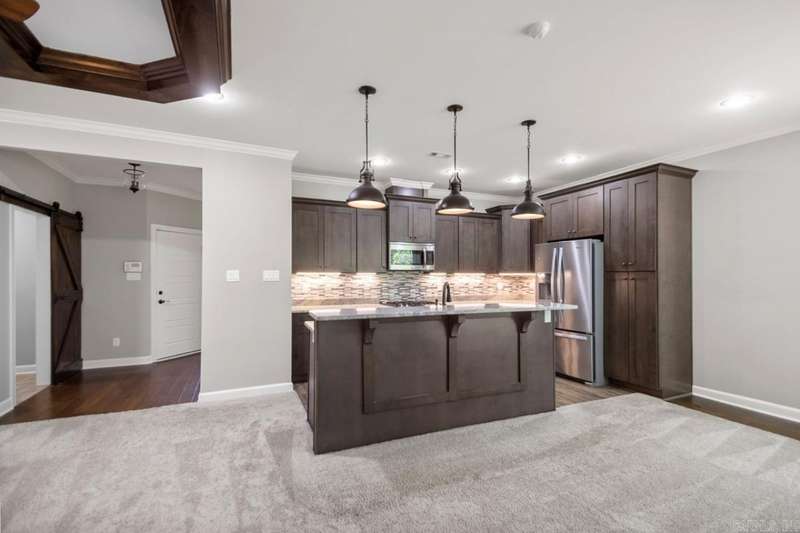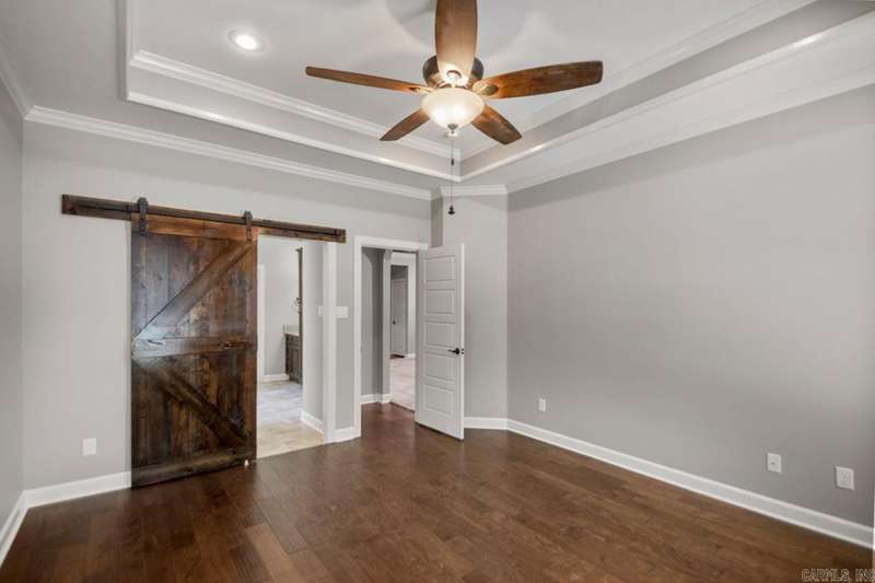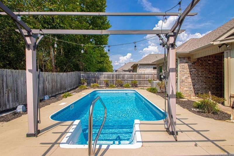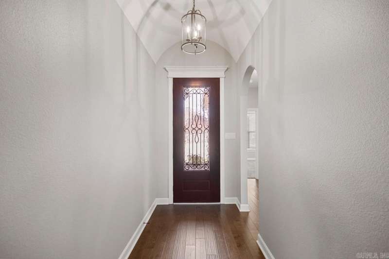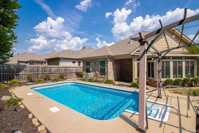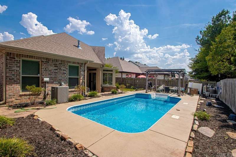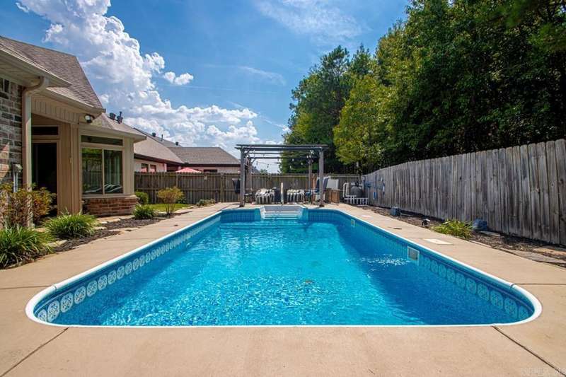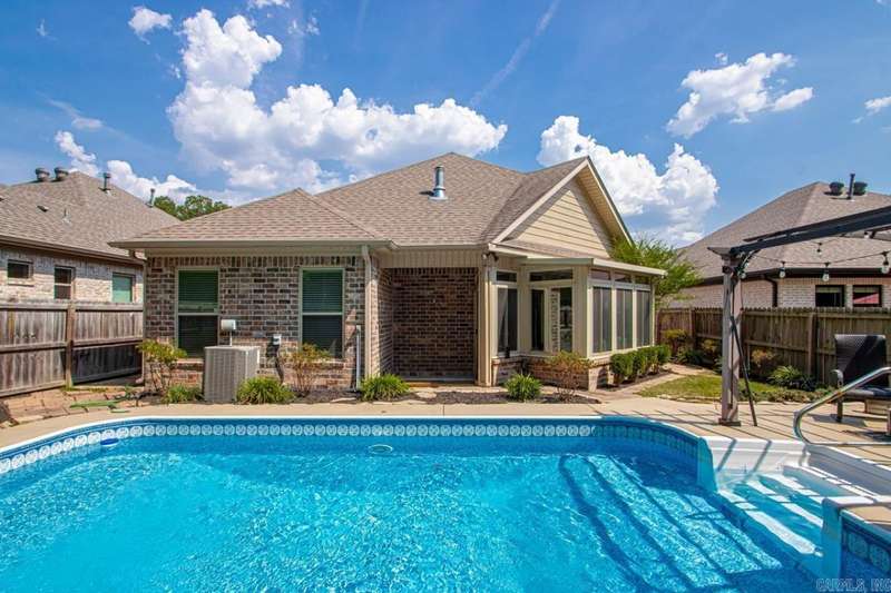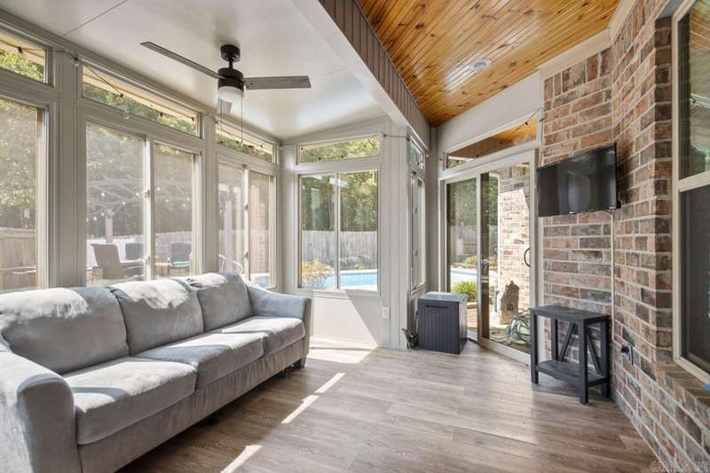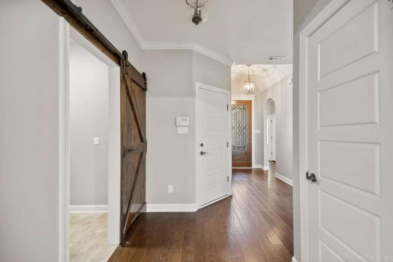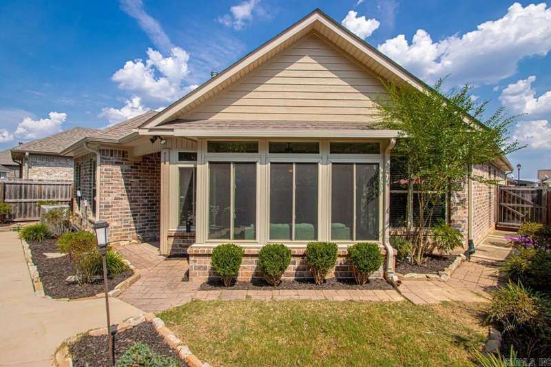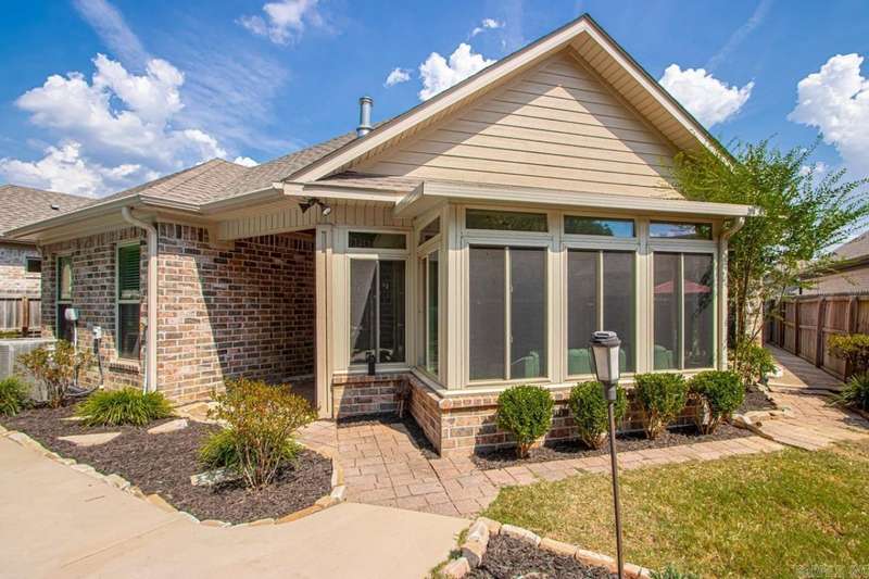 Updated Patio Home in Gated Community! This well-maintained home features an in-ground sports pool, all-seasons sunroom, sprinkler system, and open floor plan with tall ceilings. Interior highlights include wood floors, granite countertops, stainless steel appliances, crown molding, arched doorways, and spray foam insulation. Barn doors add charm to the master bath and laundry. Carpet and luxury vinyl in living, dining, and kitchen can be removed to reveal hardwood floors underneath. Includes a safe room for added security.