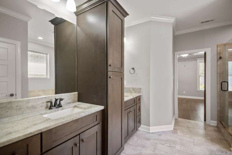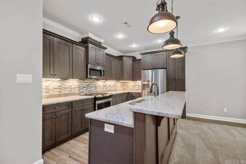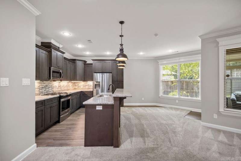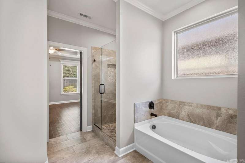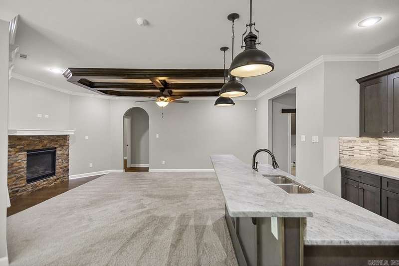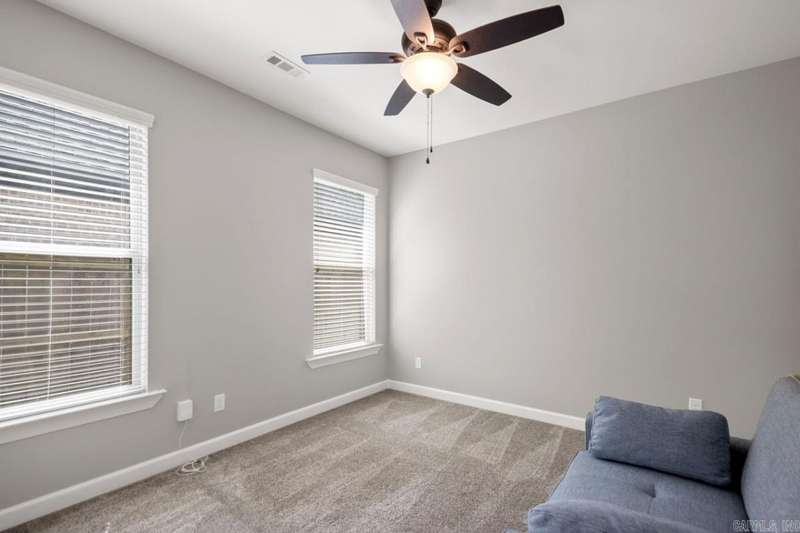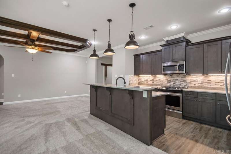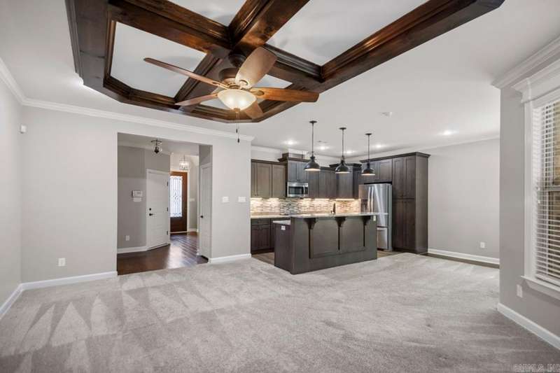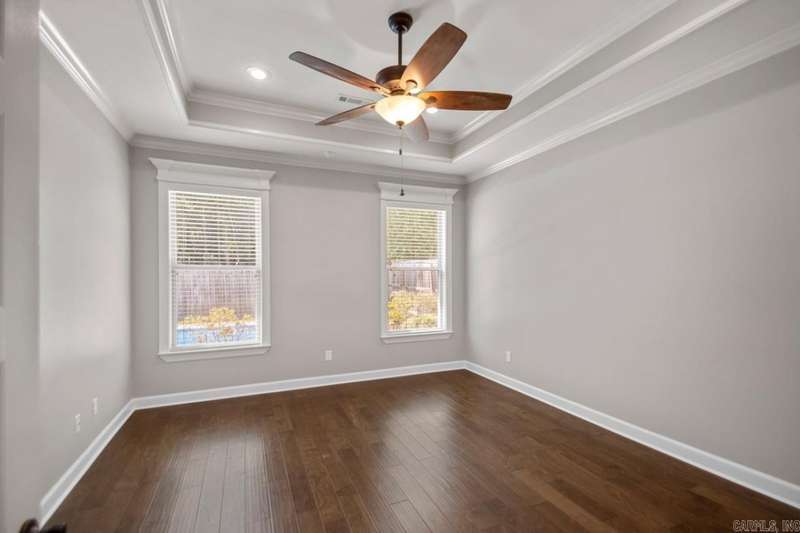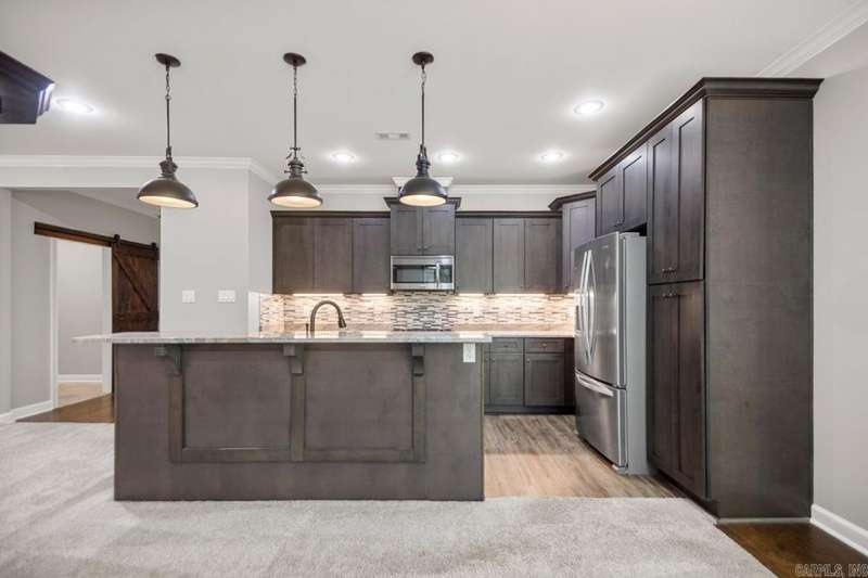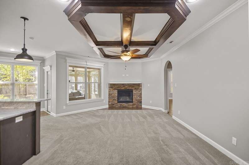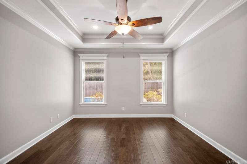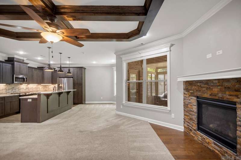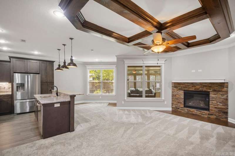 Updated Patio Home in Gated Community! This well-maintained home features an in-ground sports pool, all-seasons sunroom, sprinkler system, and open floor plan with tall ceilings. Interior highlights include wood floors, granite countertops, stainless steel appliances, crown molding, arched doorways, and spray foam insulation. Barn doors add charm to the master bath and laundry. Carpet and luxury vinyl in living, dining, and kitchen can be removed to reveal hardwood floors underneath. Includes a safe room for added security.