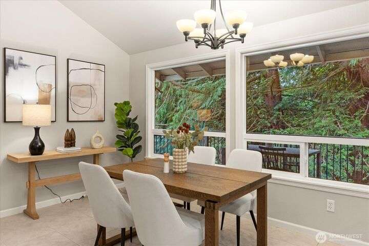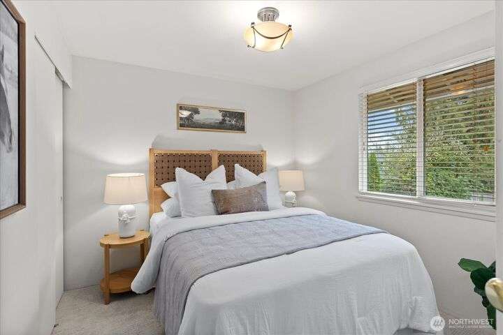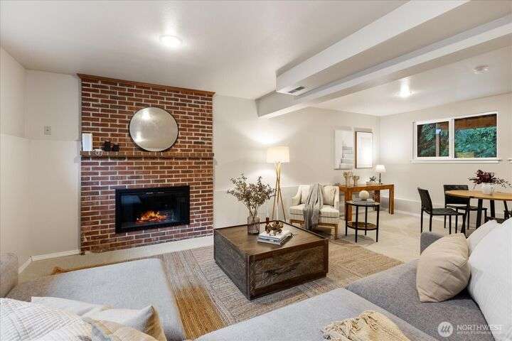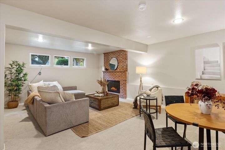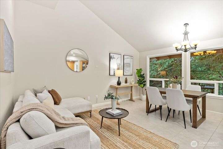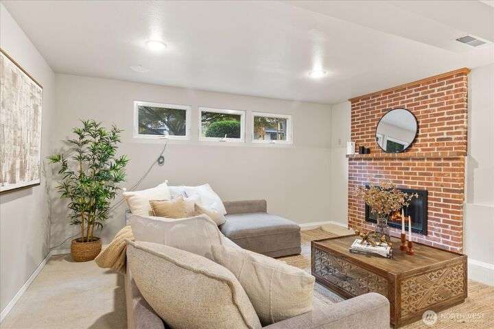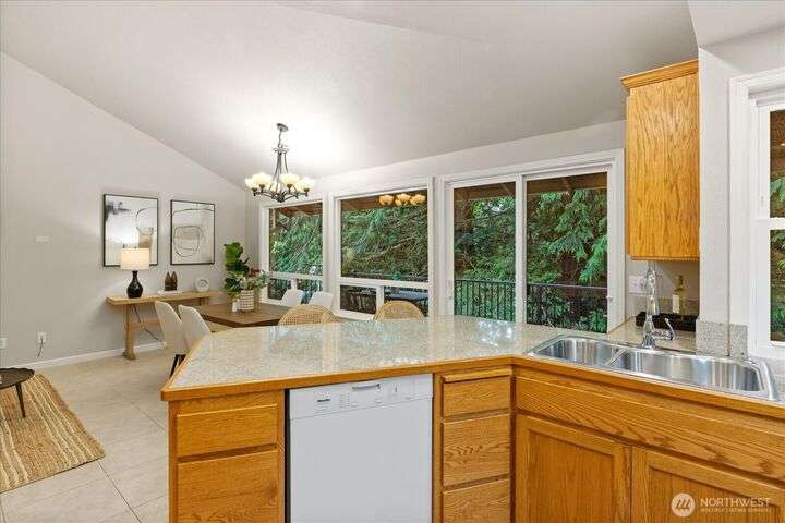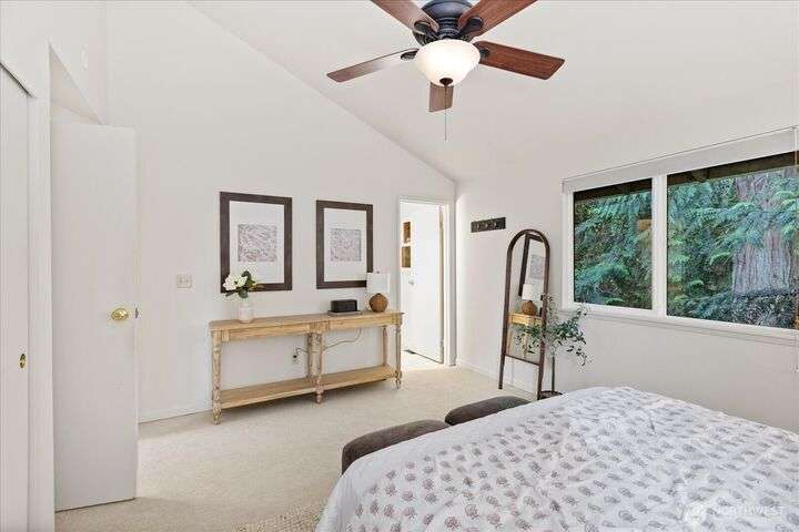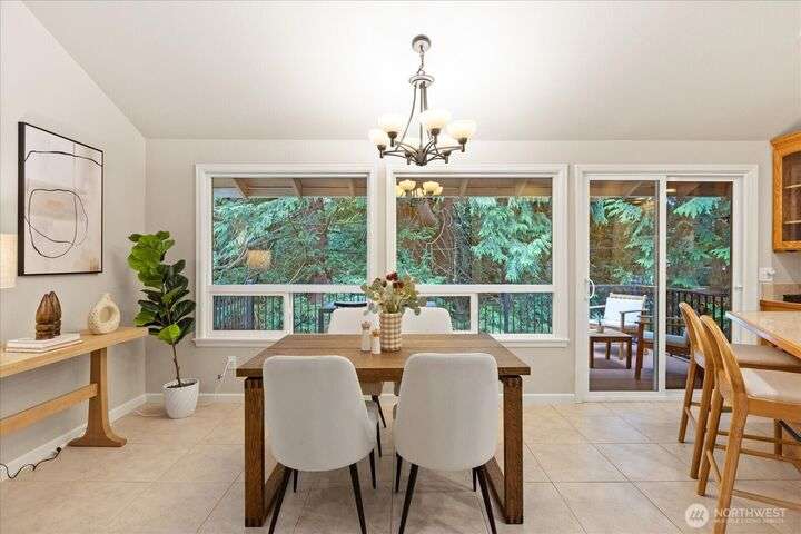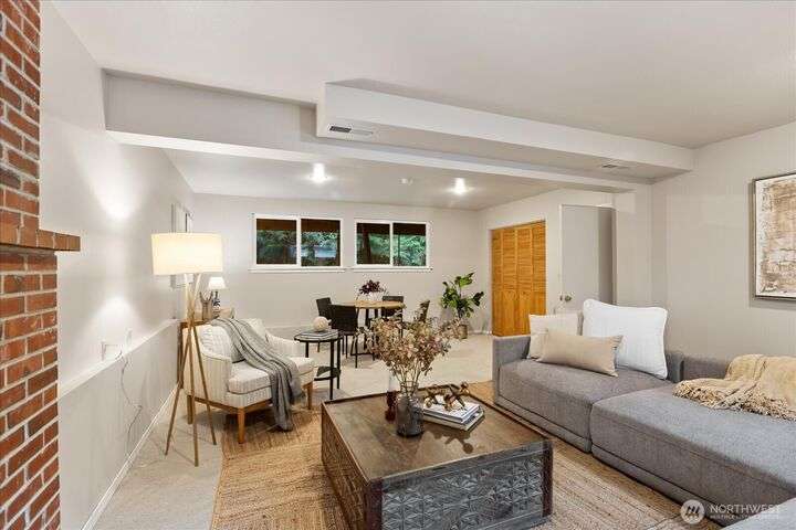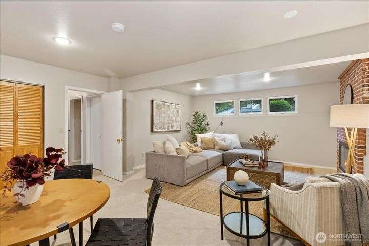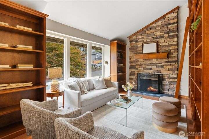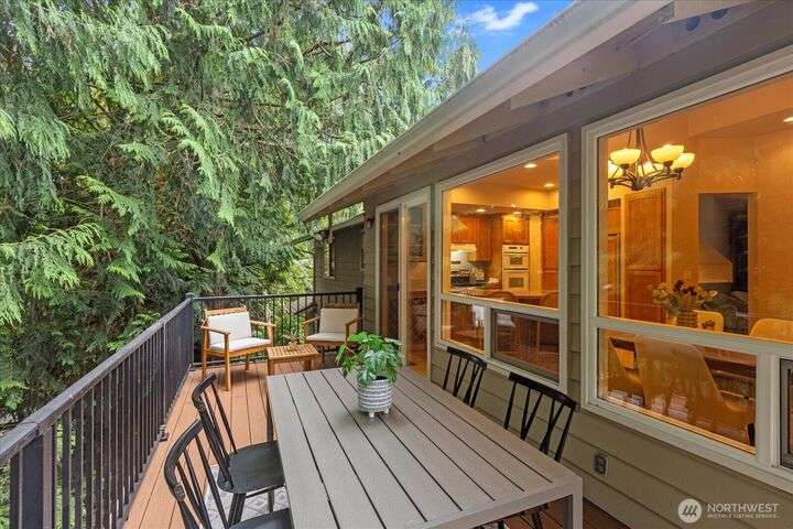 Amazing Seaview neighborhood, this home is located on a corner lot, quiet/double dead-end street. The kitchen/dining area overlooks the newer Trex deck & large serene and wooded back yard. Living area/library with vaulted ceiling and cozy stone fireplace. 3 beds, full hallway bath and primary suite with attached 3/4 bath complete the upper floor. Downstairs is an oversized family room perfect for media/game area. Updated baths with heated floors. Generous attached 2 car garage with storage. Seaview has abundant local parks and trails. Newer roof, brand new carpet and interior paint. Minutes to shopping, beaches, trains, restaurants, galleries and all Edmonds has to offer.