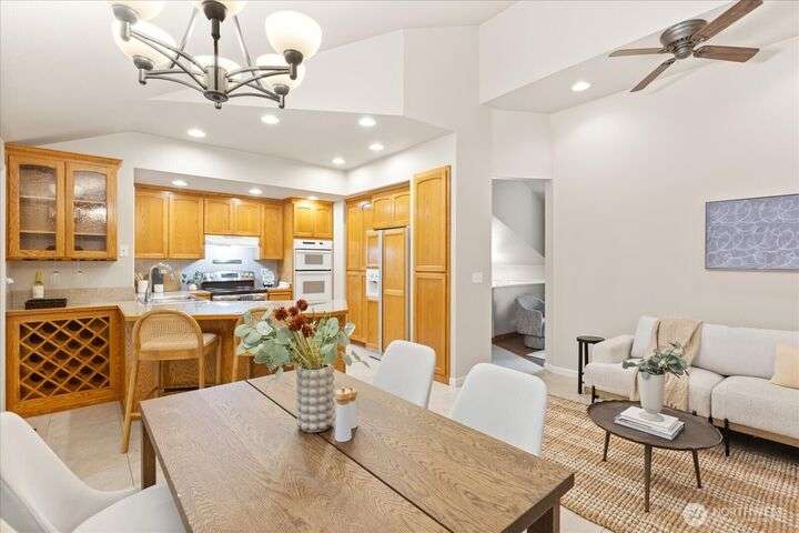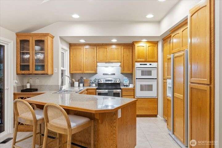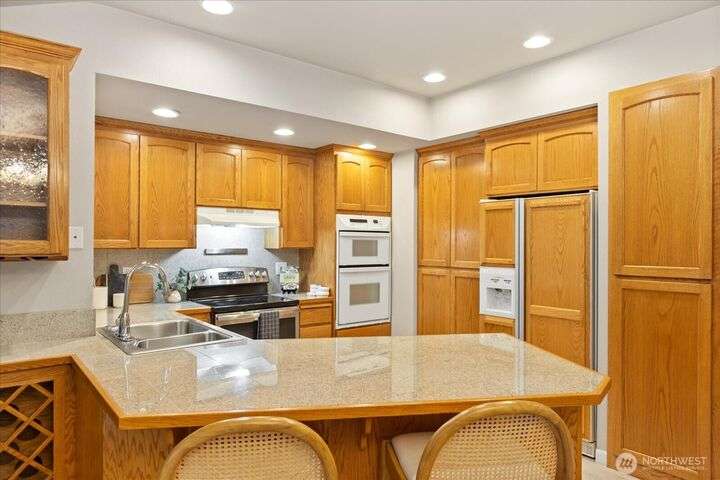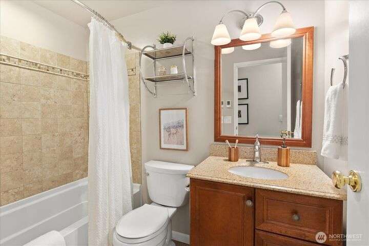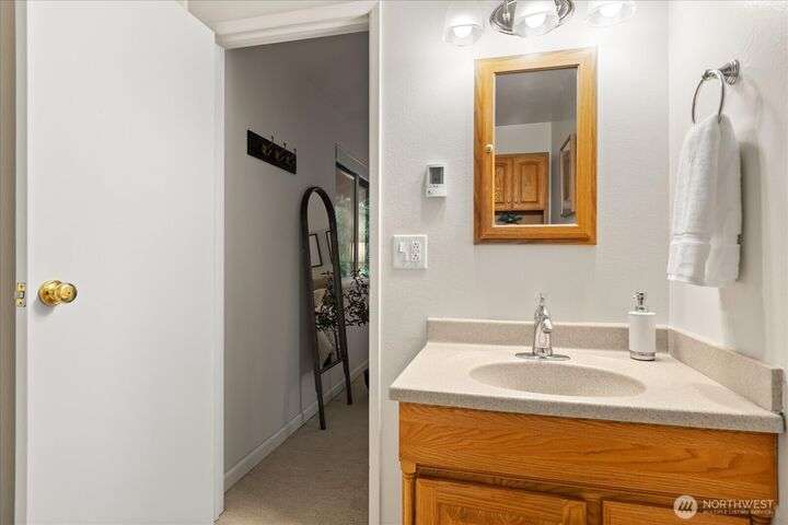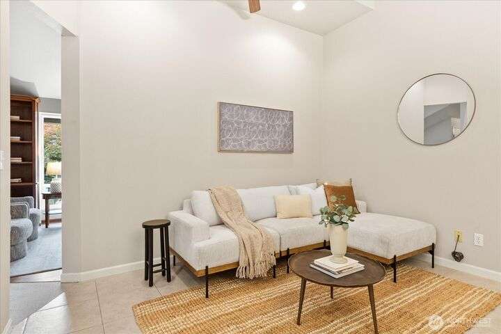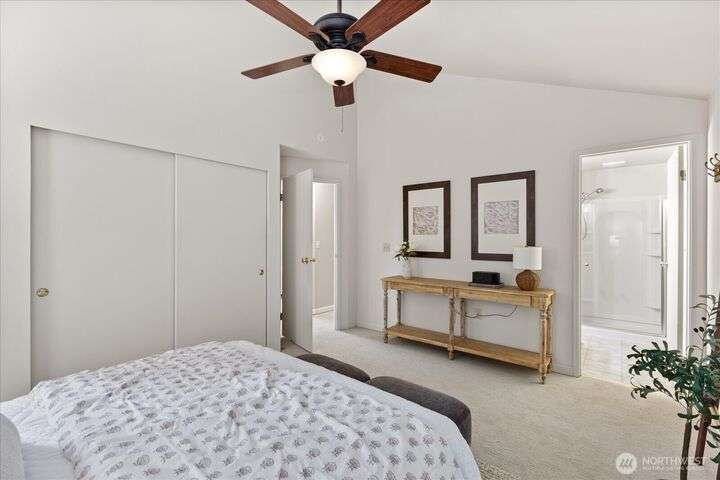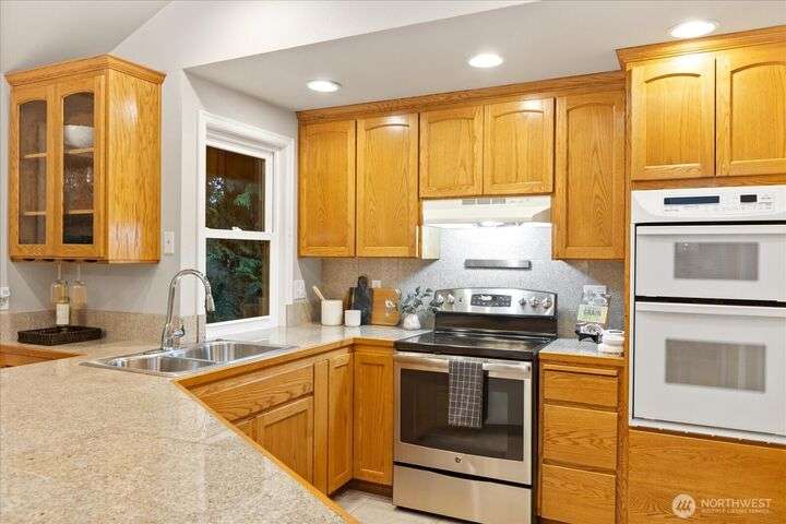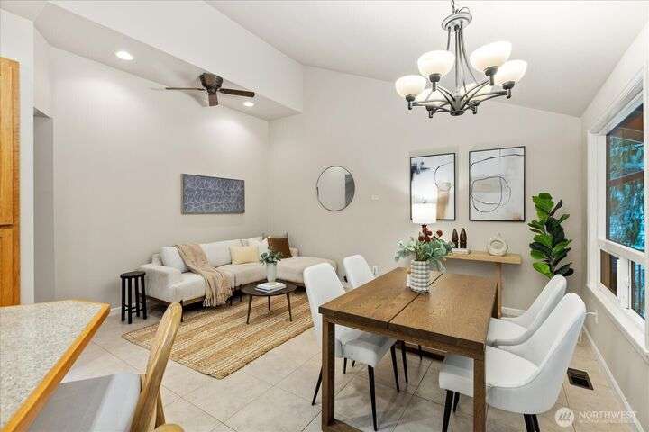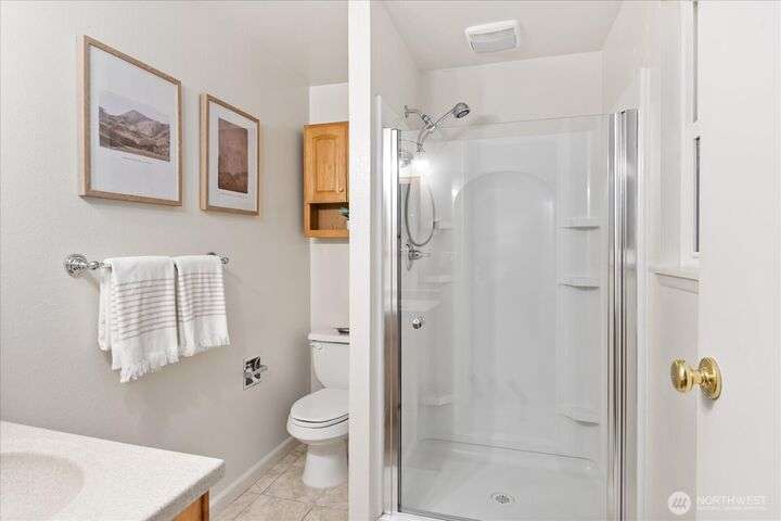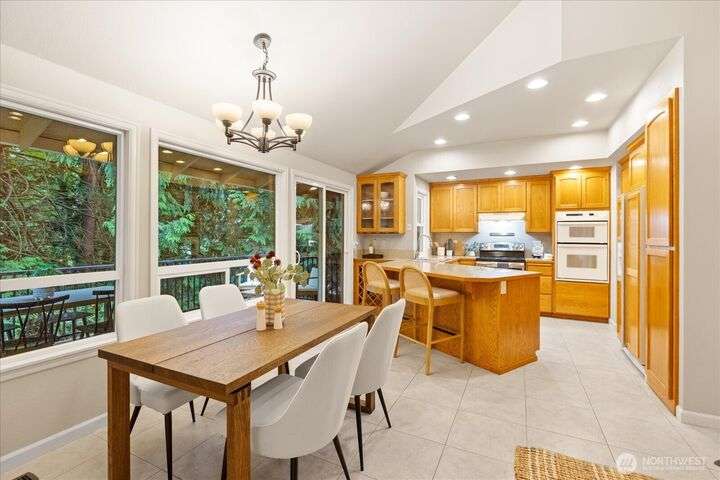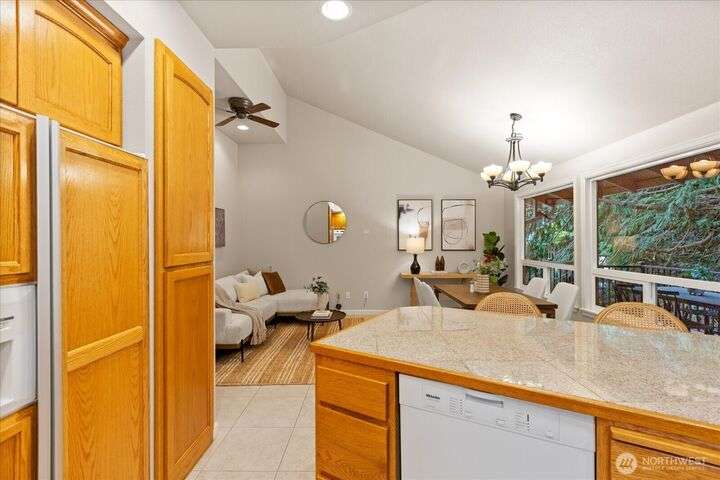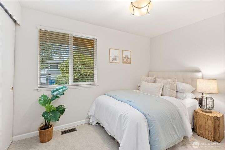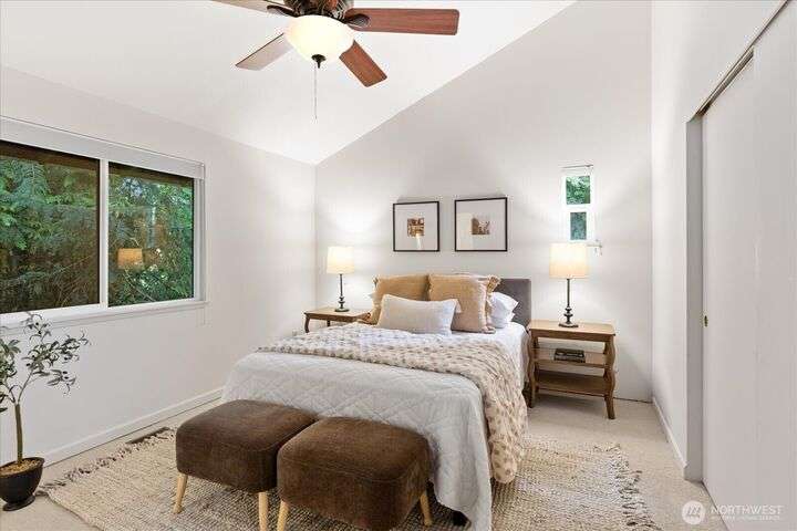 Amazing Seaview neighborhood, this home is located on a corner lot, quiet/double dead-end street. The kitchen/dining area overlooks the newer Trex deck & large serene and wooded back yard. Living area/library with vaulted ceiling and cozy stone fireplace. 3 beds, full hallway bath and primary suite with attached 3/4 bath complete the upper floor. Downstairs is an oversized family room perfect for media/game area. Updated baths with heated floors. Generous attached 2 car garage with storage. Seaview has abundant local parks and trails. Newer roof, brand new carpet and interior paint. Minutes to shopping, beaches, trains, restaurants, galleries and all Edmonds has to offer.