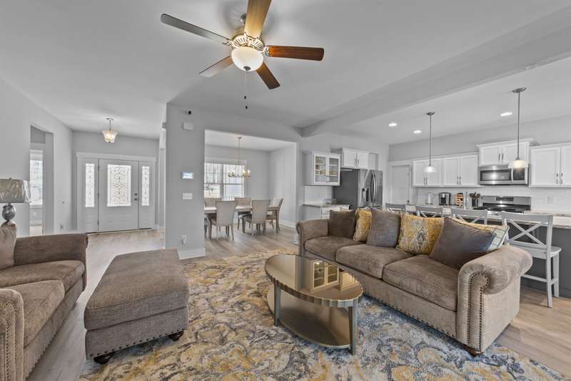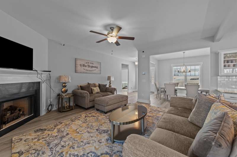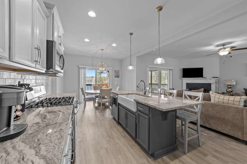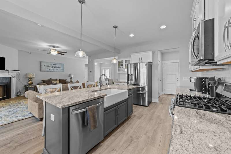 STUNNING LAKEFRONT NOW AVAILABLE!! Close to 3000 SQ FT of Luxury Living! Like-New Ranch Offers Spacious Main Floor Primary w/ Two Roomy Guest Suites! Open Floor Plan! Gas Logs in LR! Formal Dining! Farmhouse Sink & Granite Counters Grace The Kitchen! Two Huge Bonus Rooms W/Full Bath on Second Floor! Screened Porch! Two Golf Memberships Included! Live Like You're On Vacation All Year Long !GATED COMMUNITY ON 345-ACRE LAKE W/18-HOLE GOLF AVAILABLE!!