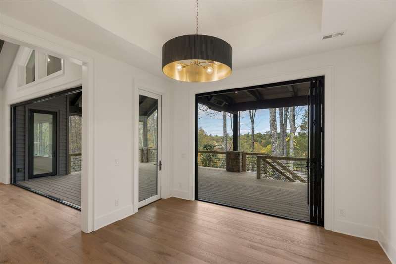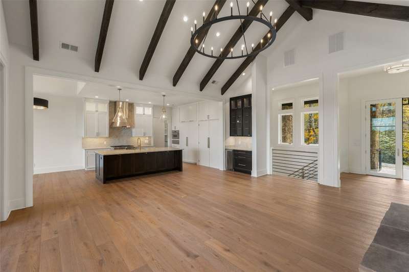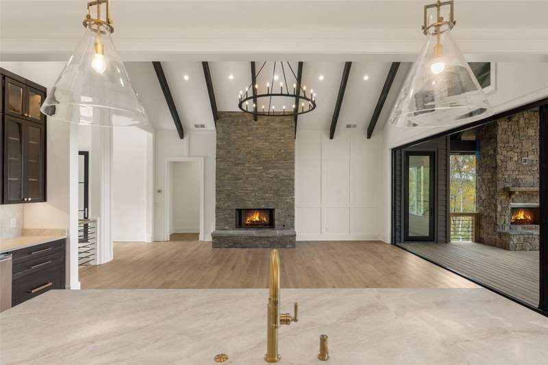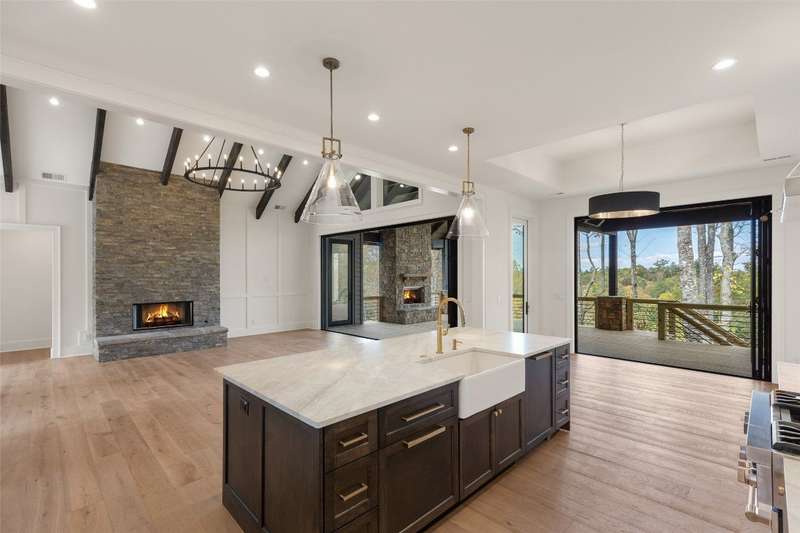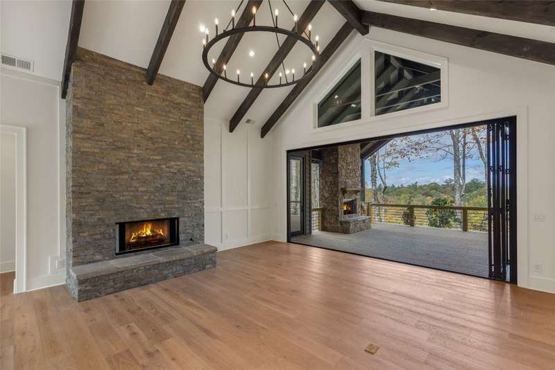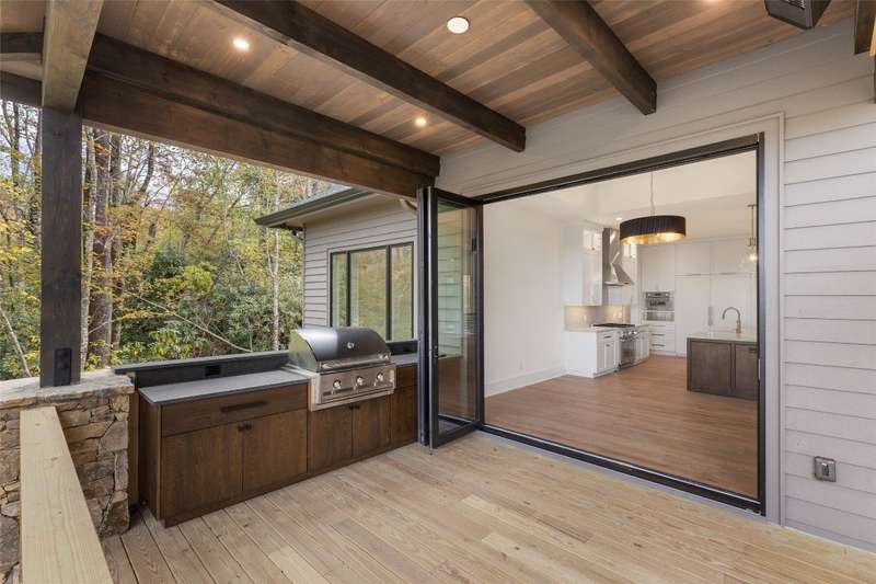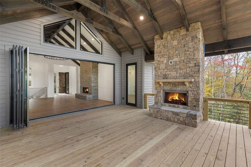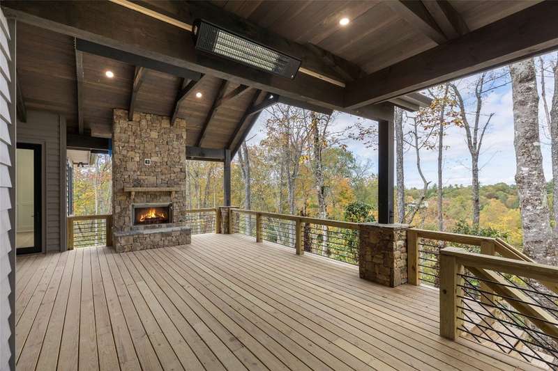 Nestled within the gates of Wildcat Cliffs Country Club but part of Wildcat Ridge Estates, this exquisite new construction estate home by Campagna Homes offers the pinnacle of luxury mountain living-without the requirement of club membership. Thoughtfully designed with a total of 4,298 heated sq ft and 7,514 total covered sq ft, AND ELEVATOR, this high-end residence blends timeless craftsmanship with refined modern comfort. The open-concept floor plan features a seamless flow between the gorgeously beamed cathedral ceiling living room into the dining area and gourmet kitchen, complete with top-of-the-line Thermador appliances and dry bar with ice maker-ideal for entertaining. Enjoy outdoor living on expansive porches both upstairs and downstairs, perfect for taking in the peaceful mountain views, breezes and serene natural surroundings. Two wood-burning fireplaces with gas starters, one in the living room and one on the covered porch, add warmth and ambiance on chilly mountain evenings. Telescoping Pella glass doors lead from the living area to the expansive covered porch with fireplace and built-in barbecue for easy indoor/outdoor entertaining. The main level includes a split plan for privacy with a spacious primary suite with a luxurious bath on the west end and a private guest suite with a full bath on the east end. Additional highlights of this exceptional property with views include a full main level laundry room with farmhouse sink and a secondary laundry area downstairs and a finished lower level featuring a large and open family room, game room, wine bar, a generous bedroom with ensuite bath plus an additional guest room or study with another full bath. This home will easily and comfortably accommodate a large family! There is plenty of space outside on the gentle lot for furry friends to frolic, gigantic gardens to grow and for toasting s'mores and stargazing around an outdoor fire pit. The oversized garage includes a dedicated golf cart bay along with a 576 sq ft unfinished area above that could be finished to use as a bunk room, home gym, office or additional storage space. Located within the gates of Wildcat Cliffs CC but part of Wildcat Ridge Estates so club membership is NOT required but the club is fabulous and offers an exceptional lifestyle with a premier golf course, croquet facilities, and a vibrant, welcoming membership. Architectural plans, renderings and finishes are subject to changes prior to construction completion.