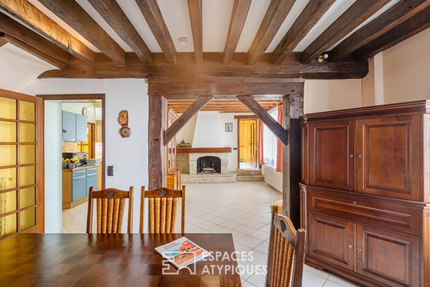 On the left, a warm living room of 18 sqm is highlighted thanks to its open fireplace, bringing warmth and conviviality. In continuity, family gatherings will be favorable to long exchanges in a space, dining room, of 23 sqm with direct access to the independent kitchen. Perfectly functional and able to accommodate a large family, a first floor serves three bedrooms and a bathroom.