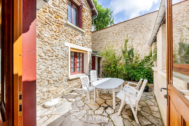 For over a century, the same family of owners put all their heart, from generation to generation, into the gradual transformation of this business until the 1935s, to make it, after this date, over the decades, a pleasant town house to live in and close to all the shops necessary for daily life. Built at the end of the 19th century, with a surface area of approximately 135 sqm, it stands out with its pretty millstone facade. From the entrance hall, you access, on the right, the garage of over 40 sqm which can allow everyone to store, shelter several vehicles or tinker in peace. From the vestibule, the level is bathed in natural light from a pleasant interior courtyard of approximately 25 sqm.