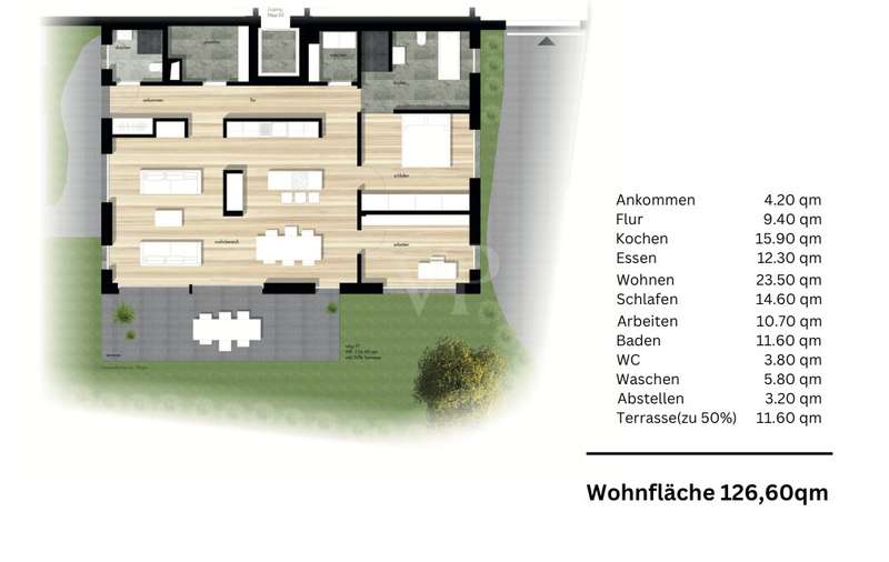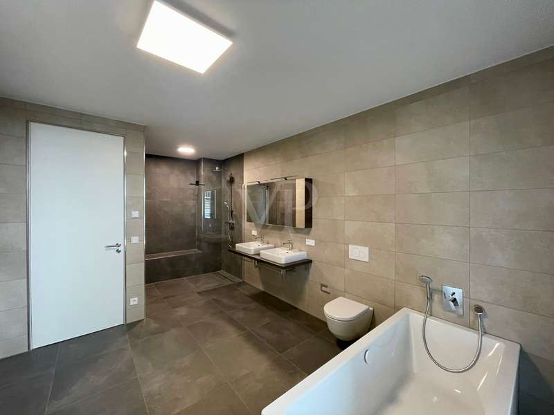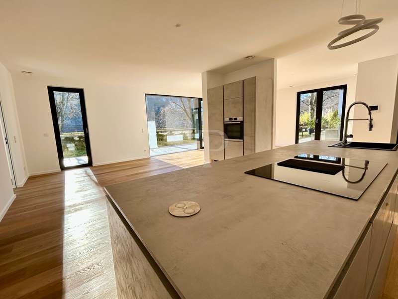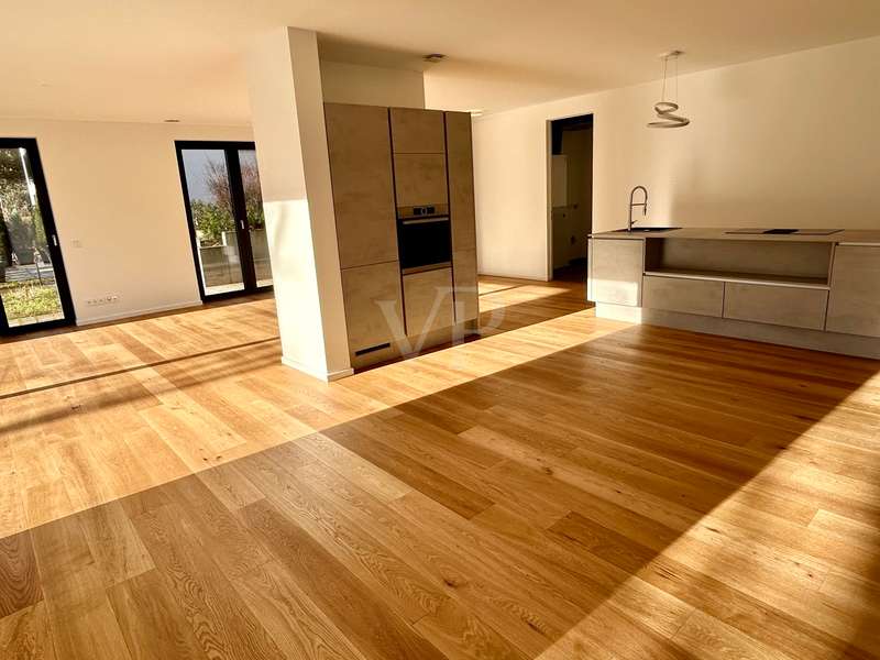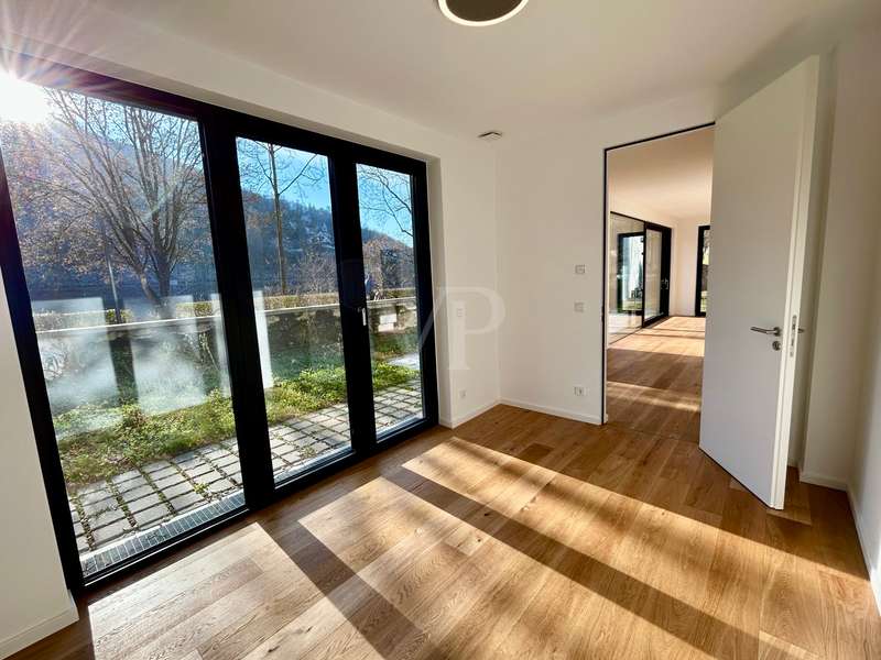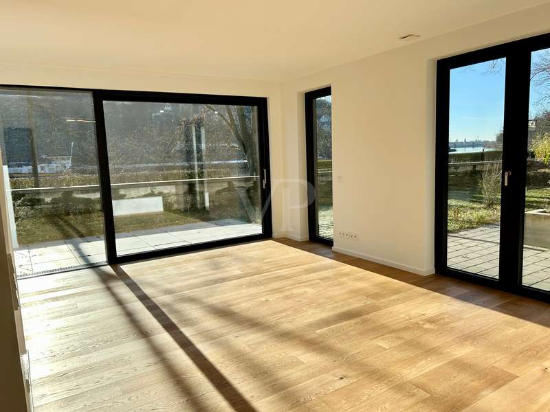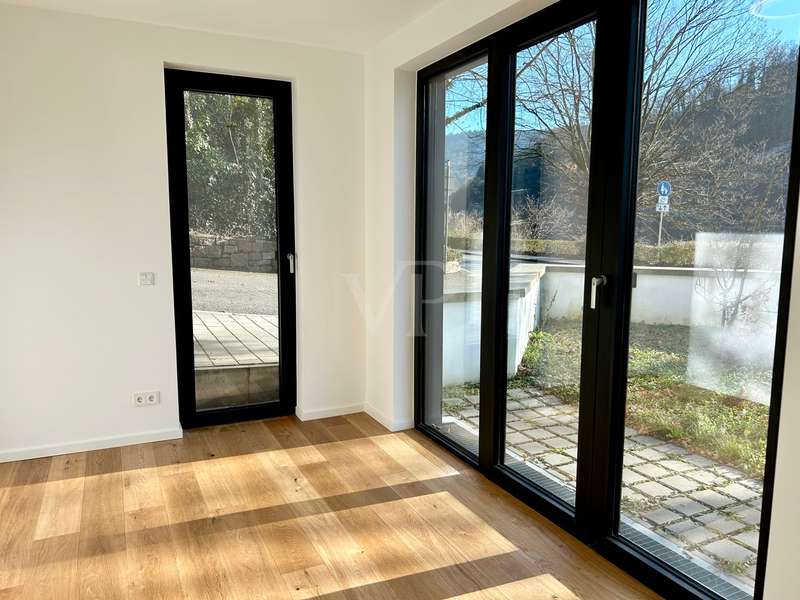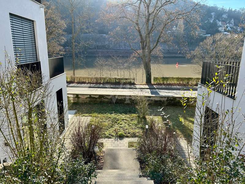 Exclusive apartment on the Neckar with upscale furnishings and private garden. For sale is a high-quality furnished apartment built in 2019, which is located in a modern, energy-efficient residential building with only four residential units. The apartment is located on the first floor and has a separate entrance, which offers a high degree of privacy. The property is in mint condition and was extensively modernized in 2024. Among other things, the floorboards, doors, bathrooms and walls were completely renewed. With a generous living space of approx. 126.6 m², the apartment offers well thought-out room layouts with a total of three rooms, including two bedrooms and a large, open-plan living and dining area with integrated kitchen. The living space is flooded with light, which is enhanced by the floor-to-ceiling windows. The features also include underfloor heating, electric blinds, a ventilation system and a modern heat pump. Additional comfort is provided by the new wooden floorboards and floor-to-ceiling room doors, which emphasize the modern architectural style. The bathroom is both functional and stylish and has a floor-level shower and a bathtub, while the separate guest WC provides additional comfort. The apartment is complemented by a balcony and a private garden with an area of approx. 86 m², which offers a variety of uses. The energy consumption of the property is extremely low thanks to its construction as a KFW Efficiency House 55 and corresponds to energy class A+. The residential complex impresses with its location directly on the Neckar and thus offers an attractive environment. The apartment comes with a brick-built cellar compartment, which provides additional storage space. An underground parking space rounds off the offer and provides protected and convenient access to the property. This high-quality apartment impresses with its modern design, quiet location in a well-kept residential building and excellent fixtures and fittings. The property is suitable for both couples and small families who value quality and comfort. We would be happy to provide you with more information and arrange a viewing so that you can see the benefits of this property for yourself.
