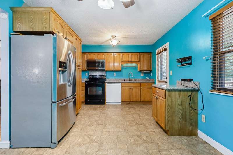 100 percent Financing Available Through KY Housing! This move-in ready home features an open floor plan filled with ample natural light, neutral dcor, and gleaming laminate floors throughout. The kitchen boasts granite countertops and includes all appliances, while the front-load washer & dryer also stay. Relax in the inviting living room with a wood-burning brick fireplace with insert and built-in shelving. The completely remodeled bathroom adds modern comfort, and ceiling fans throughout provide year-round efficiency. Exterior highlights include a newer roof, oversized deck, and a fenced backyard with mature treesperfect for outdoor living and entertaining. A beautiful combination of updates, charm, and convenience in Florence!