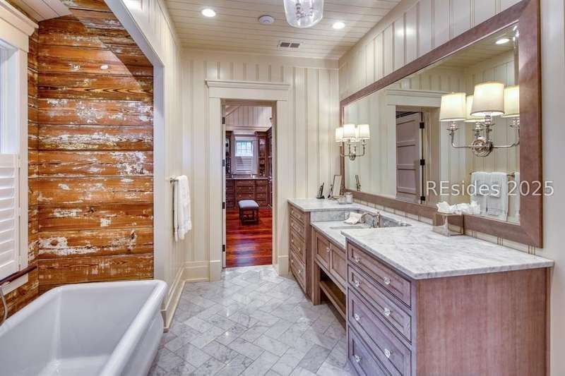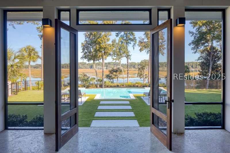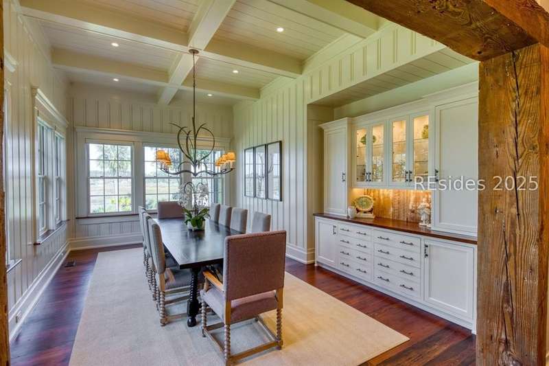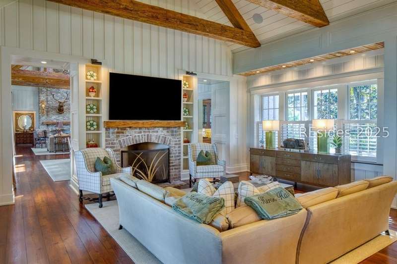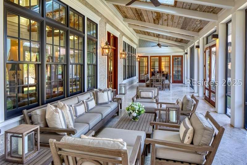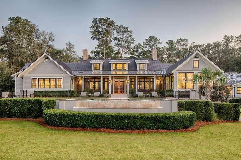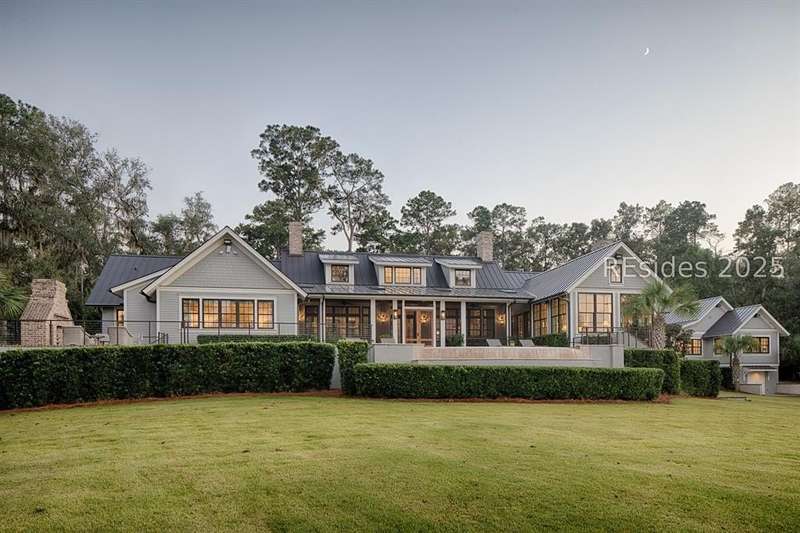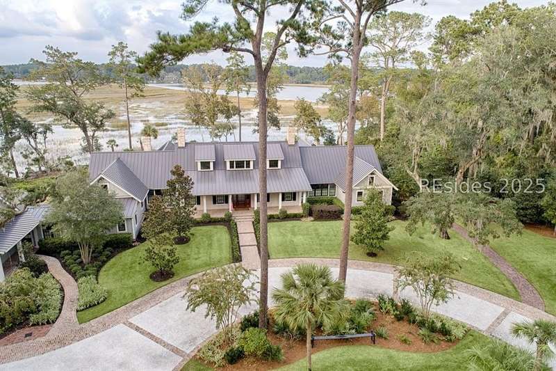 Experience Lowcountry luxury and coastal charm at its finest in this private, gated 10-acre waterfront estate. This preeminent property gracefully commands over 658 feet of the pristine May River shoreline within the highly sought after Palmetto Bluff community. Exuding timeless coastal beauty, the estate-known as Heron Hall-is a true sanctuary where nature and refined living exist in perfect harmony. Offering panoramic water views, impeccable design and endless amenities, this expansive compound includes a main residence and a fully appointed guest house, offering a total of 9 bedrooms, 9 full baths, and 2 half baths - providing both convenience and privacy for family and guests alike. Step inside to discover interiors with unparalleled attention to detail including exquisite millwork, reclaimed wood flooring, and soaring beamed cathedral ceilings. Each living space captures breathtaking panoramic views, blending timeless architecture with modern luxury. The private primary wing is a serene retreat with sweeping river and marsh views, dual spa-inspired bathrooms, and expansive custom closets. The heart of the home is the fully appointed gourmet kitchen, open to the breakfast and family rooms for effortless gathering. Formal and informal living and dining rooms invite both sophisticated entertaining and relaxed day-to-day living. The lower level offers exceptional entertainment spaces with media and game rooms, a temperature-controlled wine room, craft and wrapping room, pressing room, two bunk rooms, and a private guest suite with its own entrance. Outdoor living is equally spectacular - a spacious screened porch, infinity-edge pool, and outdoor fireplace create the ultimate setting to fully embrace the lifestyle this exceptional home affords. Additional highlights include extensive conditioned storage, five oversized garage bays, two additional garages for bicycles and golf carts, smart home technology, advanced security, a central mechanical building, and a full-estate generator. The highly acclaimed Montage resort community of Palmetto Bluff is a 20,000-acre guard-gated community nestled along the May River between Hilton Head Island and Savannah, Georgia. This Lowcountry masterpiece is truly a canvas for a life lived with passion and purpose and has been curated for comfort, hospitality and privacy.
