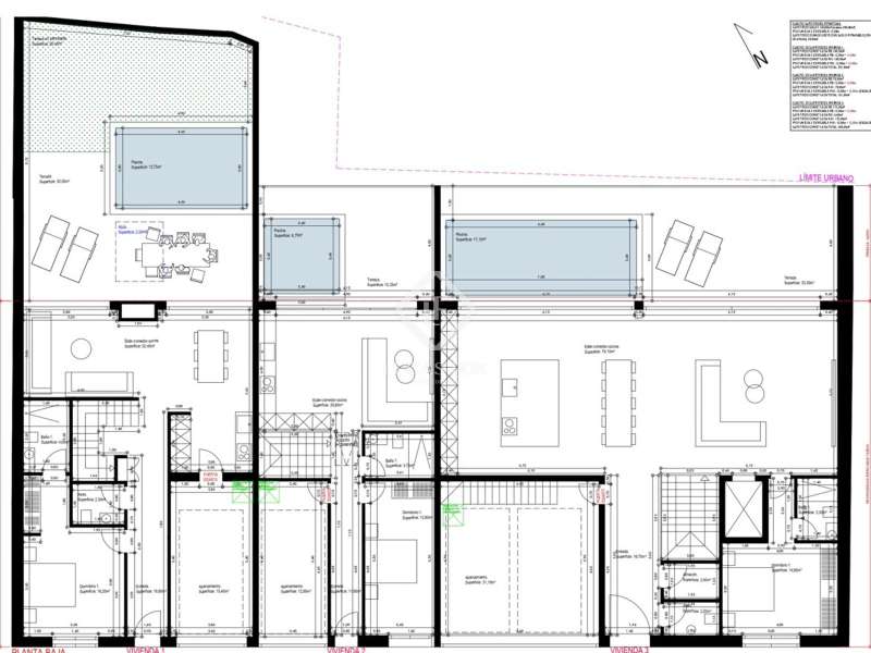 This stunning semi-detached villa is part of a boutique development of three semi-detached homes, located in a peaceful residential area of Sa Cabaneta, Marratxí. Designed to combine modern aesthetics with Mediterranean comfort, this property is offered as a project with the building licence already submitted and pending approval, providing a unique opportunity to acquire a brand-new home off-plan. The villa has a total constructed area of 151?m², thoughtfully distributed across three levels. The layout includes a bright and open living-dining-kitchen area, three bedrooms, three bathrooms, a spacious entrance hall, and a private garage. The rooftop offers a private terrace of 34.50?m², ideal for creating a chill-out space, installing solar panels, or enjoying open views. The outdoor area includes a beautifully designed garden and a private swimming pool, while the plot also offers 28.00?m² of permeable surface area, making it both stylish and environmentally integrated. This property is perfect for those seeking a modern and spacious home in a tranquil location, with the advantage of buying early in the development stage. The information provided is for guidance only and may be subject to modifications during the project. Please contact us for further information.