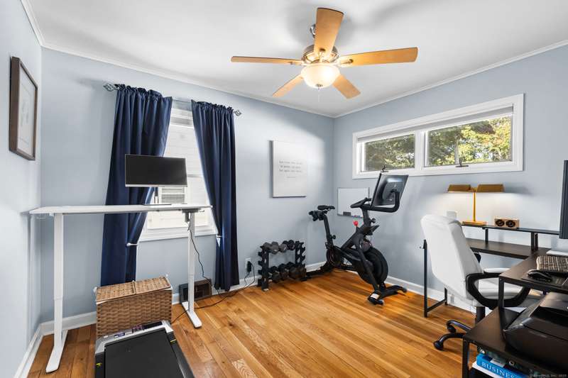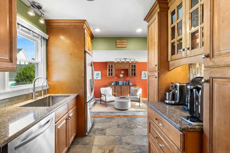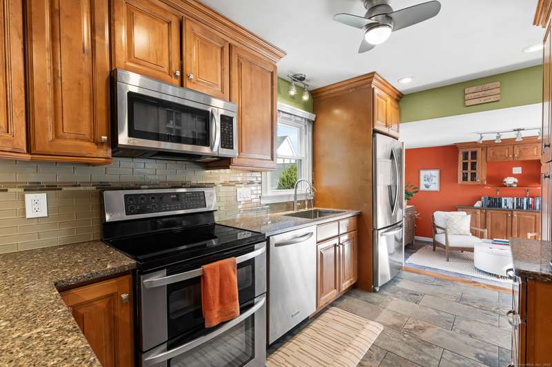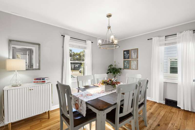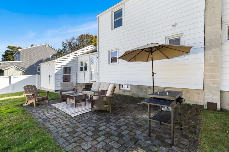 Location is key! Live the beach life just steps from Silver Sands and Fort Trumbull Beach in this beautifully maintained Cape. The backyard also borders Silver Sands State Park, offering privacy, calmness, and ocean breezes right by your door. Just minutes from Meadowside Elementary, Downtown Milford, I-95, and the train. Inside, enjoy an eat-in kitchen with quartz counters, stainless appliances, and custom cabinetry. The sunken breakfast nook opens to the patio, perfect for morning coffee or outdoor dining. A formal dining room and bright living area make entertaining easy. A first-floor bedroom adds flexibility for guests or convenient one-level living. Upstairs, the primary bedroom includes a cozy loft ideal for a home office or reading nook. All three bedrooms are spacious with ample closets. The updated bathroom features a granite vanity and modern finishes. Hardwood floors and central air provide comfort throughout. The fenced backyard and patio create a peaceful retreat. Silver Sands is your backyard, the beach your neighbor, schedule your showing today!