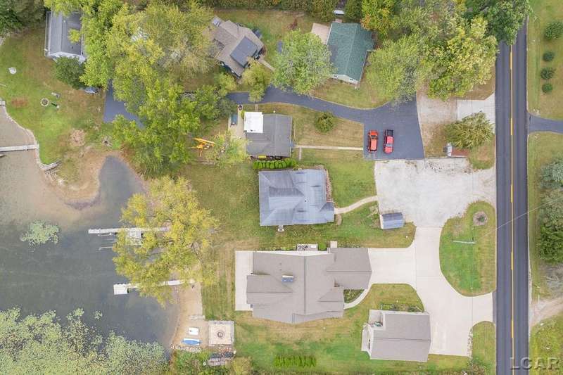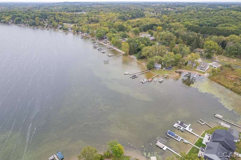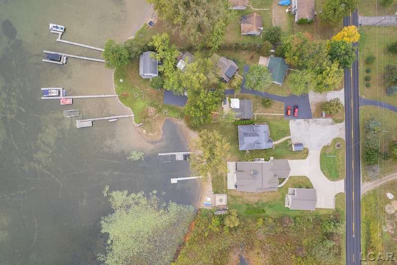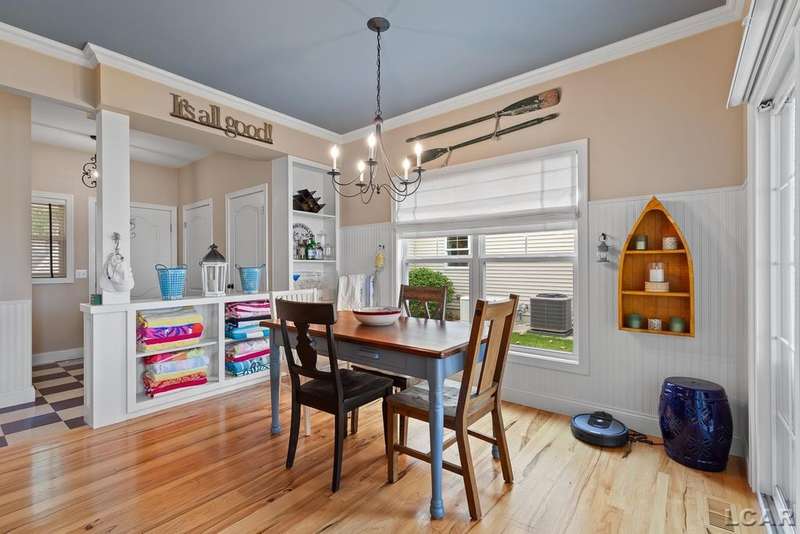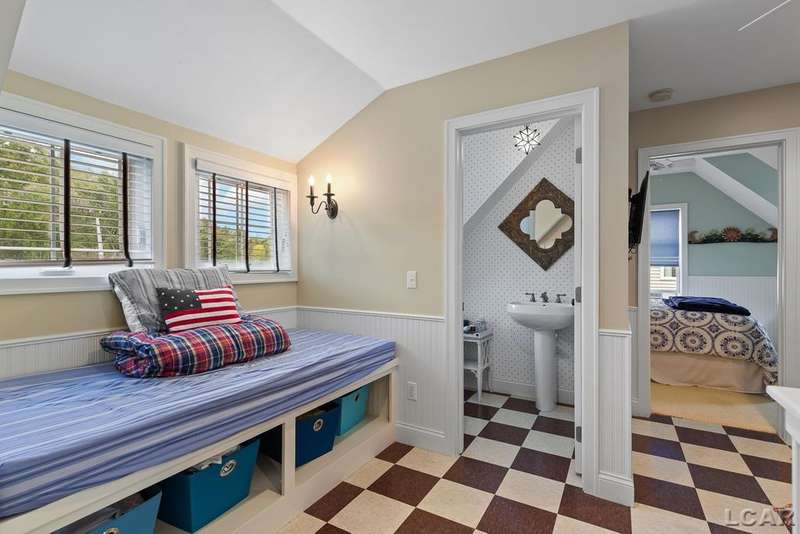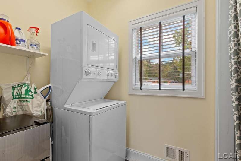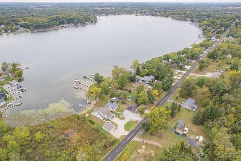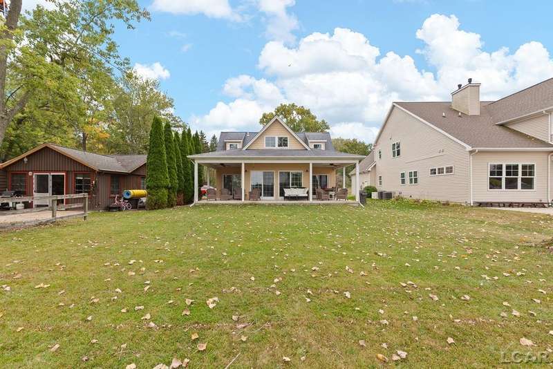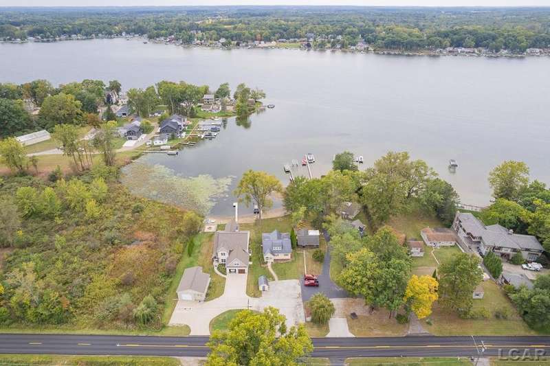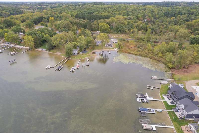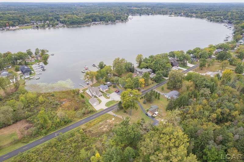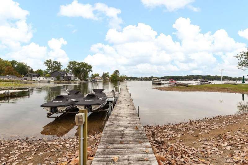 Devil's Lake Waterfront Home with 80' of beachfront property. This gorgeous lakefront home features 1700+ sq. ft of living space with 3 BD 1-1/2 BA offered fully furnished is beautifully maintained inside and out. Hardwood floors throughout with soaring ceilings and walls of windows for natural light. Open concept kitchen with solid surface countertops and large island seating for gathering. The dining and living room overlooking beautiful backyard space for all the activities, with no stair steps to the waterfront. Main floor master bedroom with private patio and views of the lake. Upstairs features two bedrooms, 1/2 bath and loft area with built in day bed and pull-out queen bed sofa for additional sleeping options.