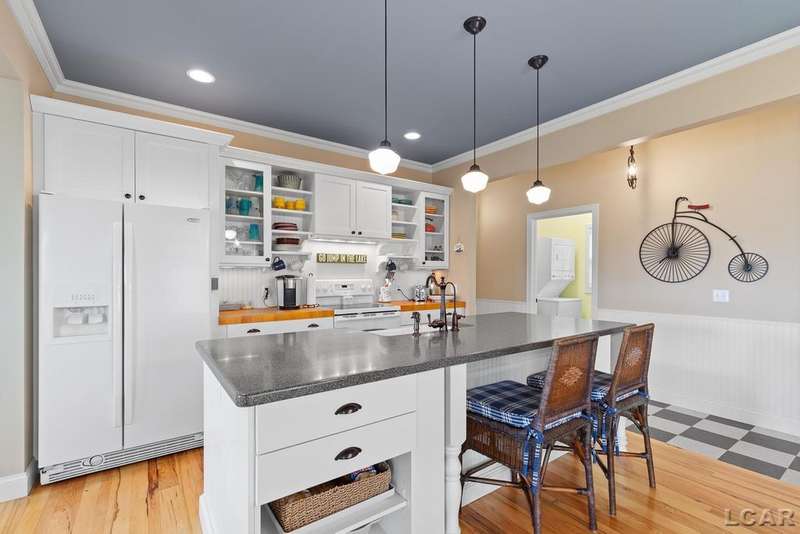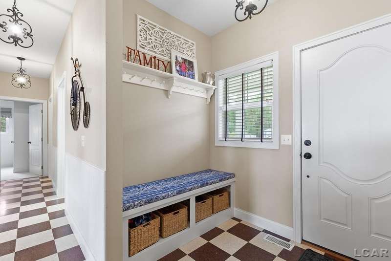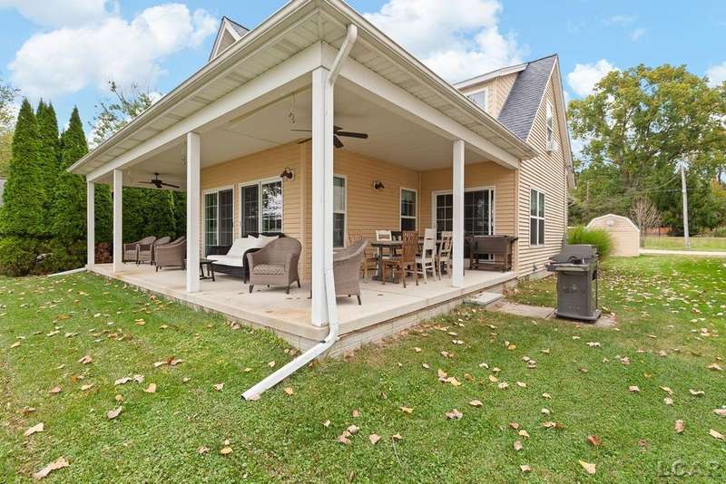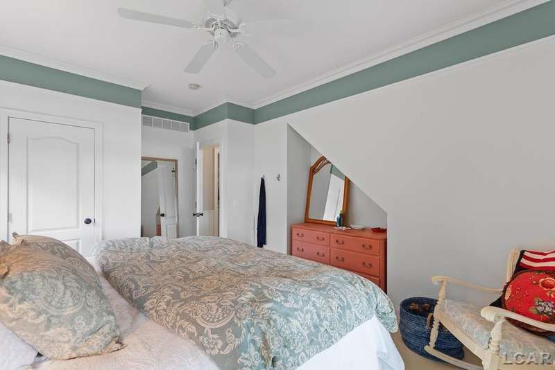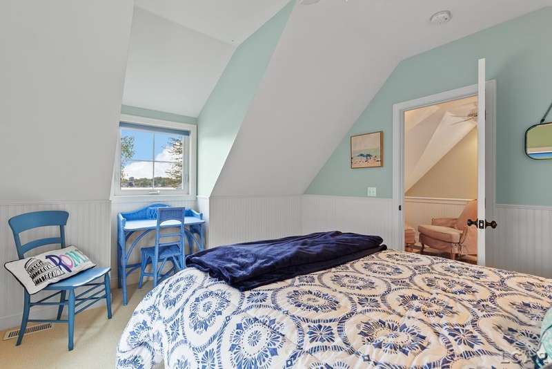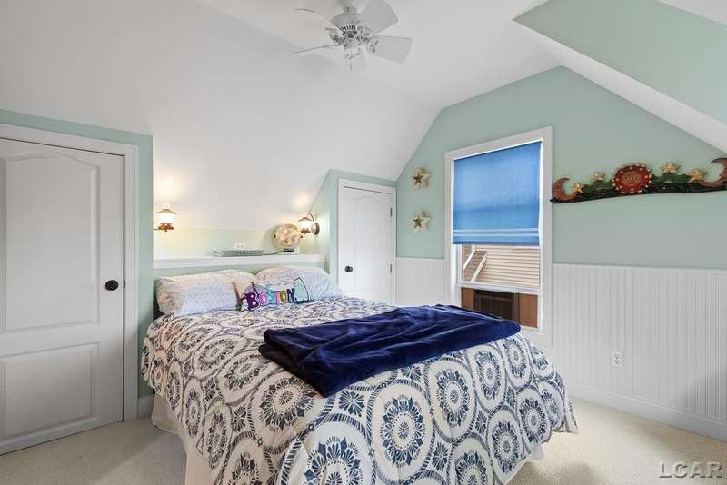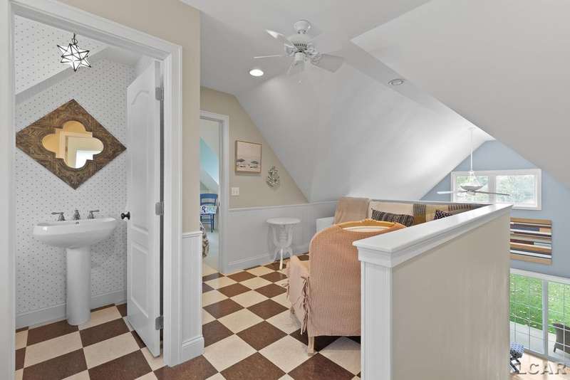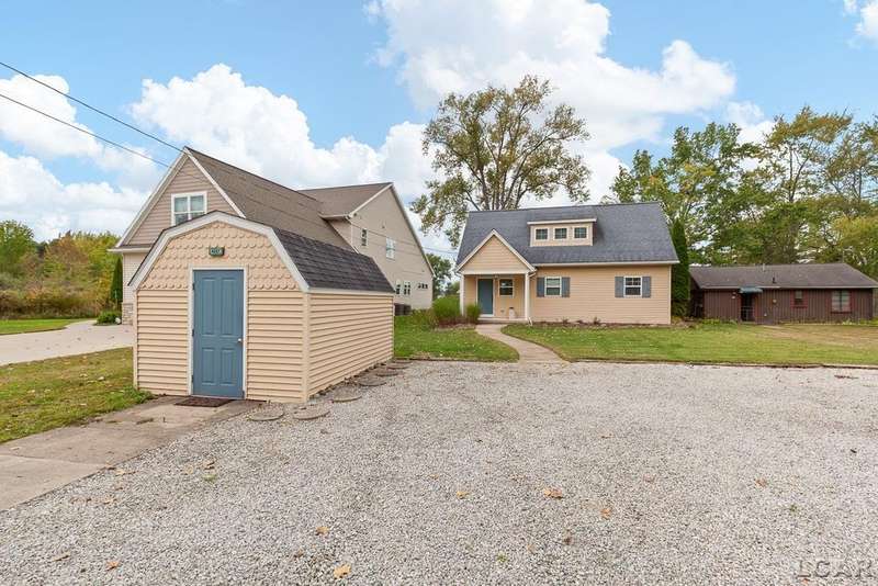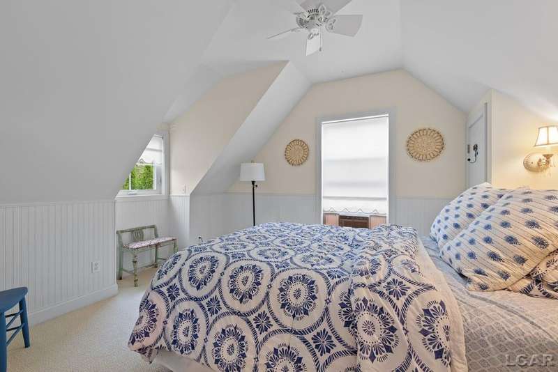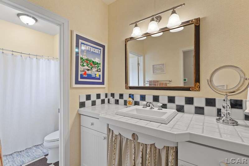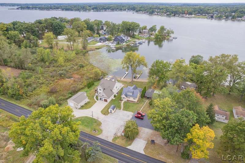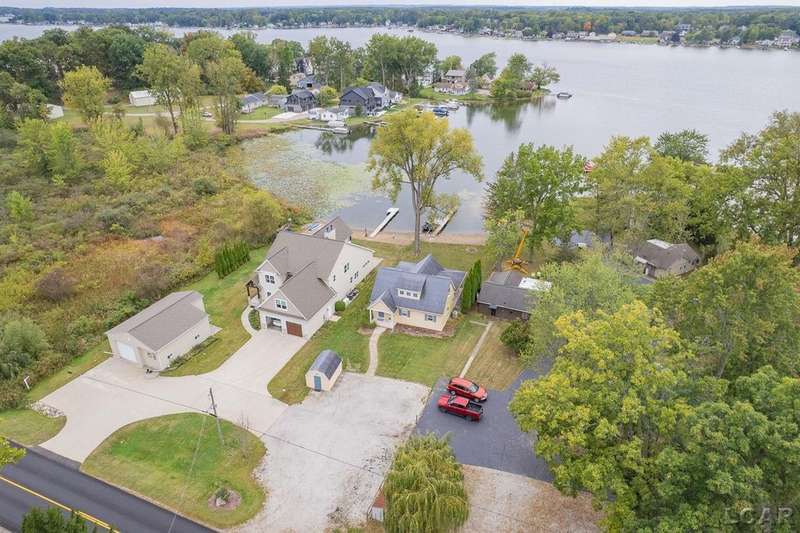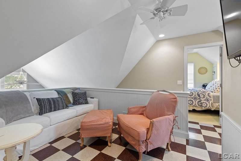 Devil's Lake Waterfront Home with 80' of beachfront property. This gorgeous lakefront home features 1700+ sq. ft of living space with 3 BD 1-1/2 BA offered fully furnished is beautifully maintained inside and out. Hardwood floors throughout with soaring ceilings and walls of windows for natural light. Open concept kitchen with solid surface countertops and large island seating for gathering. The dining and living room overlooking beautiful backyard space for all the activities, with no stair steps to the waterfront. Main floor master bedroom with private patio and views of the lake. Upstairs features two bedrooms, 1/2 bath and loft area with built in day bed and pull-out queen bed sofa for additional sleeping options.