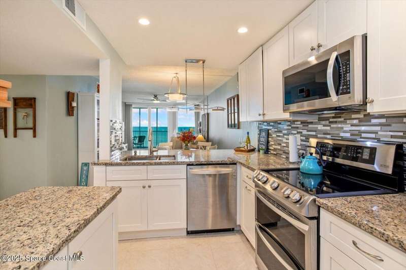Welcome into this RENOVATED Modern Coastal Living condo where innovation meets comfort. Step into Unit 403, a beautifully revitalized beachside residence designed for those who appreciate thoughtful upgrades, clean lines, and panoramic Florida vistas. Perfectly positioned in the middle of the south building, this condo captures natural light from both the east and west?meaning youll wake with the sunrise and wind down to postcard sunsets without ever leaving home.A Home That Has Been Fully ElevatedThis isnt just an updated unit?its been purposefully designed for those with impeccable taste and style. Brand-new energy-efficient floor-to-ceiling sliders in the living room and primary suite bring the coastline directly into your space.Full kitchen renovation redesigned the layout into a true open-concept plan?including a sleek 15-bottle wine cooler and built-in rack for your favorite vintages. Remodeled bathrooms featuring modern finishes and refreshed design detail