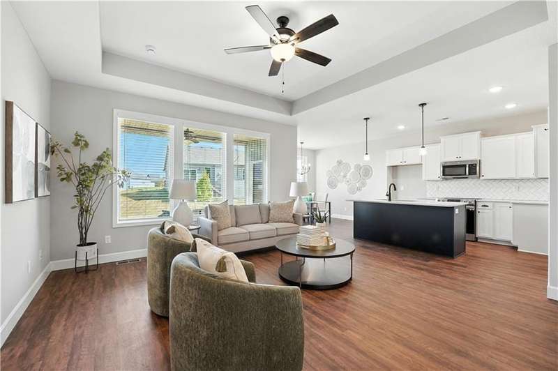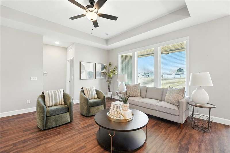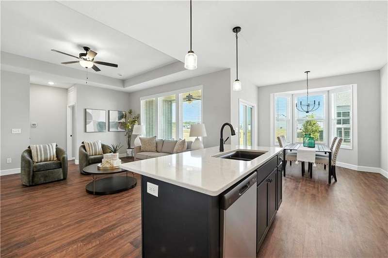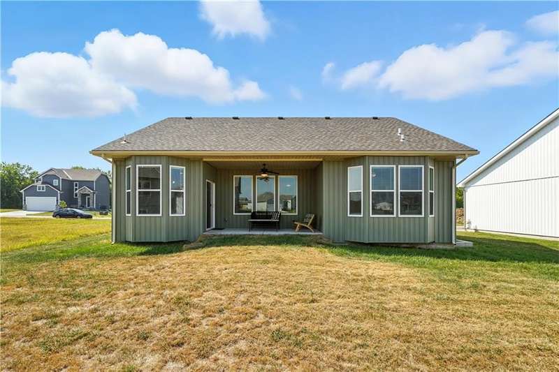 Welcome to 27008 E Olive Drive, a nearly new home in the desirable Woodlawn Estates community. Built less than two years ago, this 3-bedroom, 2-bath ranch offers modern style, thoughtful design, and trend-forward finishes throughout.One of the most unique features of this home is it's true zero-entry designwith no steps into the home or out to the covered patio, this layout provides convenience and accessibility for every buyer.The kitchen is a stunner with painted cabinetry, quartz countertops, soft-close drawers, and a spacious walk-in pantry. Large windows fill the kitchen and living areas with natural light, while the bay windows in the dining area and primary suite add character and charm.Upgrades are found throughout, including plank flooring carried into the primary bedroom, upgraded baseboards for more visual interest, a garage sink, the Samsung oven, and a ceiling fan on the covered porchperfect for relaxing outdoors. The primary suite features its own bay window, a generous walk-in closet, and a beautifully designed bath.The unfinished lower level is a blank canvas, offering plenty of room to expand. With an egress window and rough-in for a full bath, its ready for a future fourth bedroom, rec room, or home gym.It is conveniently located on the south side of 50 Highway within the Lees Summit School District. The location is ideal, with quick access to Lees Summit, Blue Springs, Greenwood, and Pleasant Hill.Dont miss your chance to own this thoughtfully upgraded, move-in ready home in one of the areas newest neighborhoods.