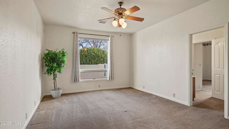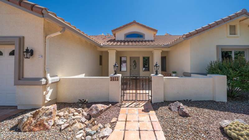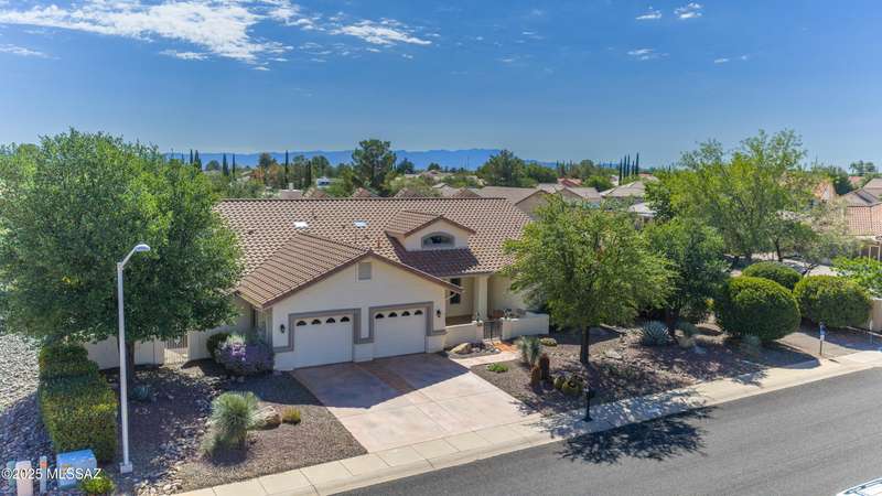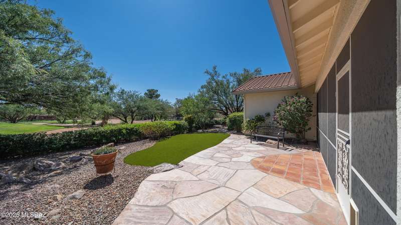 2653 SF Custom SOLAR Home on the 11th Putting Green of Golf Course with Beautiful Courtyard Entry and Grand Foyer to welcome your Guests...3 HUGE Bedrooms...MBR has plenty of room for a private sitting area, plus a Beautiful Bath and HUGE Walk-in Closet...the other 2 guest bedrooms have a Jack-and-Jill Bath, plus there is an addition Half Bath off the kitchen area, so 2.5 Baths altogether...Laundry Room with Private built-in Office and oversized 2 Car Garage with custom stained-glass inlays...Gorgeous and Larger SS and Granite Chef's Kitchen with Breakfast Bar and HUGE Eat-In Area...Stunning Two-Way Gas Log Fireplace between Kitchen and Living Room...Full-Length AZ Room and Lovely backyard overlooking the putting green...move in ready for you to get settled before the end of the year!!!