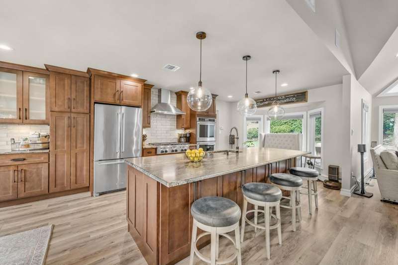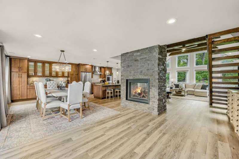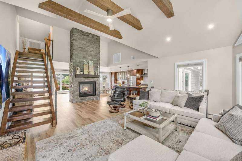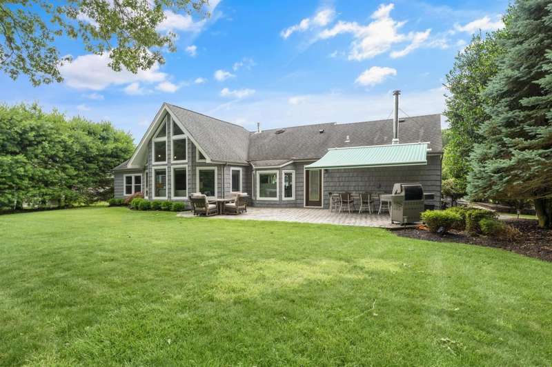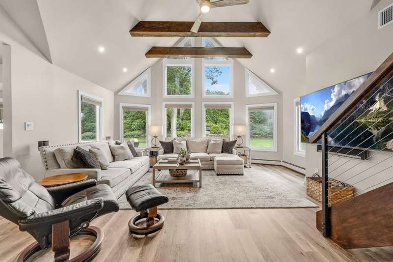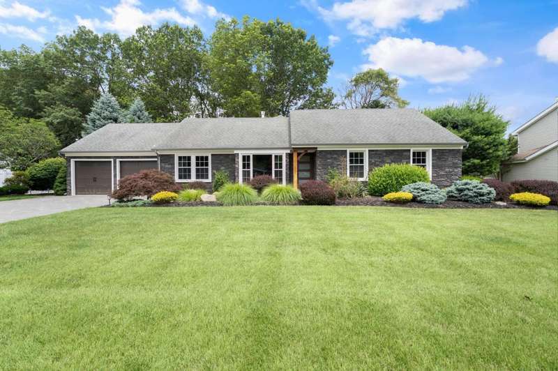 Welcome to 58 Timber Ridge Drive - A Stunning Expanded Ranch in the Famed Country Woods Development (Commack Schools District)This beautifully updated Ranch-style home offers luxurious living both inside and out, nestled within the highly sought-after Commack School District and prestigious Country Woods community. Step inside to an impressive open floor plan, anchored by a chef's dream kitchen featuring granite countertops, a tile backsplash, stainless steel appliances, and a large center island - perfect for cooking, entertaining, or casual dining. The heart of the home is a striking double-sided stone gas fireplace that enhances both the kitchen and the spacious family room. Vaulted ceilings with decorative beams and a wall of windows provide an airy, light-filled space with gorgeous views of the backyard. An open staircase leads to a versatile bonus room and a walk-in attic, offering additional living or storage space. Enjoy outdoor entertaining on the elegant paver patio, complete with an electric awning for shaded comfort.Additional highlights include: Paver driveway and walkways, Stunning stone front exterior, Updated windows and bathrooms, New front and garage doors. Removable garage wall systems and special flooring - a dream setup for any garage enthusiast. This home is filled with thoughtful upgrades and stylish finishes throughout - truly move-in ready.Don't miss your opportunity to make 58 Timber Ridge Drive your forever home!