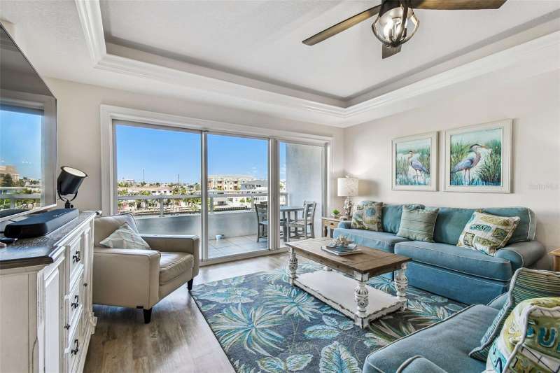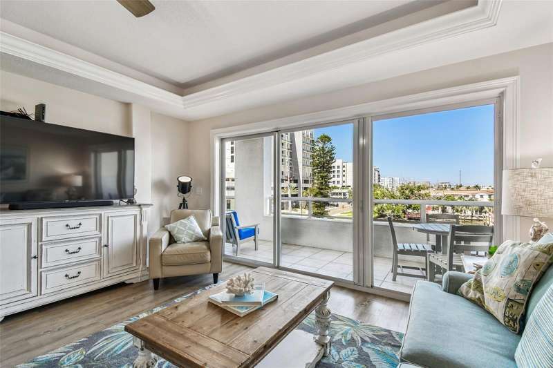 Welcome to Sun West Palms—an iconic boutique-style retreat where tropical tranquility meets coastal elegance. With just 10 exclusive residences, this rare offering blends the charm of nautical-inspired architecture with the relaxed sophistication of island life. Whether you're seeking a serene full-time residence, a sun-drenched second home, or a HIGH INCOME INVESTMENT WITH A 7-DAY RENTAL POLICY, this is the opportunity you've been waiting for. Just 275 Steps - or a 2 minute stroll - to #1 rated Clearwater Beach, with its azure Gulf waters and powder-soft sand this waterfront gem offers the ultimate beach lifestyle. Tucked away in a peaceful enclave, yet steps to Clearwater Beach’s vibrant dining scene, boutique shops, marina cruises, and endless entertainment. You’ll enjoy both seclusion and connection—truly the best of both worlds.From your expansive private balcony, enjoy panoramic views of the heated pool, spa, and the tranquil Intracoastal Waterway. Watch dolphins and manatees glide by daily, or unwind on the day dock for a front-row seat to Florida’s indigenous wildlife show! Designer finishes and thoughtful touches are showcased throughout, including fresh new paint and remodeled bathrooms with custom tile work. This property is being sold turnkey furnished and boasts 3 spacious bedrooms, 3 full bathrooms and a generous 2,253 sq ft of living space. The open-concept design is sure to please with a blend of French Provincial decor and coastal flair. The living, dining, and primary bedroom all boast direct water views. The chef’s kitchen with granite countertops, maple cabinetry, high tray ceilings, stainless steel appliances, island cooktop, and breakfast bar is ideal for entertaining large gatherings of friends and family. The elegant primary suite is graced with dual walk-in closets, granite vanities, a luxurious jetted tub, and walk-in shower. As an added bonus, there are ample storage closets for convenience and effortless living. Poolside, you will find a private locker/cabana for all your beach toys, fishing gear and bicycles. Live where others vacation. Welcome to your coastal sanctuary at South West Palms.