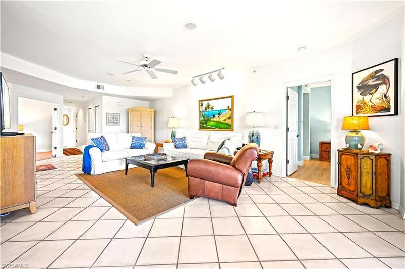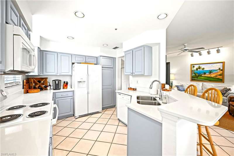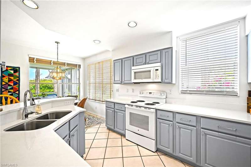 Picture perfect WITH LONG LAKE VIEWS where nothing is out of place. RARELY AVAILABLE FIRST FLOOR, END UNIT, SOLD TURNKEY IN BONITA BAY with an abundance of natural light pouring in. 27071 Lake Harbor CT #103 feels like home the moment you step inside and with three bedrooms and two full baths, it s the perfect size for a winter getaway or full-time residence. You will notice the new high-end, sustainable oak flooring in the bedrooms, the tasteful furniture, and pride of ownership, as it s beautiful and well kept! The kitchen has freshly painted blue cabinets, which brings a chic and homey vibe. A functional breakfast bar with updated counter tops, complete with amazing lake views. Fresh paint in the entire unit and a comfortable dining and living room are great for entertaining. This unit is SPECIAL because the lanai faces north and is whisper quiet. Located near the end of the Cul-De-Sac, you have privacy, and virtually NO TRAFFIC, as building 71 is the second to last building. Th