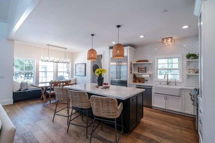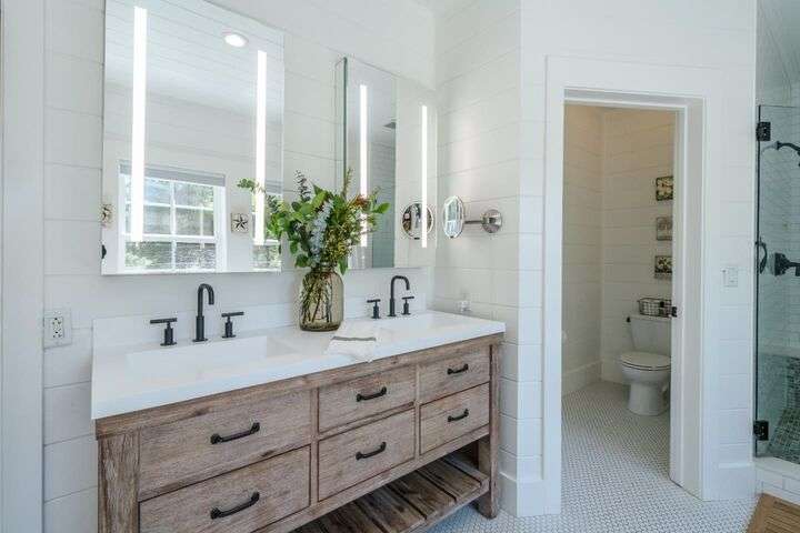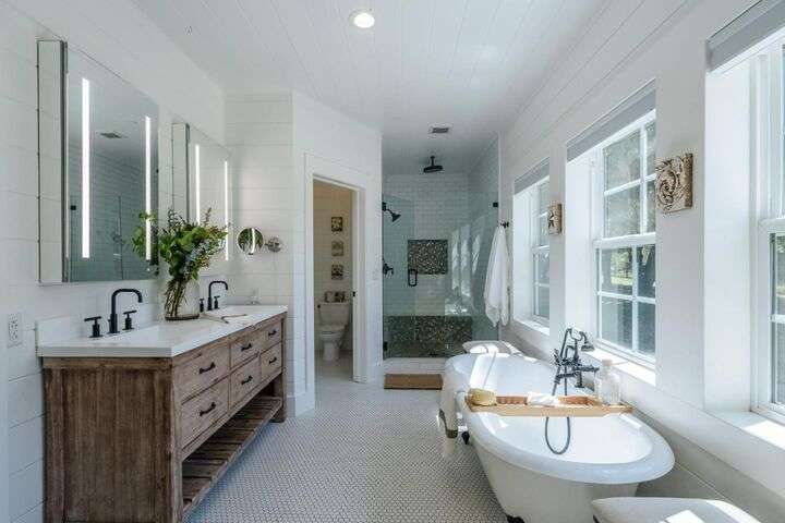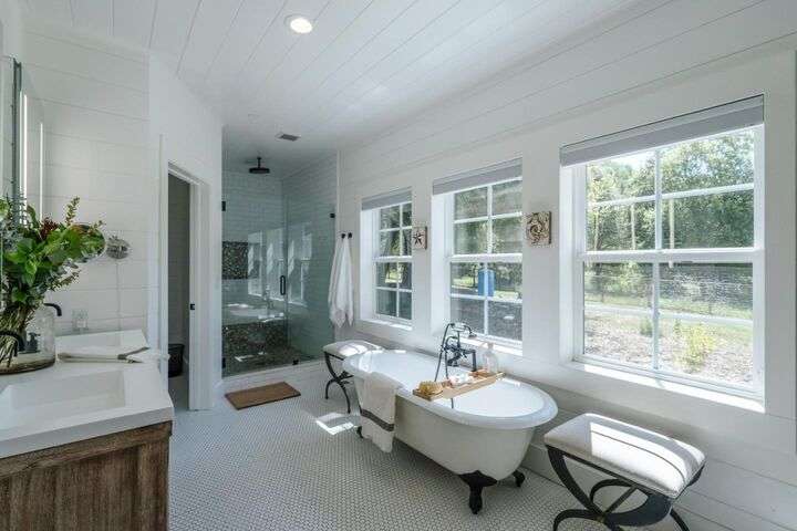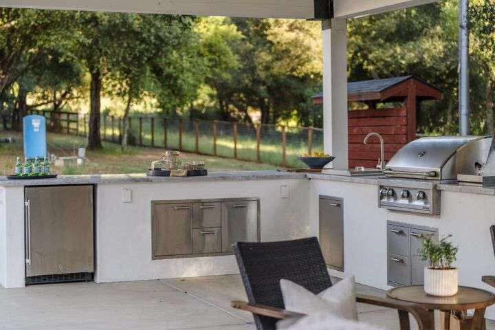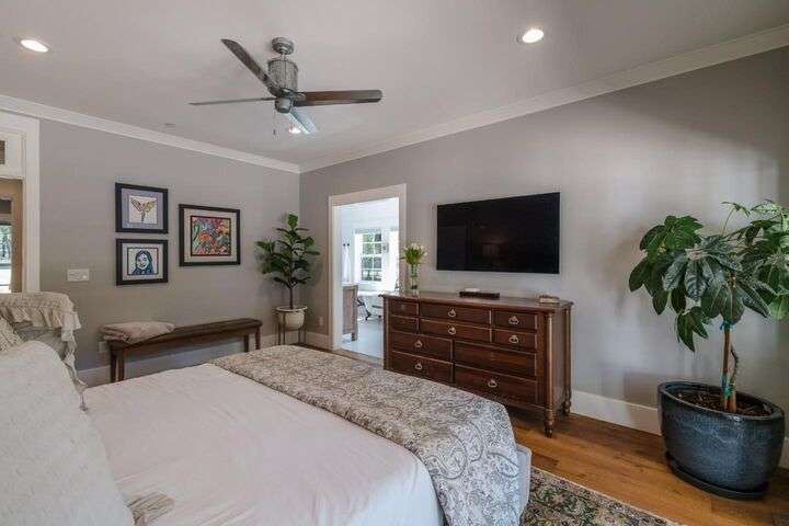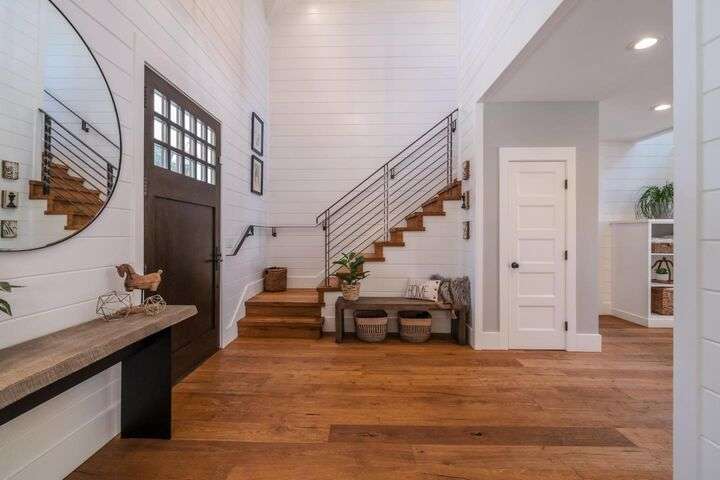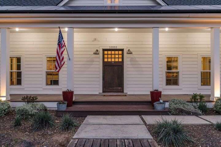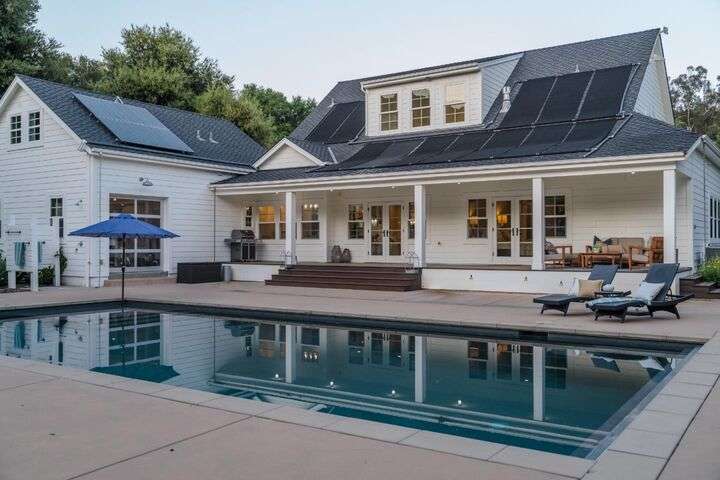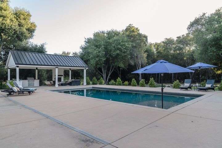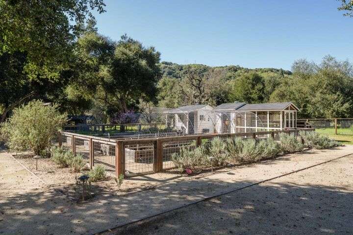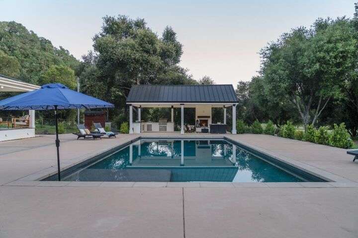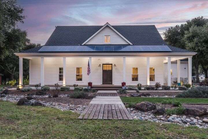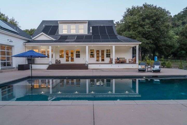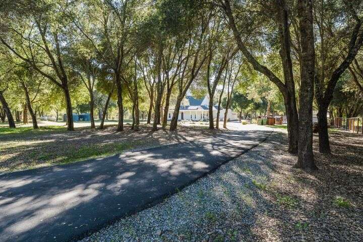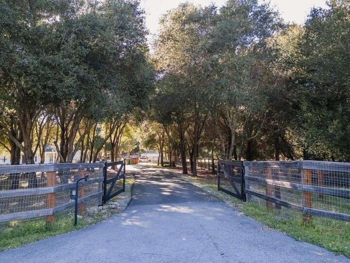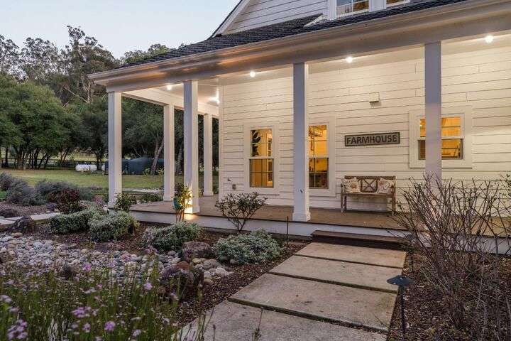 Elevated Country Living along Gilroy's wine trail! This is where modern farmhouse charm meets luxury on 6.7 acres. Think Chip & Joanna Gaines iconic Waco estate! This stunning property offers the perfect blend of elegance and functionality. Key features include a private gated entrance, owned solar, whole house propane generator, wraparound porch, gorgeous interior shiplap walls, wood floors, formal dining room, kitchen with Thermador appliances; quartz countertops, breakfast bar, nook with built-in seating, pantry, a downstairs primary suite with French doors and a cast iron tub with porcelain finish, downstairs guest room, loft/bonus room, upstairs bedrooms offer generously sized walk-in closets, family room with high ceilings and French doors that lead to the in-ground salt water solar heated pool! Exterior amenities feature an outdoor covered kitchen with gas fireplace, bocceball court, fire pit, garden with raised beds and garden shed, arena with 3 boarding stables, round pen and washroom, 150+ mature oak trees for serene privacy, and direct access to Uvas Creek - think of it as your natural retreat! Fish, enjoy nature or just enjoy all the beauty that surrounds this one-of-a-kind property!