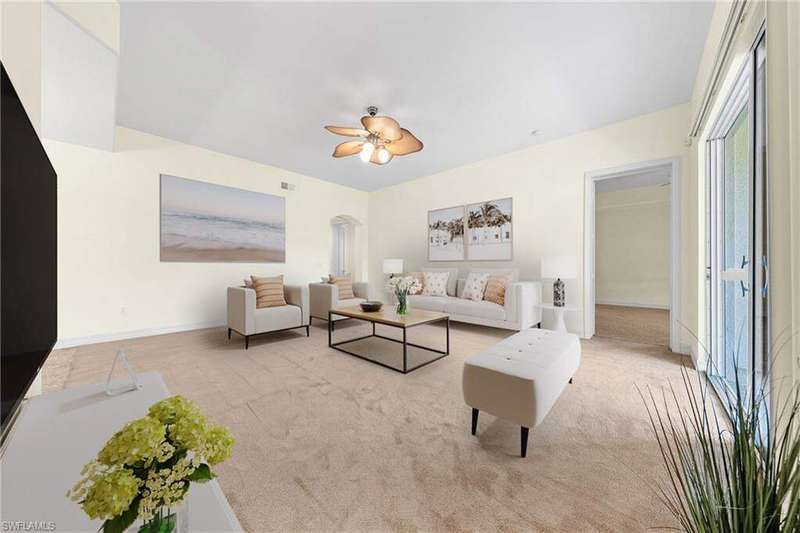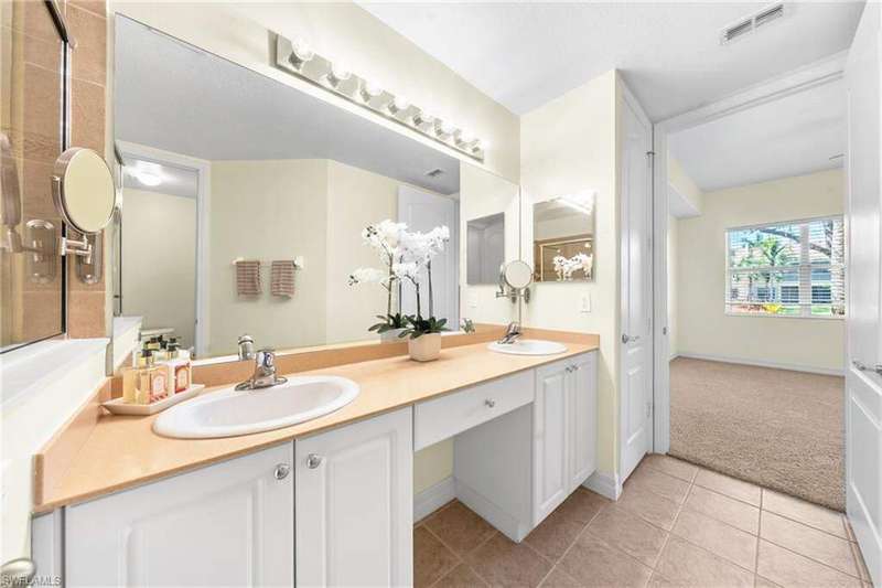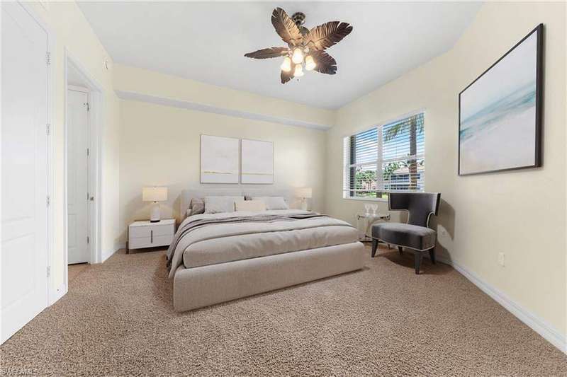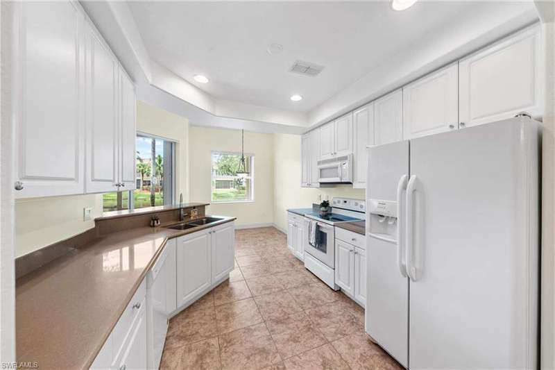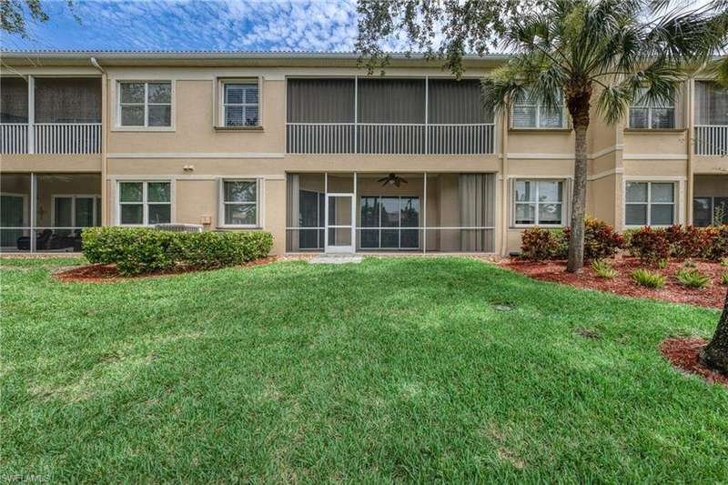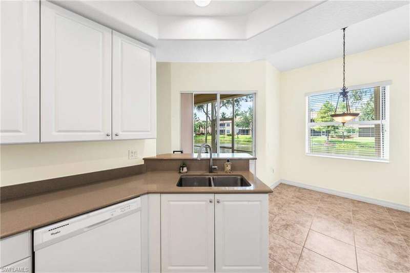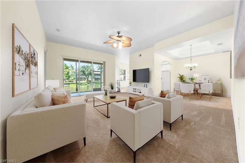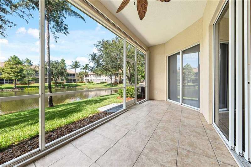 The elements of chic sophistication, coastal flair, and location merge together at this gorgeous nearly 1,900 SQFt, FIRST FLOOR 3 bedroom and 2 bath LAKEFRONT coach home in the premier and centrally located gated community of Jonathan's Bay at Fort Myers with a 2024 roof! The 3 L's (location, location, location) ring true at this special unit nestled just North of Alico Rd, South of 6 Mile Cypress and close to all the action Southwest Florida has to offer from Publix, Fresh Market, Home Depot, & Bell Tower mall just 5 minutes away from the gates of Jonathans Bay. Famed Ft Myers Beach is just a short 15 minute drive away with the Gulf's breathtaking views. From the entryway of your unit, you are welcomed into the foyer with the guest bedrooms to the right and left and the first full bathroom on the right. Through the foyer, you are ushered through to the living area and kitchen just beyond; all with gorgeous lakeviews from the screened in lanai. Your kitchen comes equipped with modern appliances, plentiful cabinet and counter space, disposal, and sleek countertops. Entertaining is a breeze with 2 entry points from the living and kitchen area out to the lanai bringing the outdoors in. Your living area is large with tons of natural light with the south facing rear. The primary bedroom is large and enjoys a double vanity, water closet, oversized walk-in closet, and lake views. The two guest bedrooms are also large in size and enjoy double closet space and natural light. Peace of mind is enhanced with a brand new roof (2024), brand new hot water heater (2024), HVAC System (2022), 1 car garage, laundry in residence, and hurricane screens along the lanai. Jonathan's Bay enjoys the exercise room, community pool, spa, and gated entry leaving a lasting impression of tranquility and security all within a convenient distance to parks, RSW, beaches, and all the rest of Southwest has to offer right at your disposal!