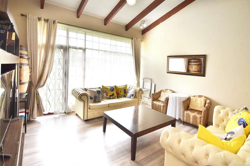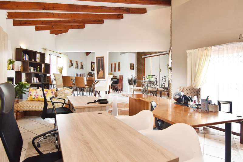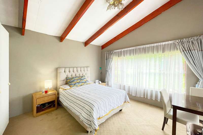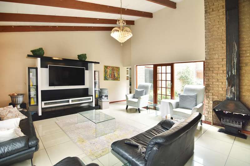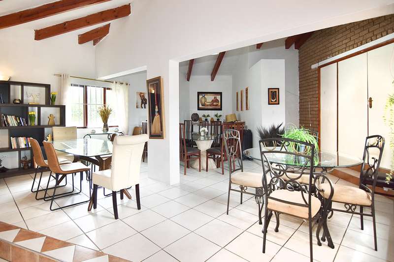 This 4 bedroom home is hidden away with a private driveway in the Randjesfontein Country Estates on 1.36ha of land. There is a large adjoining flatlet to the main house. The house has four garages and plenty of parking for guests. Staff quarters for two, storerooms and bridal paths complete the picture. The home has a large swimming pool and borehole water pump (and JoJo tank) alongside the bridal path. Laundry room with access to the staff quarters and a adjoining pantry and scullery in the kitchen.
