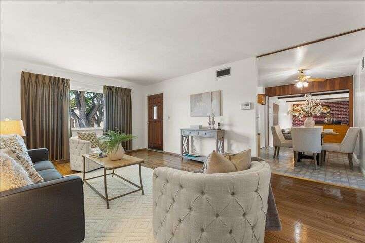 Beautiful 4-bedroom, 2-bath home featuring a spacious living room and a step-down family room with a cozy fireplace. This rare floor plan offers beautiful hardwood flooring and an inviting layout perfect for entertaining or relaxing. Conveniently located near major highways, shopping, parks, and excellent schools ideal for both comfort and an easy commute.