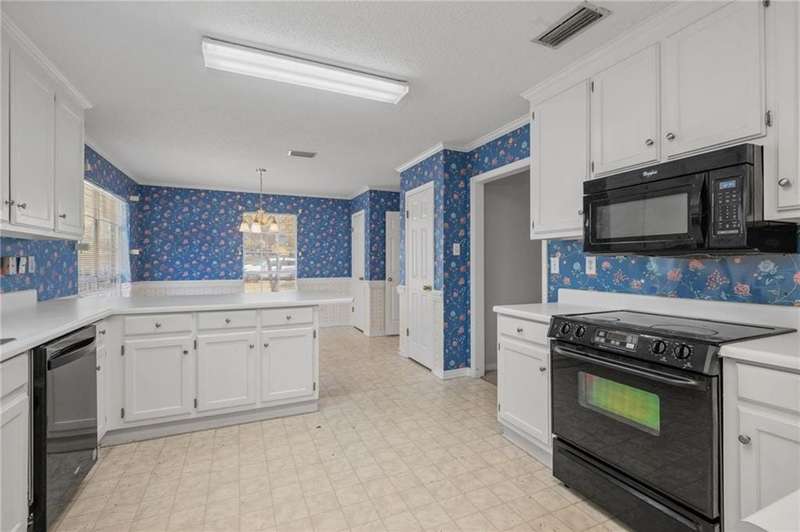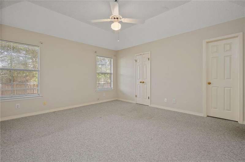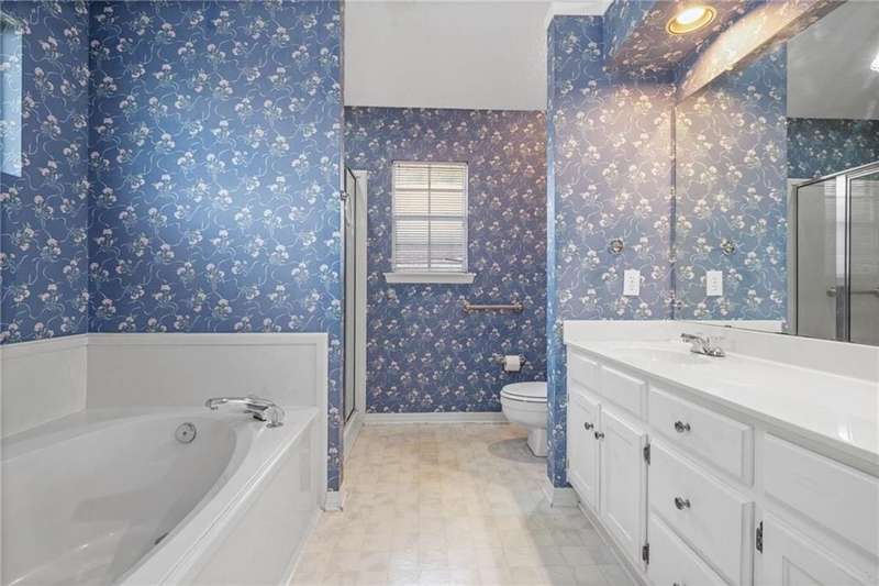 Great cul-de-sac lot with spacious 4-bedroom, 2-bath home offering an inviting floor plan and generous living spaces. The eat-in kitchen features white cabinetry and flows to a formal dining room, while the large family room boasts a cozy gas-log fireplace. The primary suite includes double vanities, a garden tub, and a separate shower. Extras include a large laundry and mudroom, 2-car garage with workshop storage and toolboxes. Bonus Perks are upright freezer, refrigerator, shed. The front yard has sprinkler system. Roof 2009, AC 2015, and water heater 2024. Buyer responsible for verifying all measurements and relevant details.