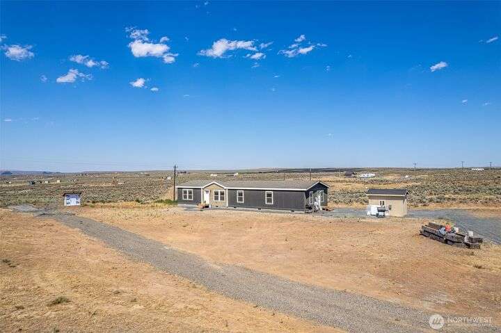 2023 manufactured double wide located at Rimrock Meadows recreational area north of Ephrata WA. The home has 2016 square feet with 5 bedrooms and 2 1/2 bathrooms. The home has its own well, 3 phase power and septic system designed for 5 bedrooms. Rimrock Meadows is an HOA community with CC&R's and Bylaws that are available on line. The community offers the following amenities; clubhouse with game room, TV and fireplace, full kitchen and laundry room. Swimming pool, men's and woman's showers, various BBQ areas, play structures for kids, trailer and tent camping, fish cleaning station, off-leash dog area, black water dump station, potable water station, ORV training, access onto Nature Conservancy for hiking and hunting w/permits.