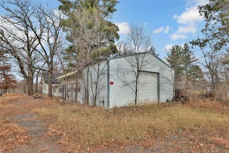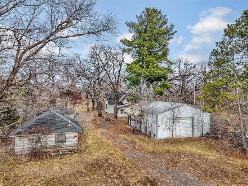 Equity builder alert! 2 acres, Sunrise River flows through the property north of the house. Home will be a total rehab project, Cash or construction loan only, Sold As Is. Home appears to be level and structurally sound but has been vacant for over 2 years with electricity turned off. Bring flash lights for showing. Masks for mold recommended. 3 outbuildings (pole barn, garage and shop). Additional clean up required on the property and in the buildings. Cameras on site. Do not walk the property without attendance by a licensed real estate agent. Additional land available. See listing for $275k for this lot and vacant lot to the East.
