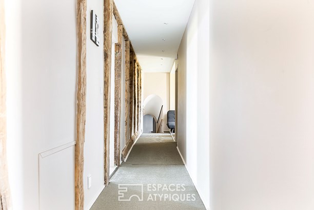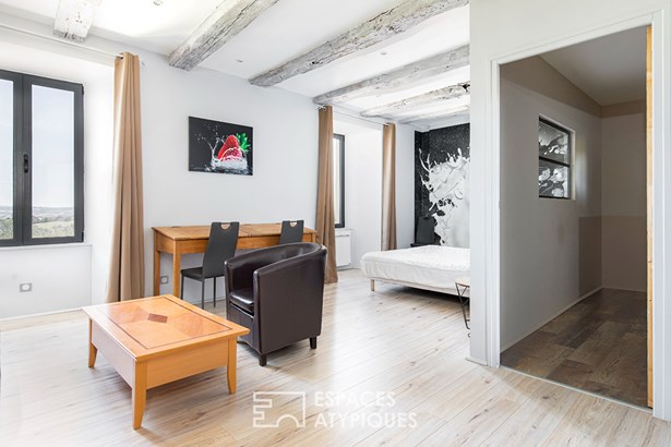 Une grande piece de 100 m2, actuellement dediee a la detente, laisse de nombreuses possibilites selon les envies et besoins de chacun. Un autre espace compose d'une piece et de sa mezzanine, le tout pour une surface d'environ 65m2 permet la aussi de laisser libre cours a son imagination.