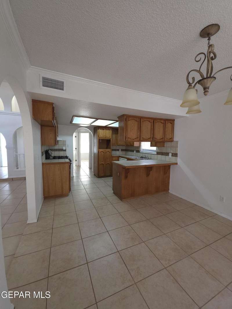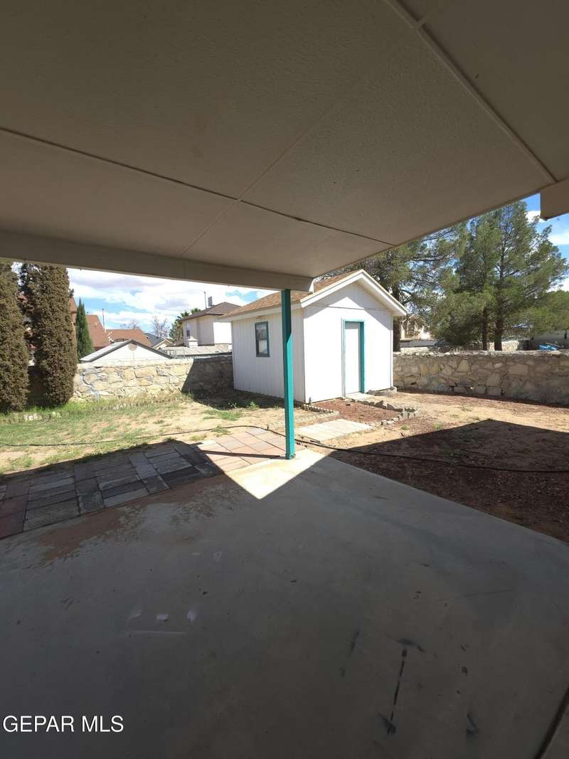 Four bedrooms and refrigerated air in this great home located on a corner lot just off of Pebble Hills. Home is all tiled no carpet at all. Main bedroom and one other bedroom on one side and two other bedrooms and bath by kitchen area. Double attached garage and laundry room. Big backyard with covered porch and storage room.
