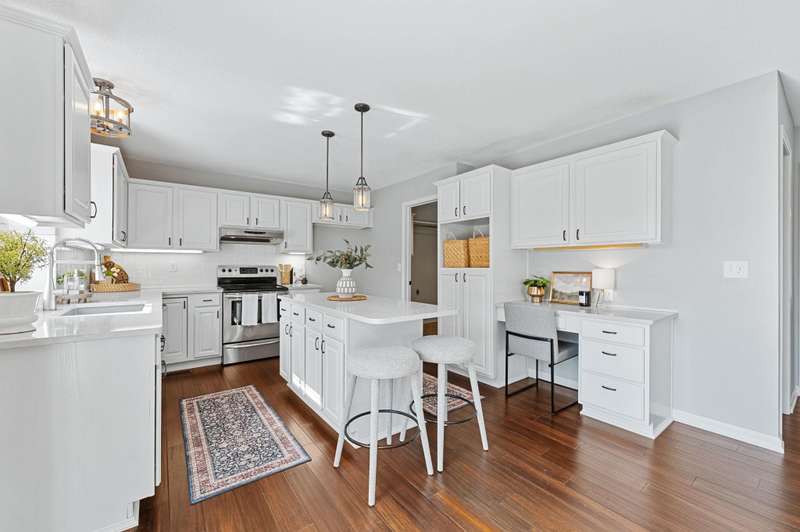 Look no furtherthis beautifully updated water lot home in the sought-after Maize South boundary is truly a step above the rest. Featuring 4 bedrooms and 3.5 baths, this charming two-story evokes classic white-picket-fence dreams while offering modern comfort and style. The main floor boasts a fully remodeled kitchen and open-concept living area with breathtaking water views, complemented by a traditional formal dining space perfect for gatherings. Upstairs, youll find two bedrooms with a full hallway bath, along with a serene master suite that showcases abundant natural light, tranquil lake views, a walk-in closet, and a remodeled ensuite bath with a luxurious soaker tub. The finished basement expands your living space with a large family room, a home office (or fourth bedroom), a wet bar, and a full bathroomideal for entertaining or relaxing. Outside, enjoy the communitys walking paths, mature trees, and neighborhood swimming pool, with this home perfectly situated to take advantage of it all. A rare opportunity, this property combines timeless charm, modern updates, and a premier location. NEW ROOF AND GUTTERS HAVE BEEN APPROVED.