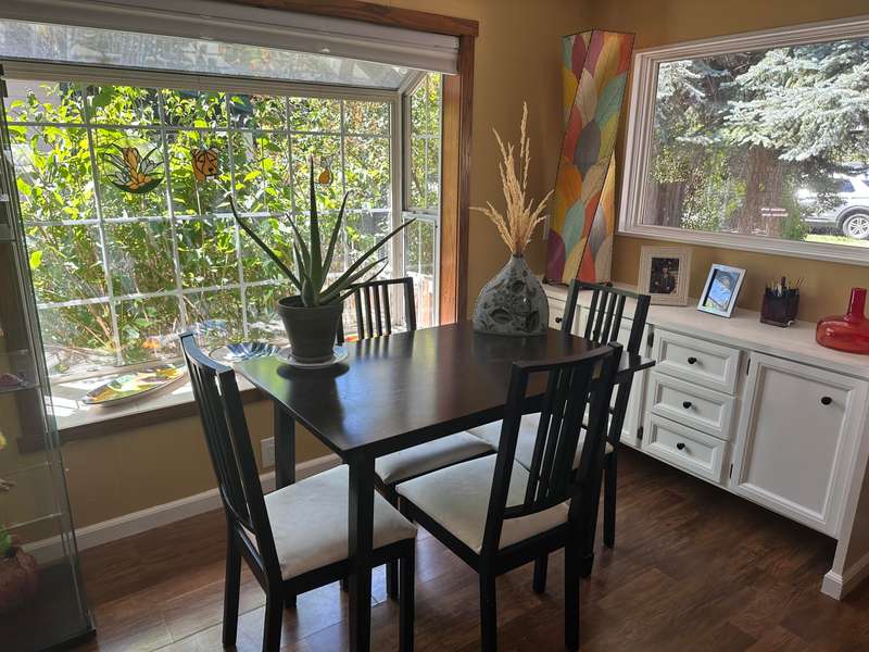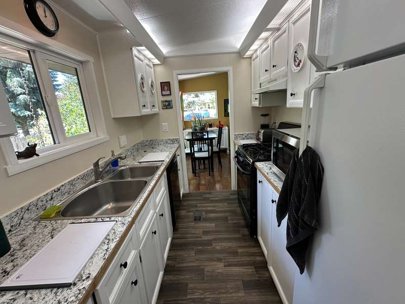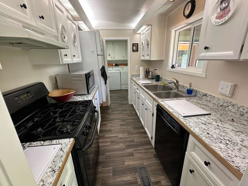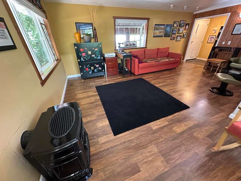 Cash buyer sought for Charming manufactured home located in Bellevue's quiet north end. Air conditioning,3 heat sources: natural gas powered forced air, heat pumps and gas stove. This home is built for year round living. Two outbuildings, including a fully equipped work shed and electric sauna. Fruit trees and future gardens.