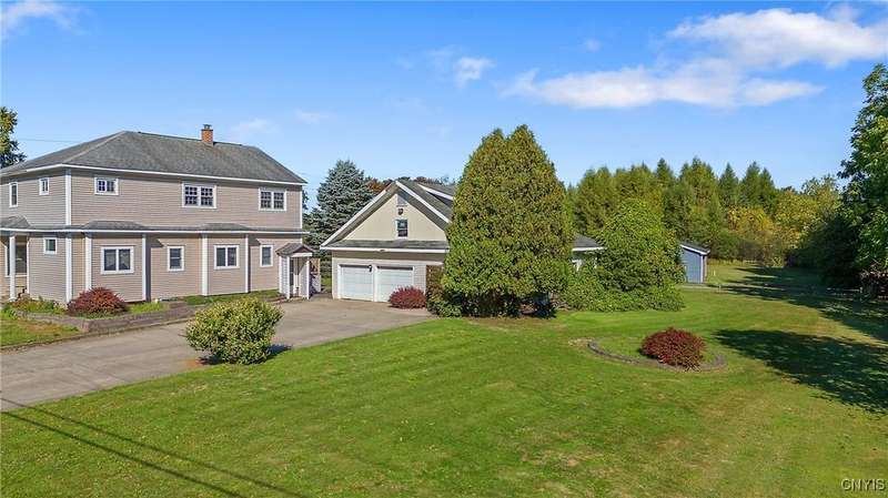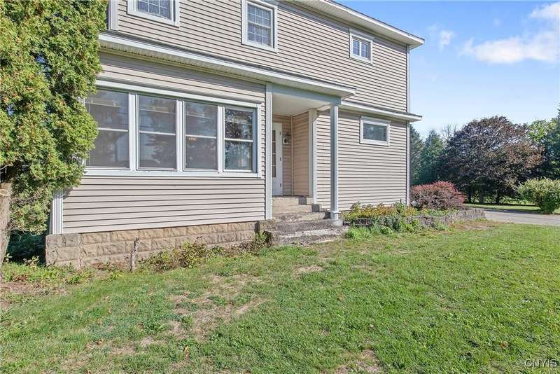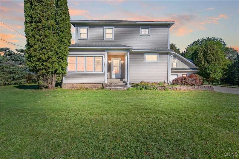 STURDY, STRONG AND LOVED THIS SPACIOUS COLONIAL SITS ON ALMOST AN ACRE AND OFFERS ALL THE SPACE ANYONE WOULD EVER NEED AND STILL HOLDS SOME CHARM AND CHARACTER OF DAYS GONE BY.....UPDATES HAVE BEEN ADDED OVER THE YEARS. BEAUTIFUL HARDWOODS THROUGHOUT MOST OF THE HOME*SPACIOUS LIVINGROOM WITH FIREPLACE*FRENCH DOORS FROM THE LRM LEAD TO THE SUNROOM*FORMAL DININGROOM*DEN W/BRICK WALL FRPLC WITH ACCESS TO THE PRIVATE DECK*KITCHEN OFFERS GREAT STORAGE + ALL APPLIANCES & A PANTRY*1ST FLOOR BEDROOM WAS CONVERTED TO A LAUNDRY (WASHER/DRYER STAY)***EXQUISITE OAK STAIR CASE TAKES YOU TO THE SECOND FLOOR WHERE YOU WILL FIND 4 GOOD SIZE BEDROOMS PLUS AN OFFICE AND A SPACIOUS SPA BATH COMPLETE WITH A JETTED TUB, RECESSED LIGHTING, BIG VANITY AND TILE FLOORING**HARDWOODS AND OAK TRIM SHOWCASE THESE ROOMS*EFFICIENT IN FLOOR HOT WATER MULTI ZONE HEATING THROUGHOUT THE HOME. MANY WINDOWS HAVE BEEN REPLACED.....INSULATION WAS ADDED....ABUNDANT GARAGE SPACE....3 BAYS PLUS A WORKSHOP**ADDIIONAL STORAGE AND A 2ND FLOOR LOFT AREA THAT HAS SO MANY USES THINK "STUDIO", GARAGE IS PLUMBED FOR A BATH ALSO. THERE IS A 200 AMP UNDERGROUND ELECTRIC SERVICE THAT SERVICES THE HOME AND GARAGES....THERE IS ALSO A SPRINKLER SYSTEM ON PART OF THE LAWN AND IS TURNED OFF BUT HAS NOT BEEN USED IN A FEW YEARS. L-O-W TAXES AND LOW UTILITIES (AVERAGE IS $200.00 A MONTH) GATHER YOUR DECORATING IDEAS AND LET THE FUN BEGIN IN MAKING THIS GEM YOUR NEW HOME! GREAT COUNTRY LOCATION MINUTES TO AUBURN AND 35 MINUTES TO SYRACUSE. THIS HOME IS IN GOOD CONDITION.