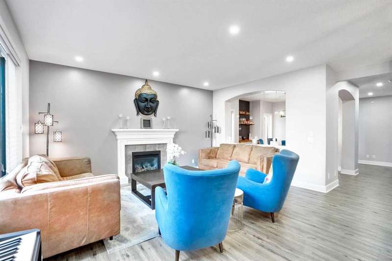 A rare opportunity in sought-after Royal Oak! This majestic estate home offers over 3680 sq ft of total developed luxury living space, situated on a quiet manor street with durable stucco siding. Enjoy 9 ft ceilings on both the main floor and the developed basement. Enjoy the oversized garage, easily accommodating two full-size trucks. RECENT & PREMIUM UPGRADES (2020-2023): True move-in ready luxury with updated main flooring (main floor), paint, updated lighting fixtures & pot lights (2023), new stainless steel Range Hood (2022) & Refrigerator (2023), and a 75 Gallon Water Tank (2020). The home is efficiently serviced by 2 furnaces. ABOVE GRADE: The main floor features an elegant, open-concept layout updated flooring, a gas fireplace, and a private office. The gourmet kitchen leads to the backyard oasis. The upper floor boasts 4 bedrooms, including a spectacular Primary Suite with a spa-like ensuite. The enormous Bonus Room offers a 2nd fireplace and sweeping views of the Downtown Skyline and Rocky Mountains—an exceptional space! DEVELOPED BASEMENT: The finished lower level is perfect for entertaining, featuring a large rec room, a bedroom, gym/flex space, and a 4 pc bath. OUTDOOR OASIS: The fully landscaped backyard is a showstopper—a private sanctuary with multiple sitting areas, large decks, and a fire pit area. Everything is nearby, including the highly-rated Renert School. Book your viewing today!