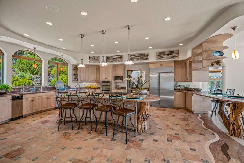 Centrally located between San Francisco and Portland, just minutes from I-5, 700 awe-inspiring acres of oak savannas and rolling meadows gently rise, until your view of the Siskiyou mountains feels so close, you might reach out and touch it. Sitting on a high bench, a spectacular 8,880 sq. ft home exalts the grandeur of nature that surrounds it. With its graceful, curvaceous design, myriad of windows, and unique features like rounded corners and sculptural appointments in copper, glass, stone, granite, local and exotic wood, this breathtaking home is beyond custom; it is a work of art. Every direction offers an unparalleled view. This astonishing property enjoys a pool, an outdoor entertainment space, an off-grid cabin, and features a 3000 sq. ft. basement level ready to be transformed by your imagination. Offering magnificent sanctuary and adventure, as well as convenience, the surrounding region of Southern Oregon is known for wine and phenomenal outdoor recreation opportunities.