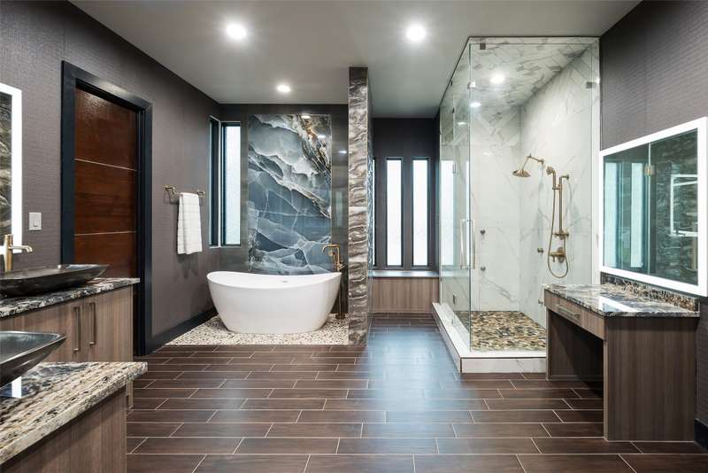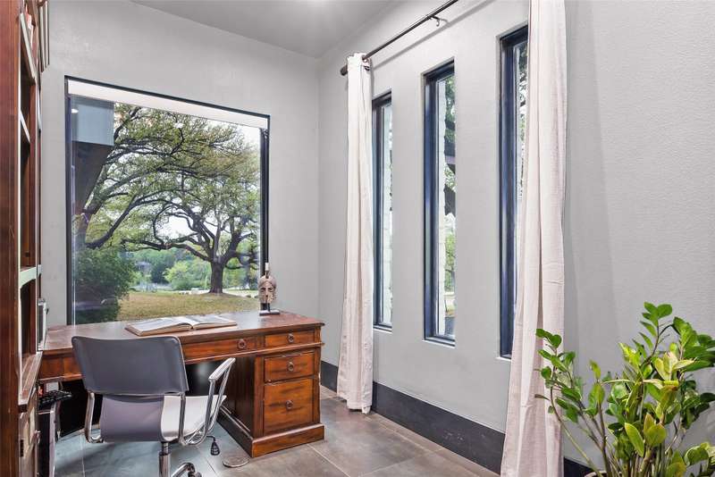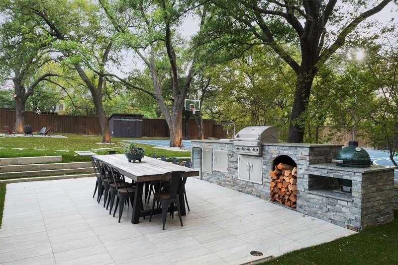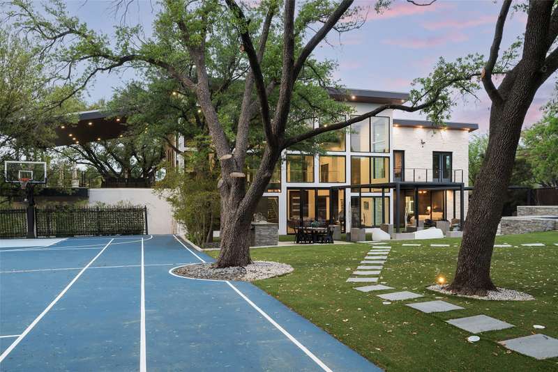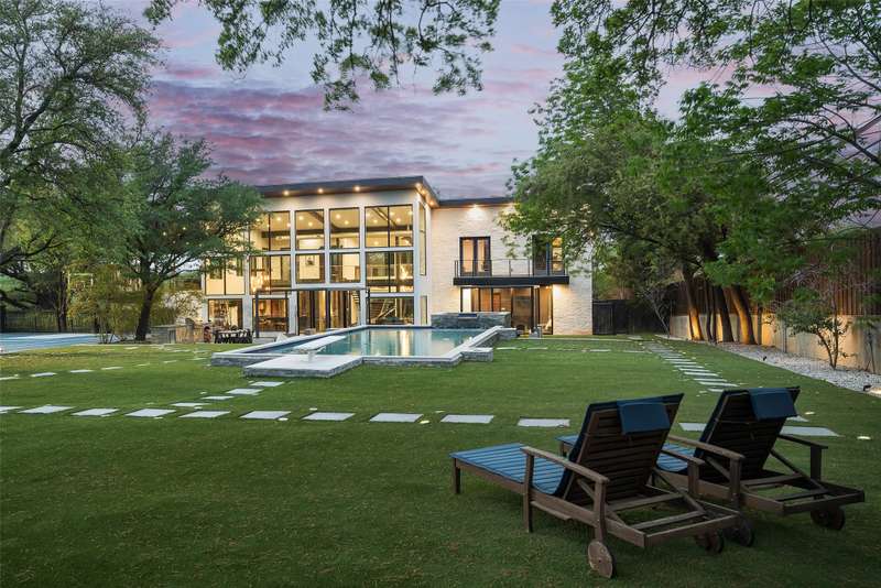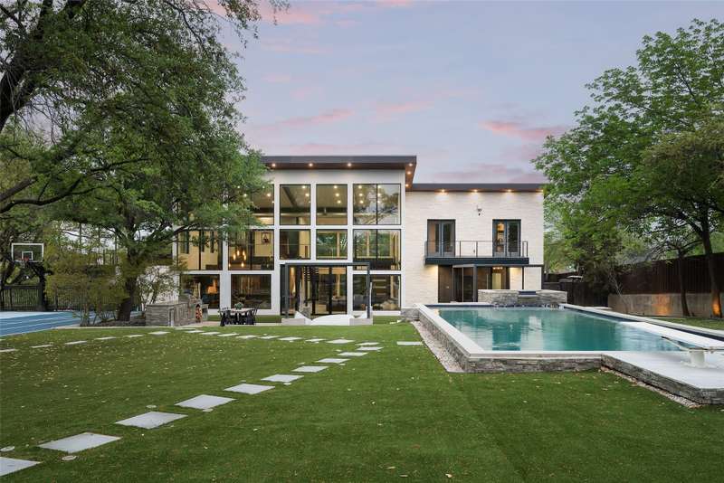 Modern one-of-a-kind design meets luxury living in highly coveted Hillcrest Estates. This sleek custom home transcends the ordinary with every detail curated for form, function and entertaining. An emphasis on architectural design with clean lines, expansive glass and a mix of premium materials. Open concept with floor to ceiling windows for abundant natural light and encompassing views of the gorgeous treed landscape and grounds. Impressive kitchen with large eat-around center island, glass enclosed showcase wine storage, double Wolf gas range, built-in Subzero. The spacious great room with fireplace and floor-to-ceiling glass is open to the kitchen, dining area, and outdoor entertaining area. Sliding glass doors from the great room and primary suite open onto the .94 acre turfed yard with covered entertaining area, pool, tennis-basketball court, outdoor cooking center, and firepit. The generously sized primary bedroom with fireplace and sitting area has direct access to the tranquil pool and heated spa. The zen primary bath boasts dual vanities, elegant soaking tub, separate steam shower, and a custom finished walk-in closet. Other features include an office-flex space on the first level, and 4 bedrooms, 3 full baths, plus a game-media room on the second level. The covered second floor terrace offers an approximate 1000 square foot additional outdoor living space complete with putting green and views overlooking the yard and park-like grounds. This very special property presents an unparalleled opportunity in the highly coveted greater Preston Hollow area within easy reach to Dallas' best shopping, dining and private school corridor.