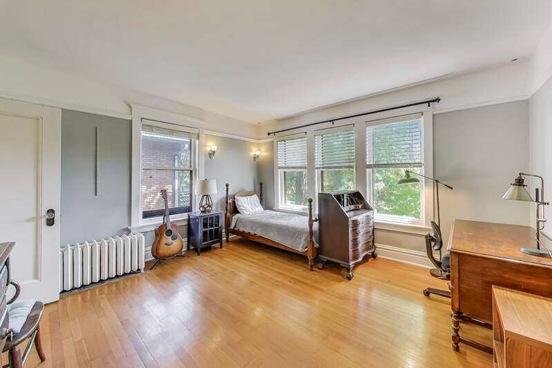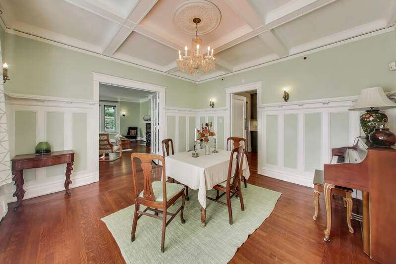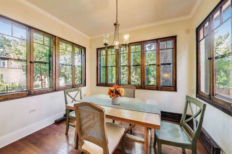 Live on tree-lined Sheridan Road in Waukegan's Near North Historic District in a fantastic classic American Foursquare home! 4 bedrooms, 1.1 bathrooms. Enter through the gracious window-lined vestibule ( 9'2" x 8'3" ) lit by a beautiful chandelier through a glass-paned door to the spacious Living Room with a gas fireplace. Double French glass-paned doors open into the coffered-ceiling Dining Room with its dazzling original chandelier surrounded by a ceiling medallion, paneled walls with vintage plate rails and original wall sconces. The Living Room has yet another glass-paned door that leads to the tranquil cozy Den with a wood-burning fireplace, the Powder Room and the central staircase. The swinging door from the Dining Room leads to the updated all SS kitchen and special Breakfast Room surrounded with three walls of windows overlooking the patio and mature trees in the backyard. Natural light from the large window on the staircase landing floods the staircase to the 2nd floor: four bedrooms, each with its own walk-in closet, and the recently refreshed bathroom. The huge Primary Bedroom faces East and South with a large walk-in closet sporting its own window. Second bedroom / sitting room has original casement windows on three sides. The Third and Fourth bedrooms have windows on two sides. Attic is reached by an interior staircase. Create your own get-away in the basement: Knotty Pine panels line the Family Room which has a gas fireplace, built-in book shelves and windows. A large Recreation Room to design to your own desires with windows. Large bright Laundry Room and a flexible Bonus Room located near plumbing. There is one set of built-in cabinets and drawers on the main level and another set on the 2nd floor. Historical Features: Original doors, four interior doors with glass panes, Oak hardwood floors through 99 per cent of the above ground home, original millwork throughout, glass door knobs, 12" sculptured baseboards, coffered ceiling in Dining Room and original light fixture and wall sconces, many windows with original leaded glass, three fireplaces ( 1 wood-burning and 2 gas ), casement windows, historic Purington Paver patio and bluestone pathway leads to the fenced-in backyard with mature trees. Space Pac was installed before 2007 and has not been operational since 2013. Detached brick 2 car garage. City of Waukegan Inspection is completed. Home to be sold "AS IS".