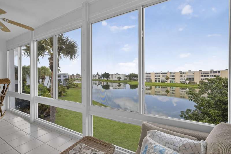 Look no further--your perfect Florida retirement home is here!This beautifully updated 2-bedroom, 2-bath condo boasts stunning lake views and a light-filled open layout. The enclosed lanai provides a peaceful retreat overlooking the water. Inside, you'll find fully renovated bathrooms with designer finishes, and neutral porcelain tile throughout--no carpet! Additional upgrades include impact windows and doors for peace of mind, a new A/C (2021), and water heater (2022). Truly move-in ready.
