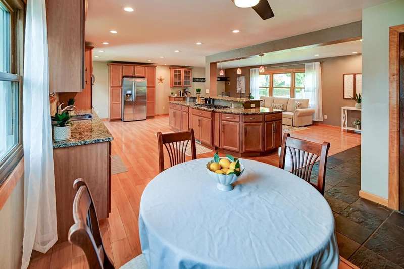 Welcome to this nice East Side Madison home that blends style, comfort, and modern updates! The open-concept layout showcases a bright, spacious living area that flows seamlessly into the beautifully updated kitchen featuring stainless steel appliances, sleek countertops, and ample cabinetry. Upstairs you'll find four generous bedrooms, including a relaxing primary suite. Step outside to your private, fenced-in backyard with a covered deck, perfect for outdoor dining or entertaining. A two-car attached garage adds convenience to this picture-perfect home! Fresh paint, updated flooring, some updated windows, and plush new carpeting make this home truly move-in ready.