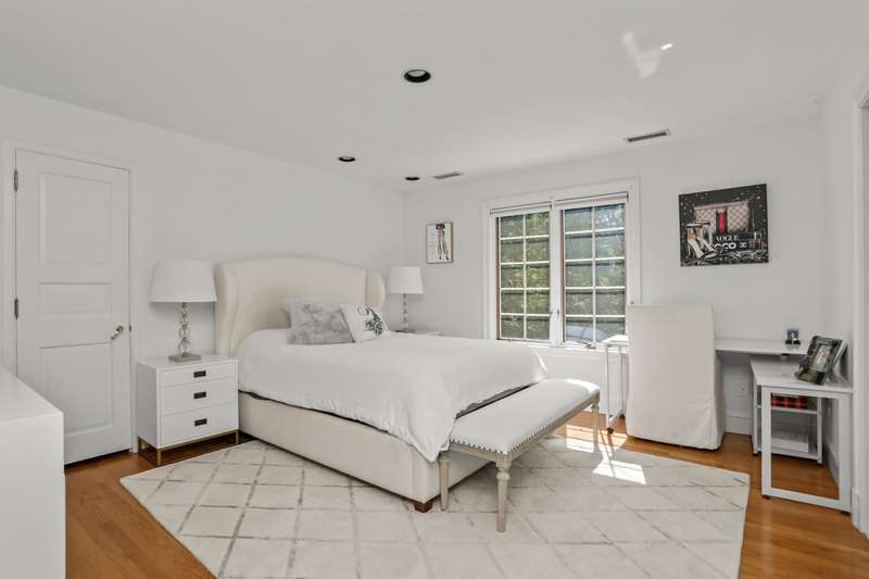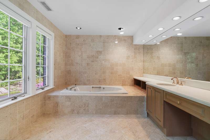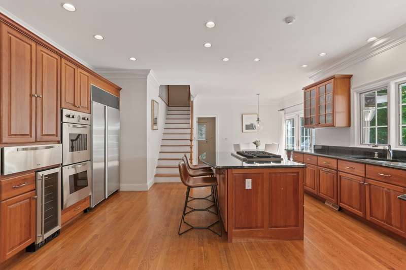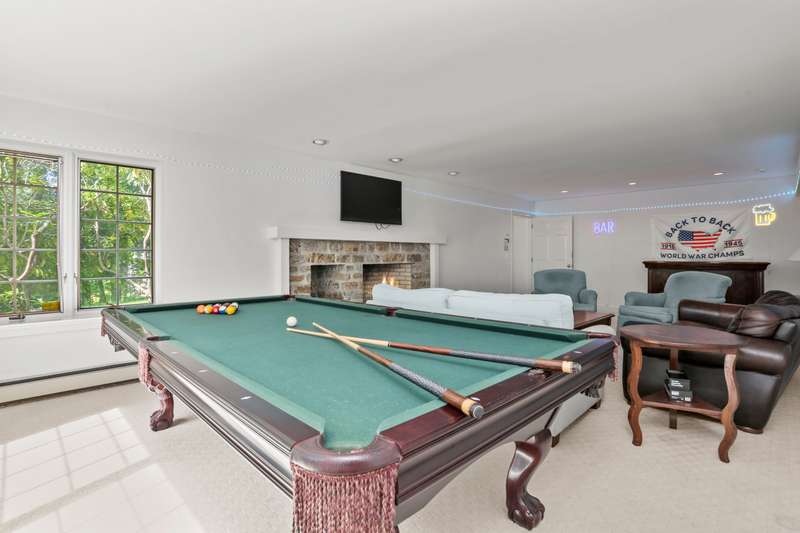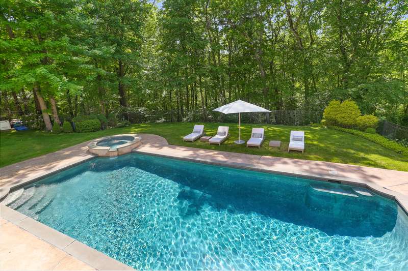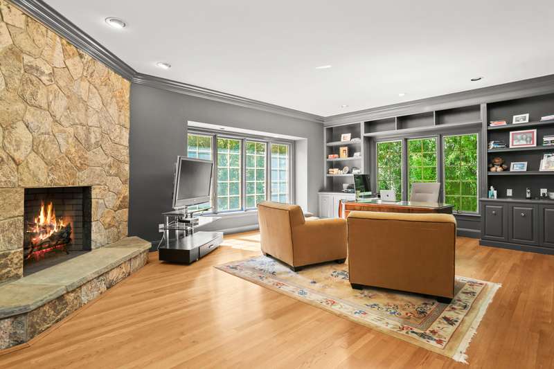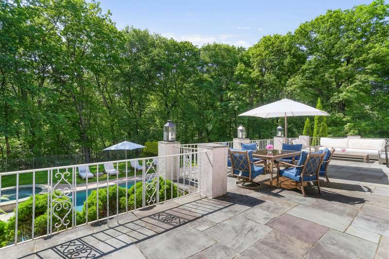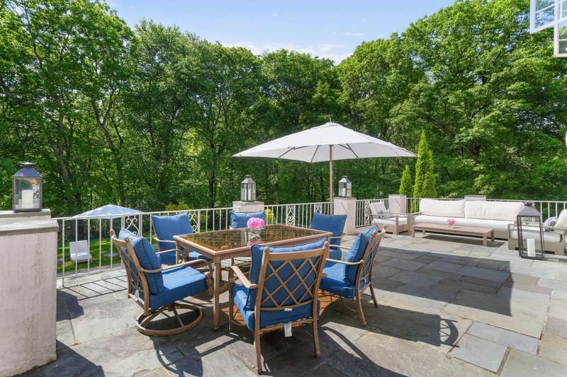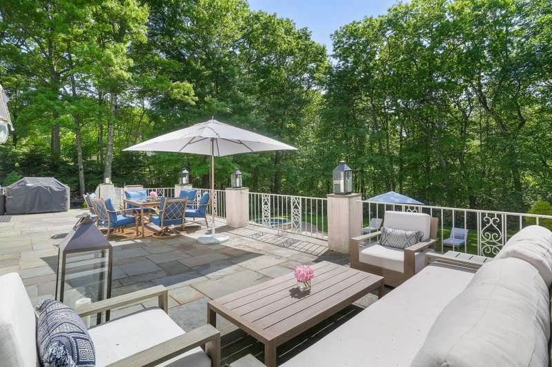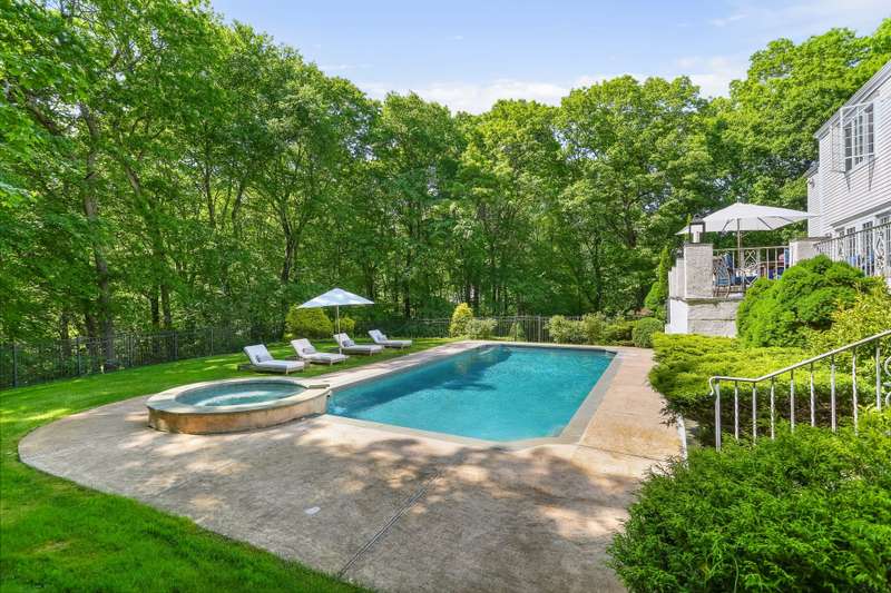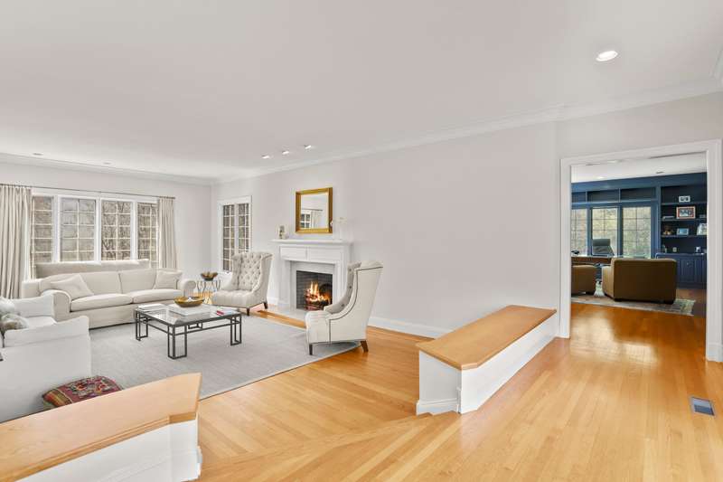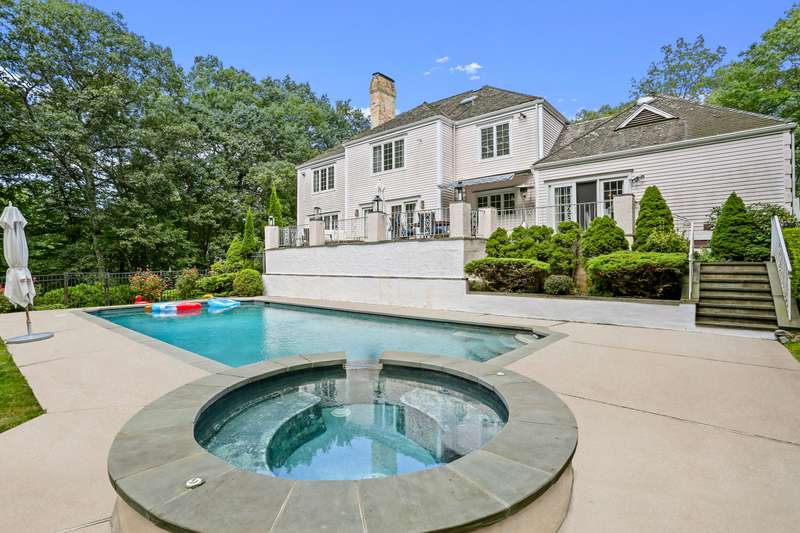Stately Georgian brick on a private cul-de-sac with 2 landscaped acres, stunning pool and spa. Approach via wrought iron gates to a circular driveway. Elegant, beautifully decorated home boasts 5,613 SF (add. 1000 /- sf in finished part of garden level), high ceilings, hardwood and stone floors and 5 fireplaces. Spacious entry foyer leads to gourmet kitchen with Sub Zero, Viking and Bosch appliances, adjacent family room has French doors to expansive terrace. First level has formal dining room, living room, den/library and office. Upstairs primary suite with fireplace, walk-in closet and 2 primary baths, plus 4 additional bedrooms and 3 baths. Walk-out garden level features game/playrooms and bath. This welcoming home, bordered by conservation land, is perfect for relaxing and entertaining. 3 car garage. Close to schools/town.