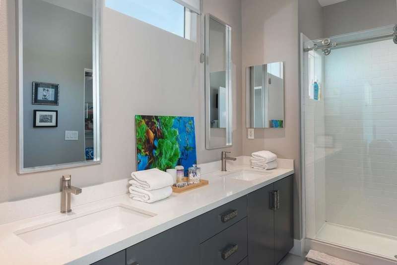 CONSIDERABLE PRICE ADJUSTMENT!! Welcome to Escena. This light and bright pool home is approx 2965 sq ft of luxury living with plenty of entertaining space both inside and out. The front courtyard makes a perfect first impression for this home. It has plenty of entertainment space with room for dining and includes a fire feature. Once inside the home you will see a large dining room which could also be a den or office, and then a few steps forward you will enter the massive great room with fireplace and sliders to the pool and spa. The chef's kitchen is newer with large breakfast bar and walk in pantry. Don't miss the back hall off the kitchen with generous 2 car garage access, powder room and drop zone with even more storage. Privately tucked away off the great room is the huge first floor primary, with windows on 3 sides and pool access. It boosts 2 large walk-in closets, and a large dual vanity bath with shower and tub. Upstairs is a small office with window. In addition, there is a second great room with sliders and balcony overlook the pool. The guest room also has two closets and a large ensuite. This floor is a perfect private retreat. The current owners resurfaced outdoor decking, refreshed the landscaping and refinished the pool and built out the primary closet.