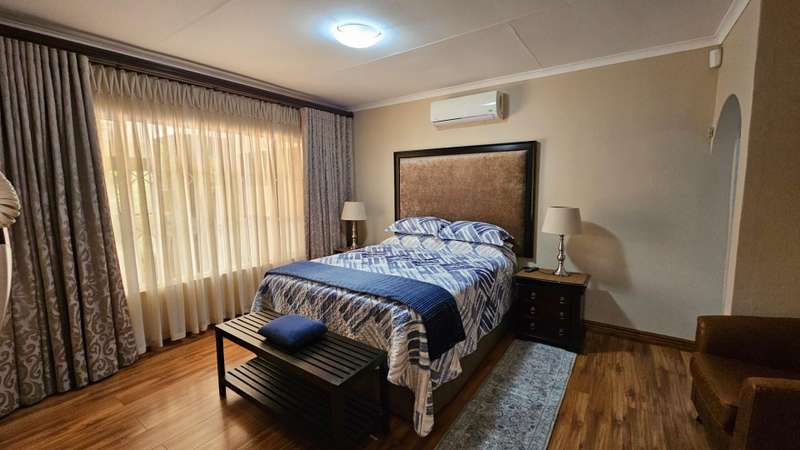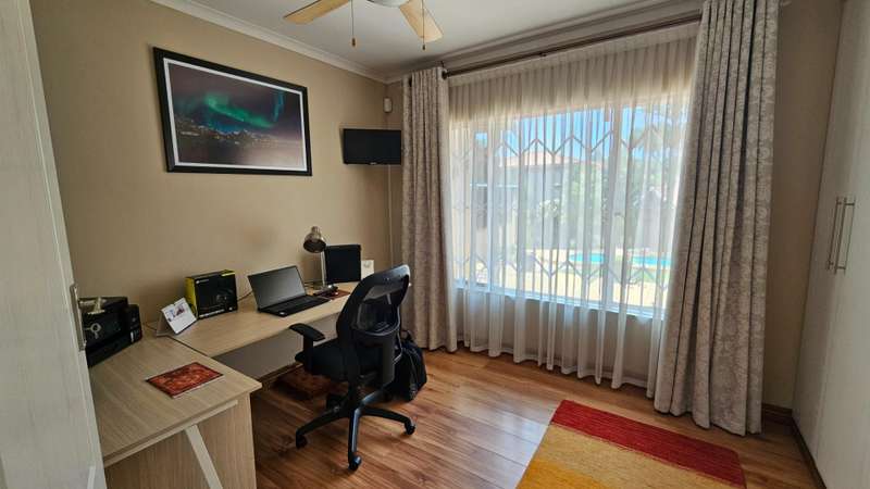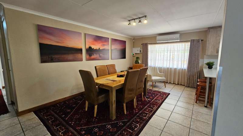 IMMACULATE PROPERTY - NOTHING TO ADD!!! This exclusive property is situated close to all major shopping malls, filling stations, churches, schools and other amenities. Extras to this jewel are the following: 2 x Water tanks (2500 L and 5000 L) 11 KW Generator 12 x Solar Panels 8 KW Inverter 3 x 5.1 KW Batteries 200 L Solar Geyser Back-up Electric Geyser Pet-friendly eyes around the whole property Pet-friendly eyes inside the whole property Ambler storage cupboards in the Extra length- and height garage 3 x Air conditioners (lounge, dining area and main bedroom) There is an outside toilet, shower and basin for domestic use There is an automatic irrigation system DON'T DELAY - CALL ME TODAY TO VIEW THIS NOT TO BE MISSED EXCELLENT INVESTMENT!!!