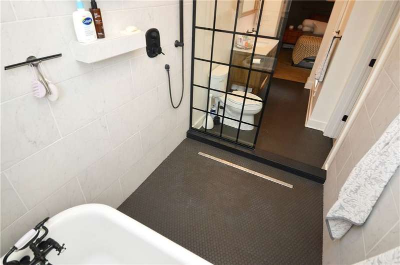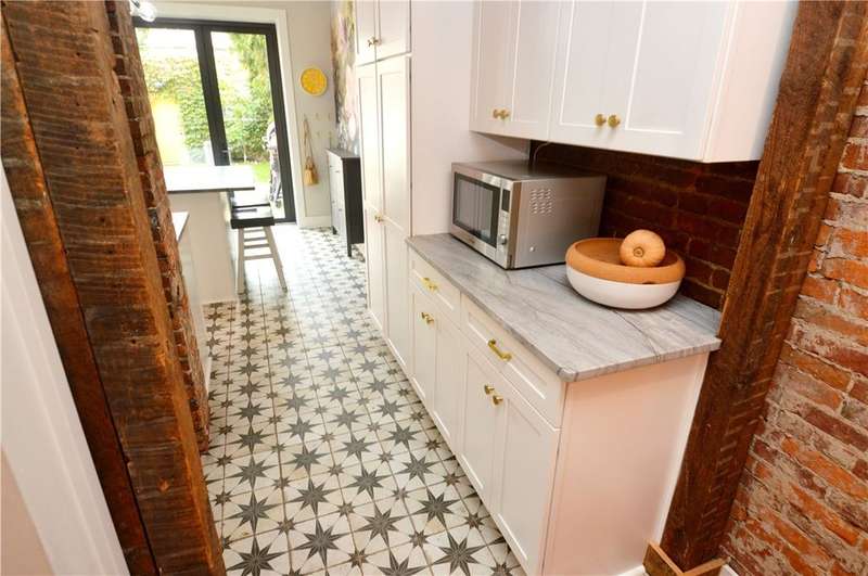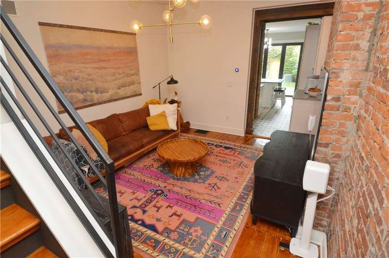 Absolutely STUNNING!! Tastefully done with the perfect mix of modern & original character! Impressive original exposed brick & beams, refinished hardwood flooring. Open floor plan, light & bright w/ main level powder room!! Kitchen w panoramic views & foldable doors provide unobstructed access to the back yard & deck. High-end kitchen cabinetry, Quartzite counters & stainless appliances. Second floor w two ensuite master bedrooms w full baths, & large walkin closets. 2nd floor laundry & linen closet. Finished upper-level can be 3rd bedroom/office/playroom. Convenient oversized detached garage w/ door to back yard!! This one has it all & is a MUST-SEE!!!