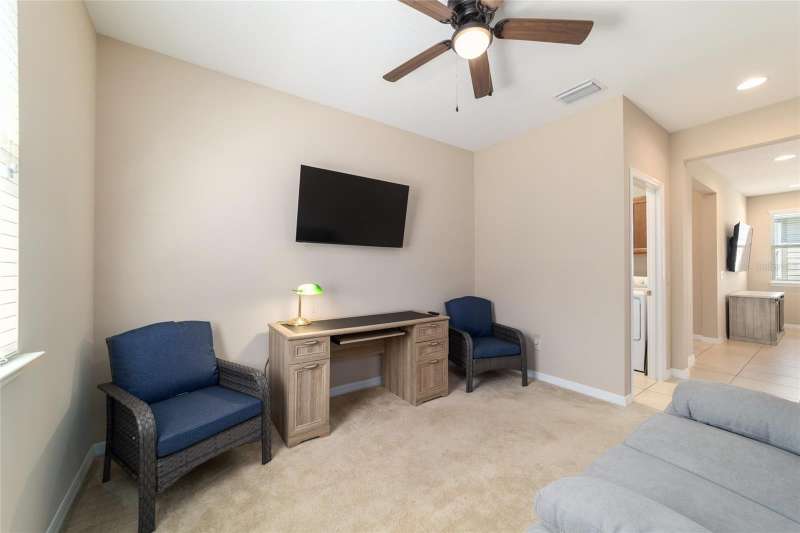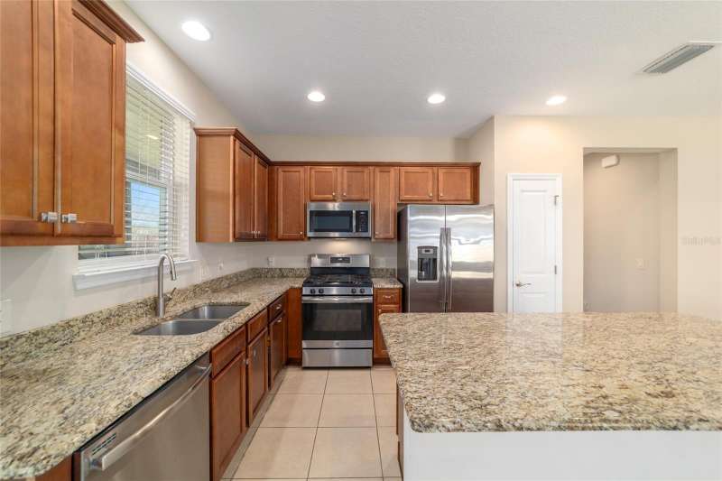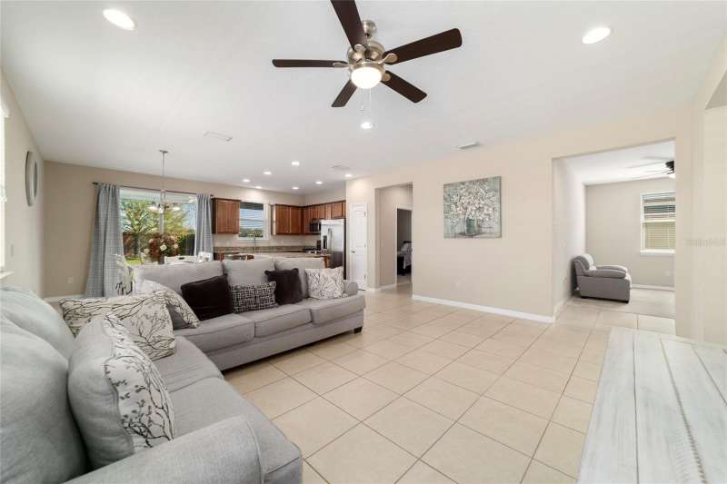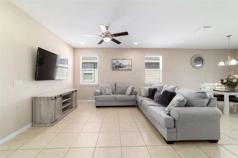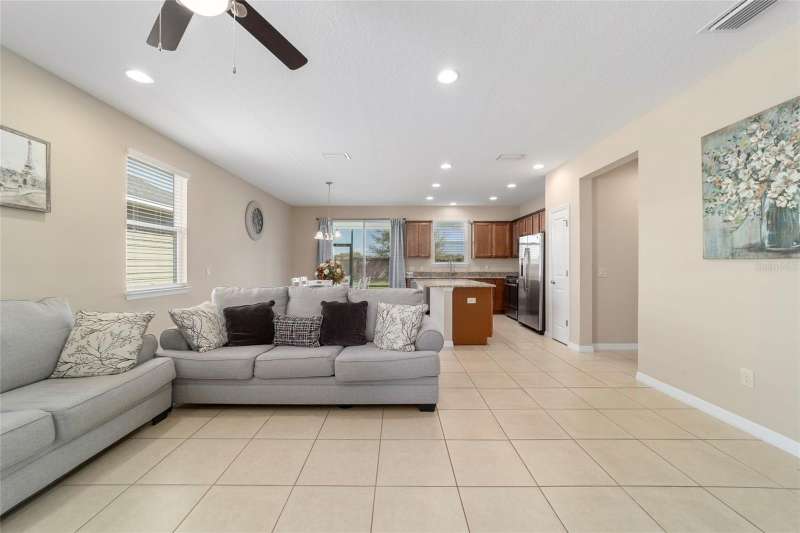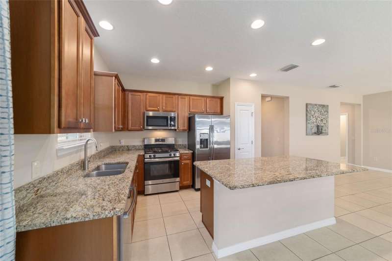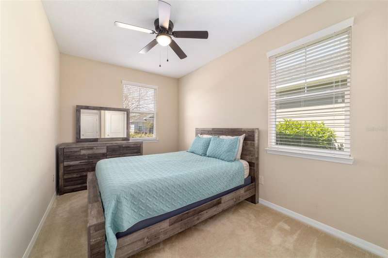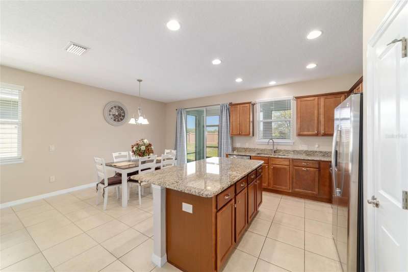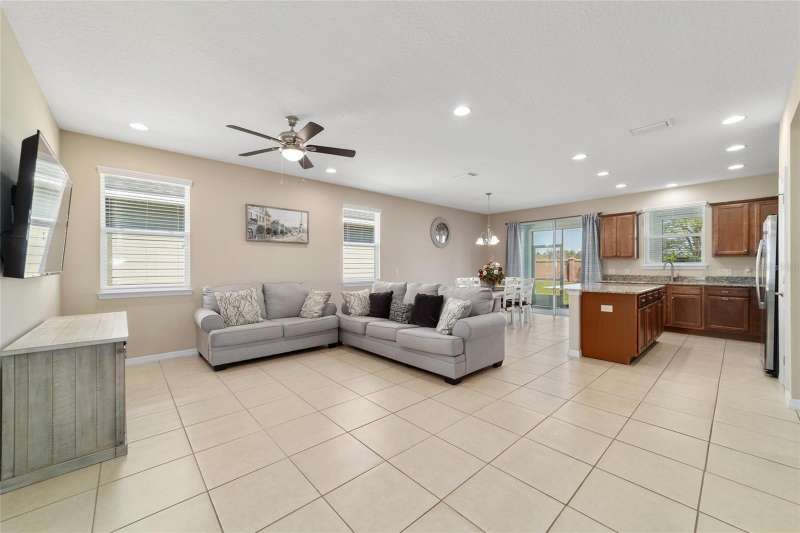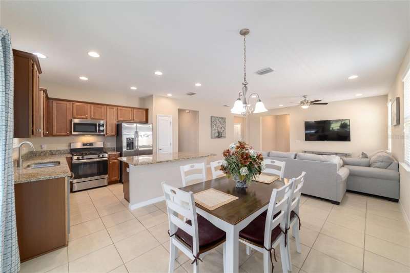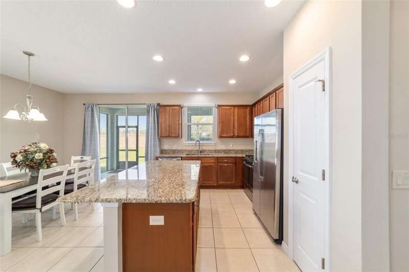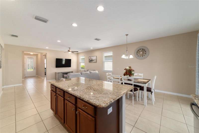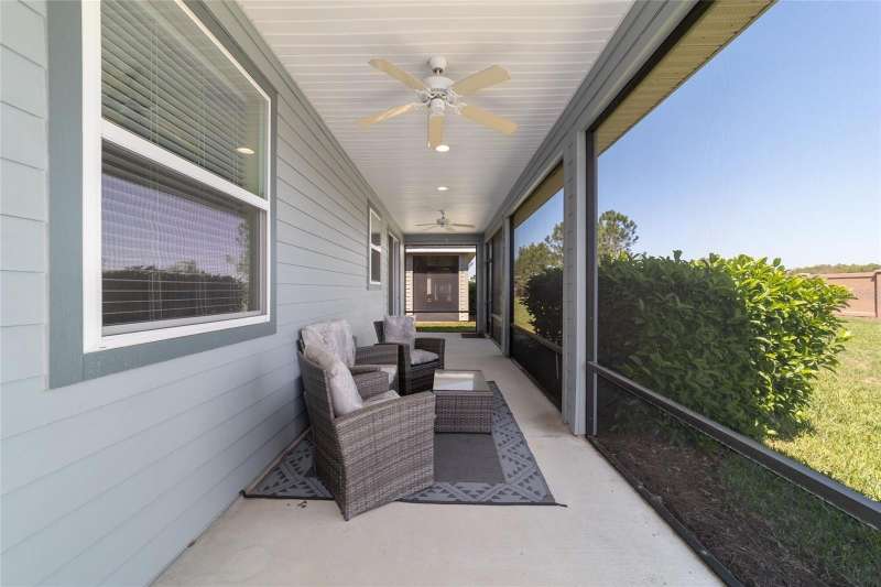 Motivated seller! Looking for a turn-key, move-in ready home in an all-ages area of Ocala Preserve? This beautifully furnished Shea built Rome model comes stocked with dinnerware, linens, and small appliances. Located on a cul-de-sac street, this charming home boasts an open floor plan, two large split-plan bedrooms, and two full baths. The primary bedroom includes a large walk-in closet and en suite bath. Both bathrooms have granite countertops! The laundry room is equipped with a washer and dryer, lots of cabinets, and a utility sink. There is a bonus room off the family room which can serve as a den, office, TV room, craft room, or even a 3rd sleeping area. The contemporary kitchen has granite counters and a large island. Beautiful wood-stained cabinets and stainless steel appliances complete the look. From the eating area adjacent to the kitchen you can look out the glass sliding doors onto the sunny, covered patio and the lovely backyard. HOA fees cover lawn and landscape maintenance, irrigation system, internet, gym, group fitness and water aerobics, bocce, horseshoes, tennis and pickle ball courts, fishing dock, kayaks, canoes, paddle boats, and 20 miles of walking and biking trails. As an Ocala Preserve resident, you receive discounts at the in-house restaurant (Salted Brick), the golf course, and the Spa. Whatever your interests are, there is probably a members club for you - book club, mahjongg, sewing, art, card playing, glee club, Veterans, and so many more! This phase of homes has no CDD!