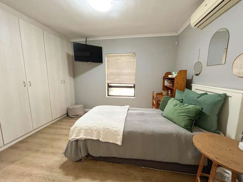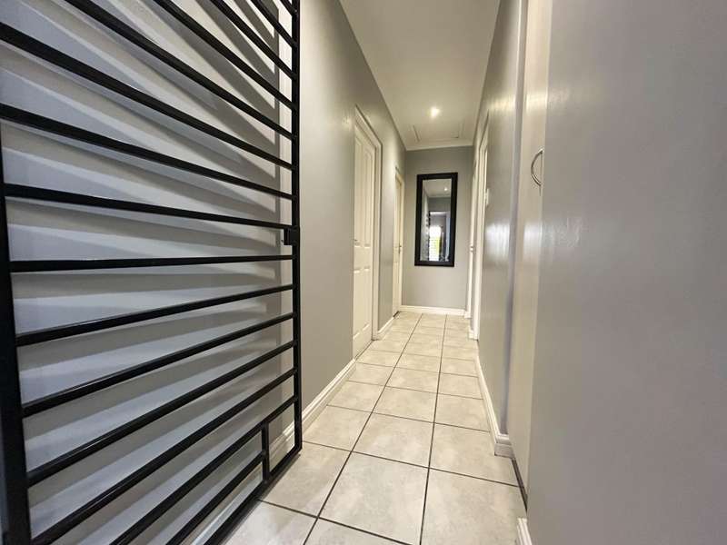 This well-maintained home in Viking Village offers the perfect balance of comfort, convenience, and security. Featuring three bedrooms and two bathrooms, it is ideal for family living. The main bedroom boasts vinyl flooring, built-in cupboards, air-conditioning, and an en-suite bathroom. The second bedroom also offers vinyl flooring, built-in cupboards, and air-conditioning, while the third bedroom includes built-in cupboards and tiled flooring. A full family bathroom serves the household. The modern open-plan kitchen is designed for both style and functionality, fitted with a gas hob, electric stove, and a waterpoint for a dishwasher. The living areas flow seamlessly to the outdoor space, where you can enjoy a sparkling pool ?Çô perfect for summer gatherings. Additional features include a double garage with an electric door, one open parking bay inside the yard, prepaid electricity, a borehole, and electric fencing for extra peace of mind. An alarm system is also in place to ensure your family?ÇÖs safety. This property offers everything you need for modern family living in a sought-after area. Call me today