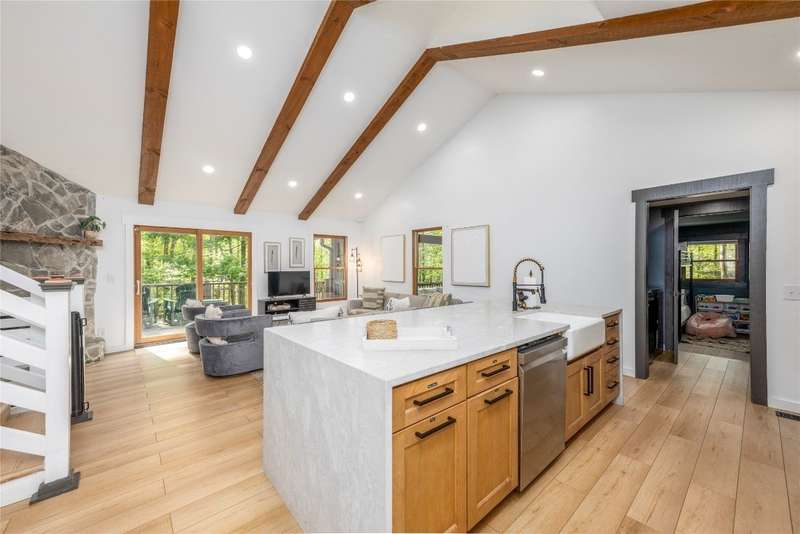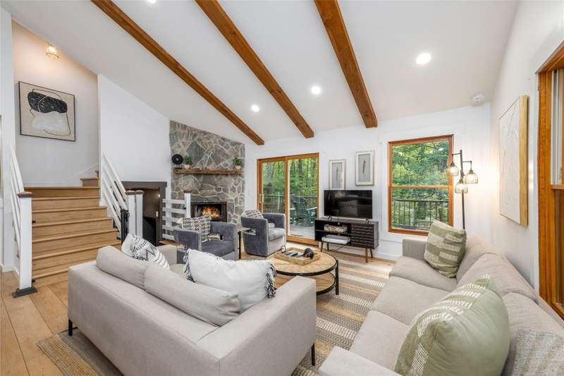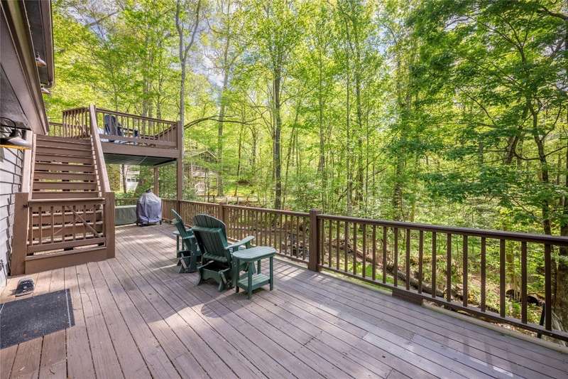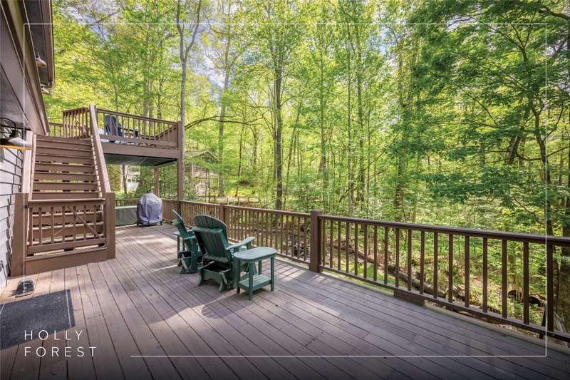 Nestled in the sought-after Holly Forest community, this completely updated mountain-modern sanctuary is fully furnished and ready to enjoy! Designed for leisure and entertaining, the home features an open floor plan with high ceilings that enhance the spaciousness of the kitchen and living areas. The large kitchen, featuring a charming pantry, flows effortlessly into the inviting living room, where a cozy fireplace invites relaxation. The main level also boasts two welcoming guest rooms that share a full bathroom, a bonus room with its own ensuite, and a convenient laundry area. Step outside to enjoy a variety of outdoor living spaces, including a delightful front porch with a hammock, a covered screened-in back porch with heaters and a TV, and a sunny open deck perfect for soaking up the mountain air. Upstairs, the private primary suite offers a serene retreat with its own ensuite bathroom and a private deck perfect for savoring morning coffee or stargazing under the night sky. On the lower level, a second bonus room provides additional flexible space. This property is filled with recent upgrades for peace of mind, including a new roof in 2023 and a new HVAC system and water heater in 2022. The home also features a convenient two-car carport with an electric charging station. Currently a successful vacation rental, this property offers both investment potential and a dreamy mountain escape. Residents of Holly Forest enjoy access to Sapphire Valley Master Association's resort-style amenities, from heated pools, hot tubs, and fitness facilities to tennis courts, pickleball courts, and a golf course. Outdoor enthusiasts will love Fairfield Lake for swimming, boating, and breathtaking scenery, as well as winter skiing and tubing at the Sapphire Valley Ski Resort. Situated just minutes from Cashiers with its delightful shops and restaurants, this home pairs contemporary comfort with an unbeatable mountain lifestyle.
